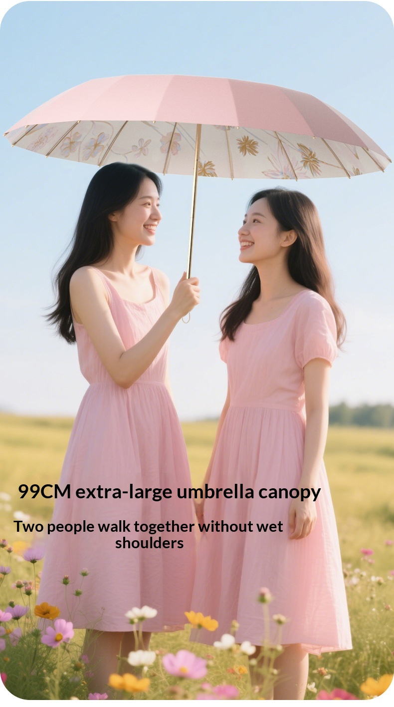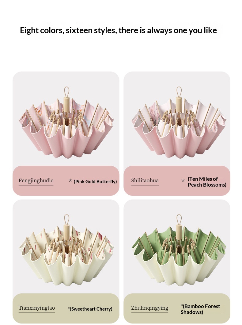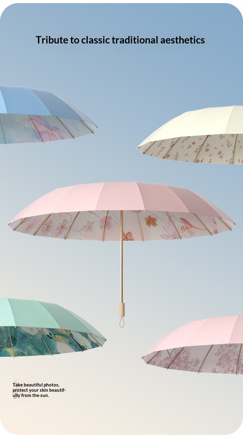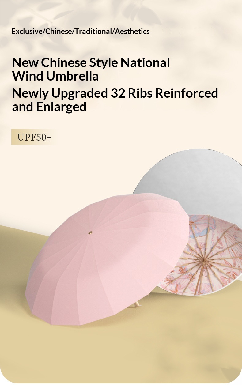 32-Rib New Chinese-Style Vintage Folding Umbrella For Sun And Rain