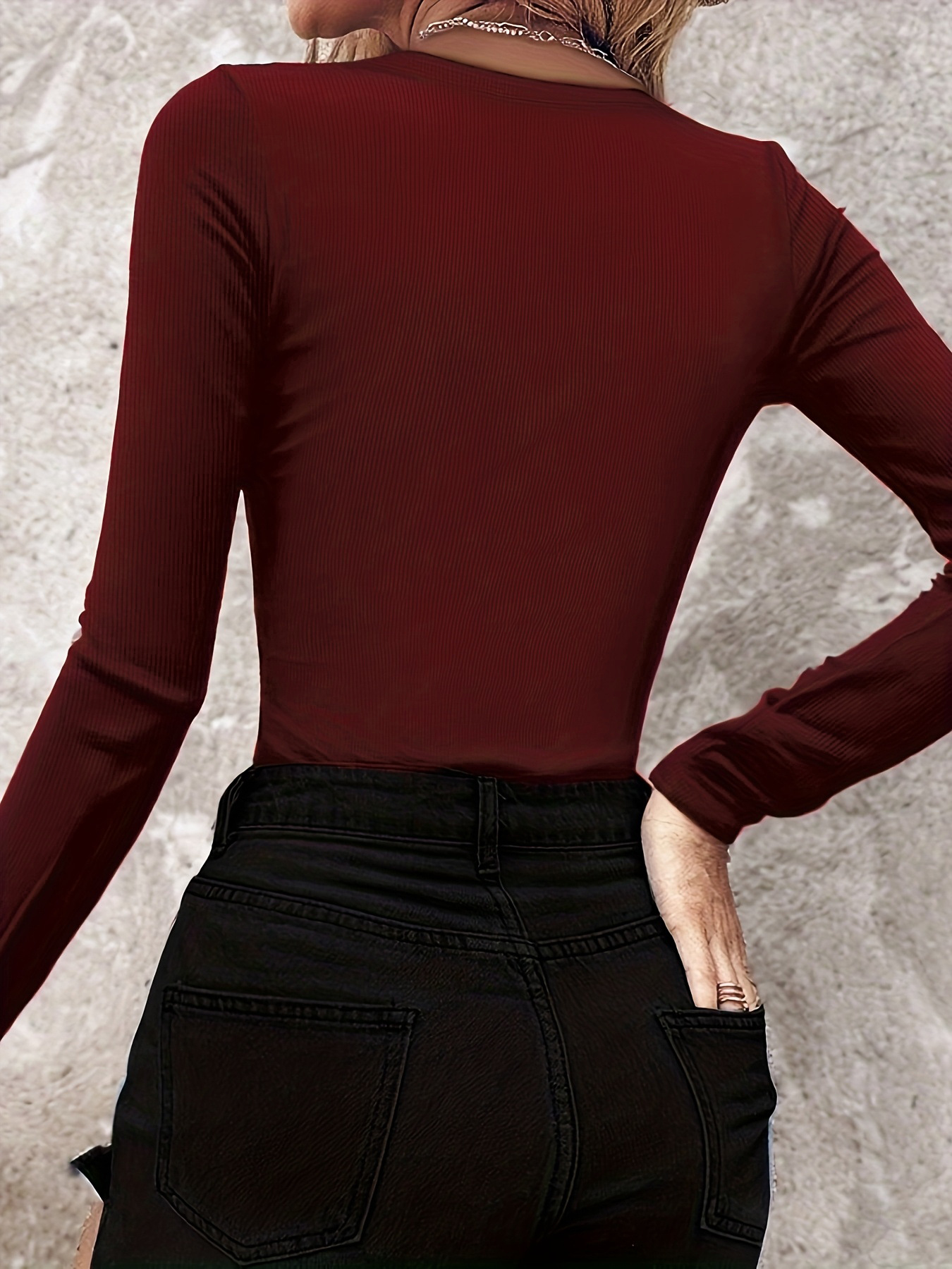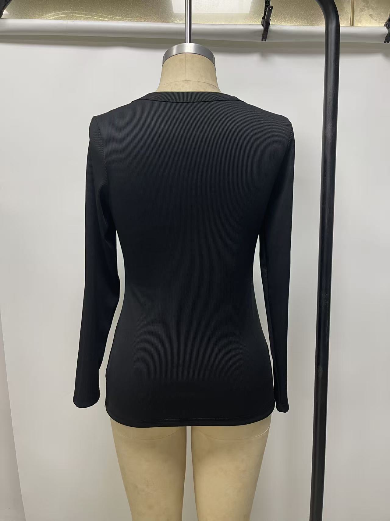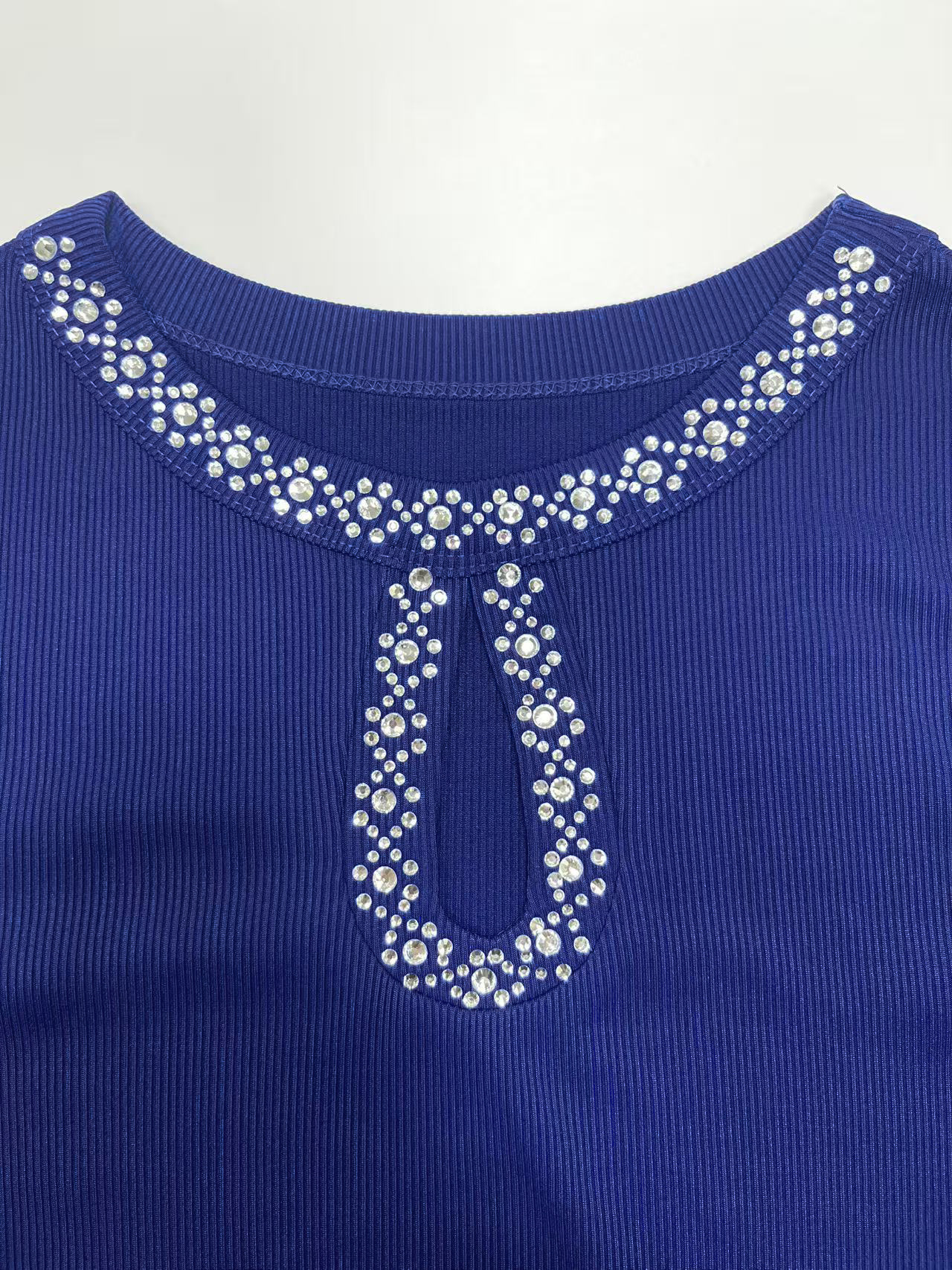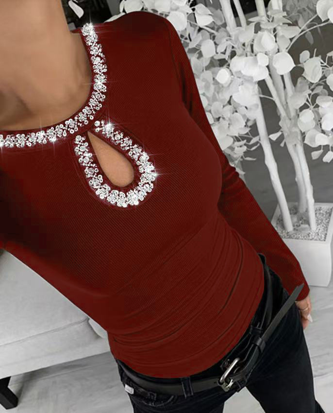 0 Review for 3D Rhinestone Embellished Crewneck Ribbed Long-sleeve Top