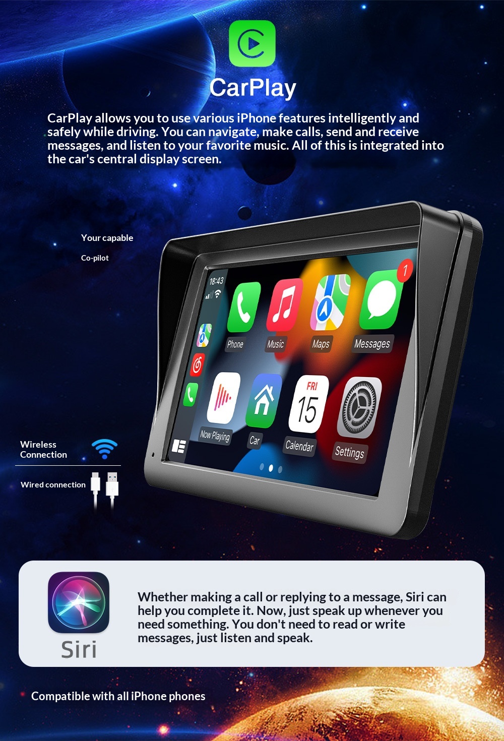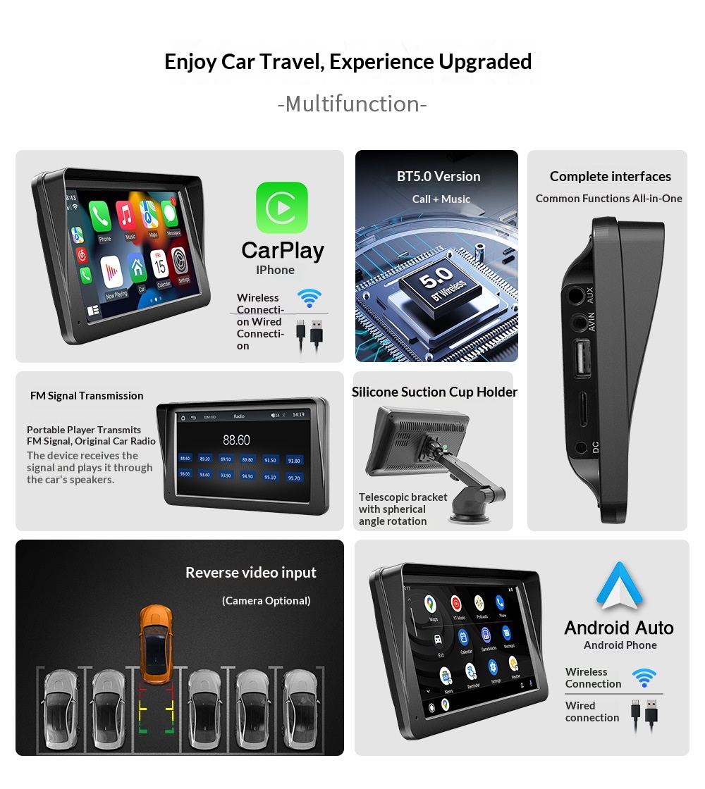 7-inch CarPlay Portable Screen Car MP5 Player With Bluetooth