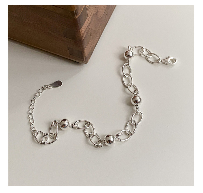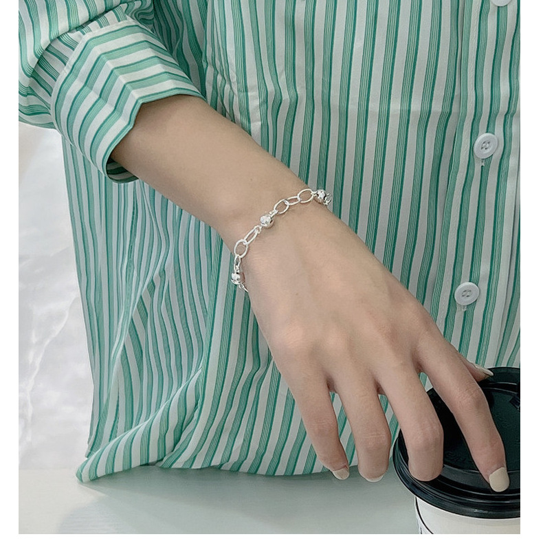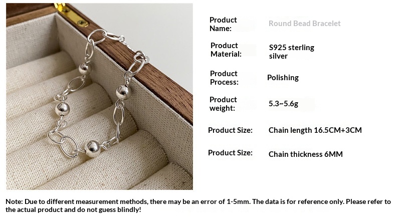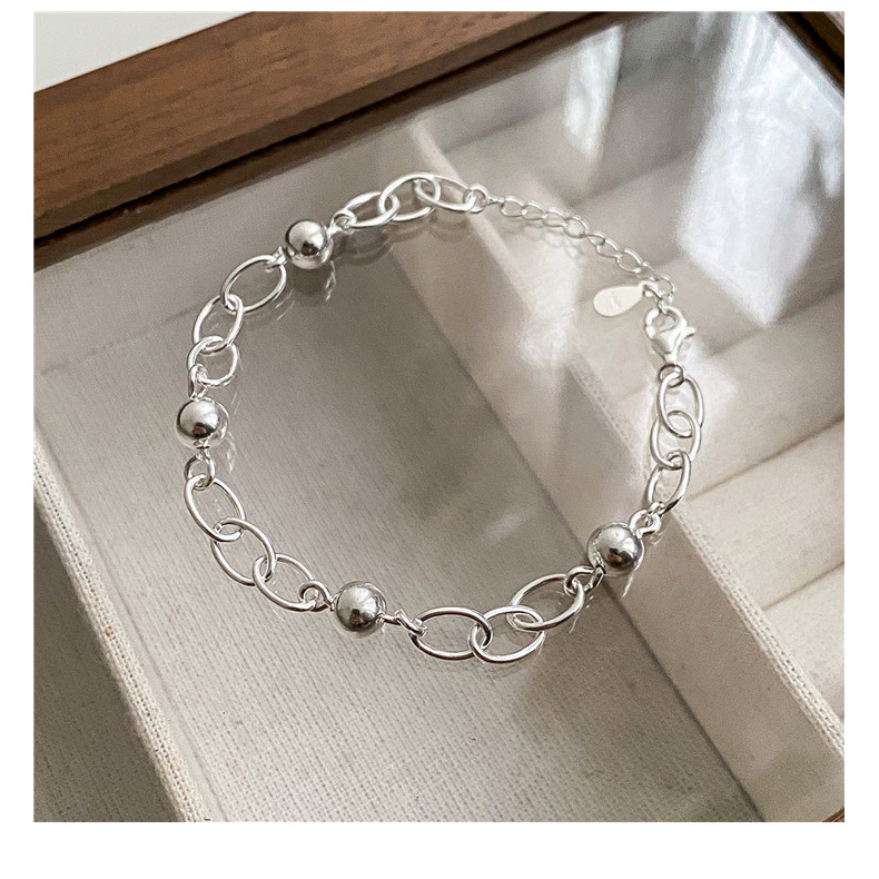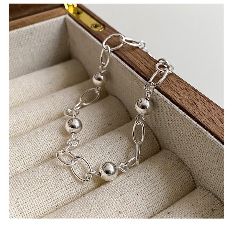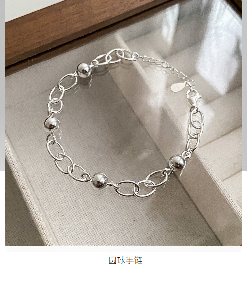 925 Sterling Silver Round Bead Silver Handmade Bracelet Vintage Jewelry