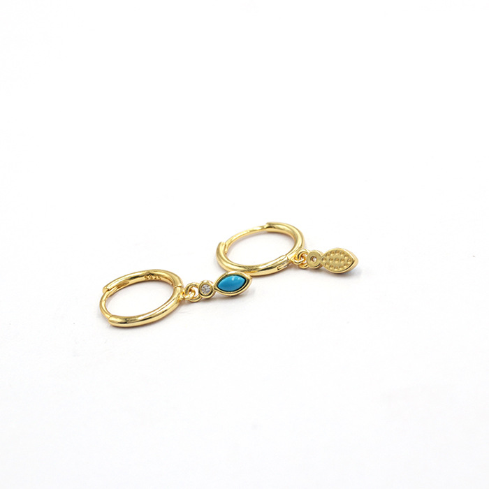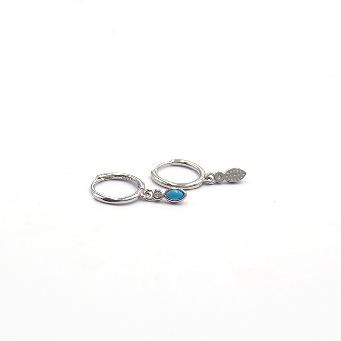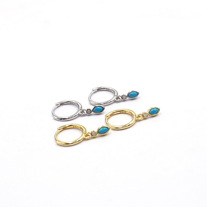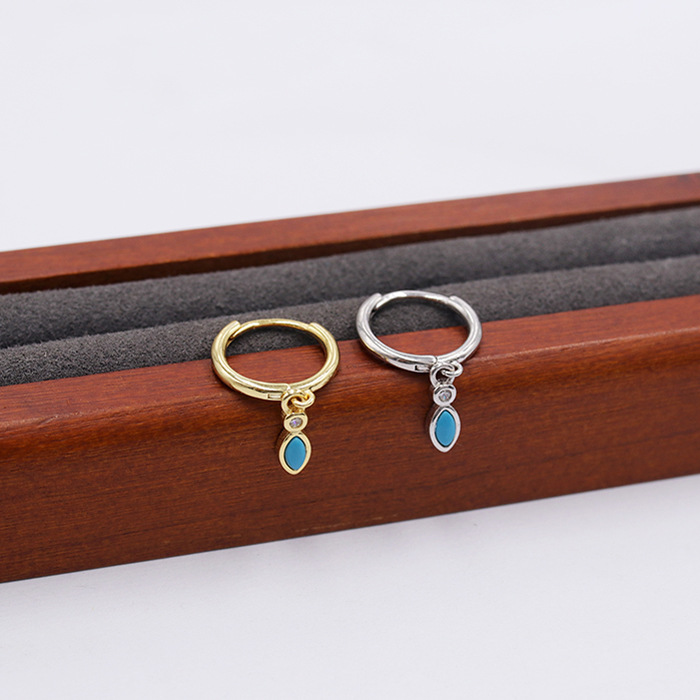0 Review for 925 Sterling Silver Round Wire Turquoise Waterdrop Hoop Earrings