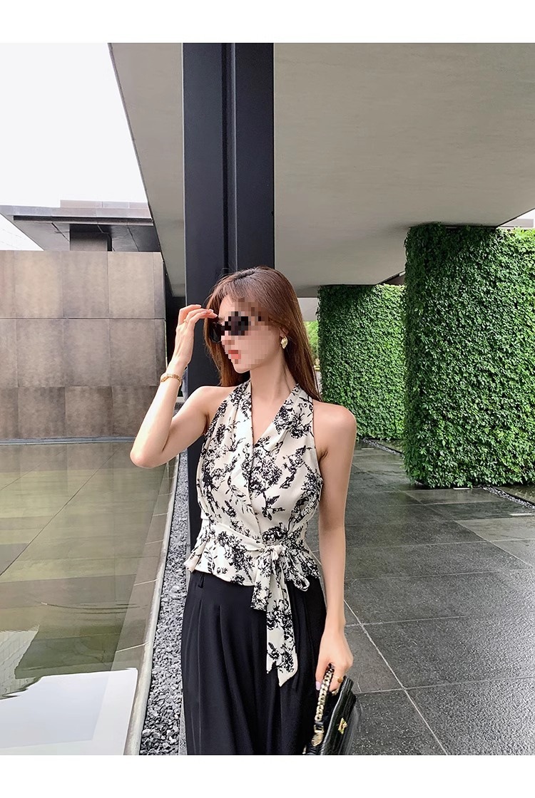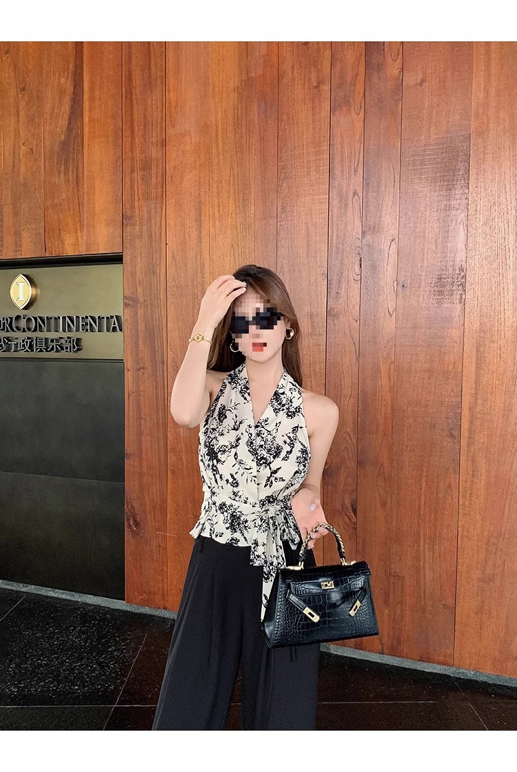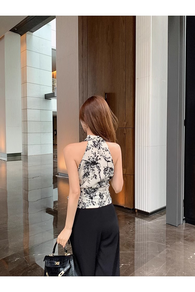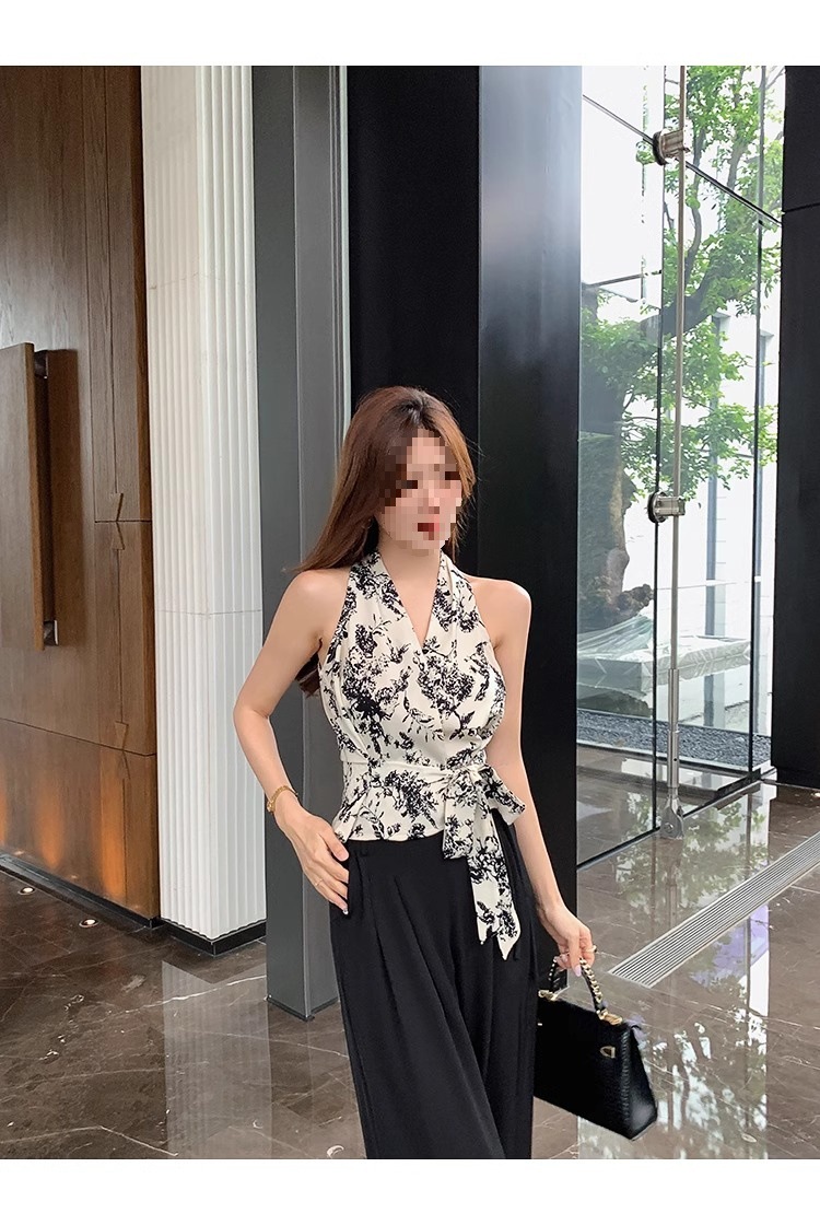 A Sleeveless Halter-neck Floral Vesta Chic And Stylish Top Brimming With French Flair