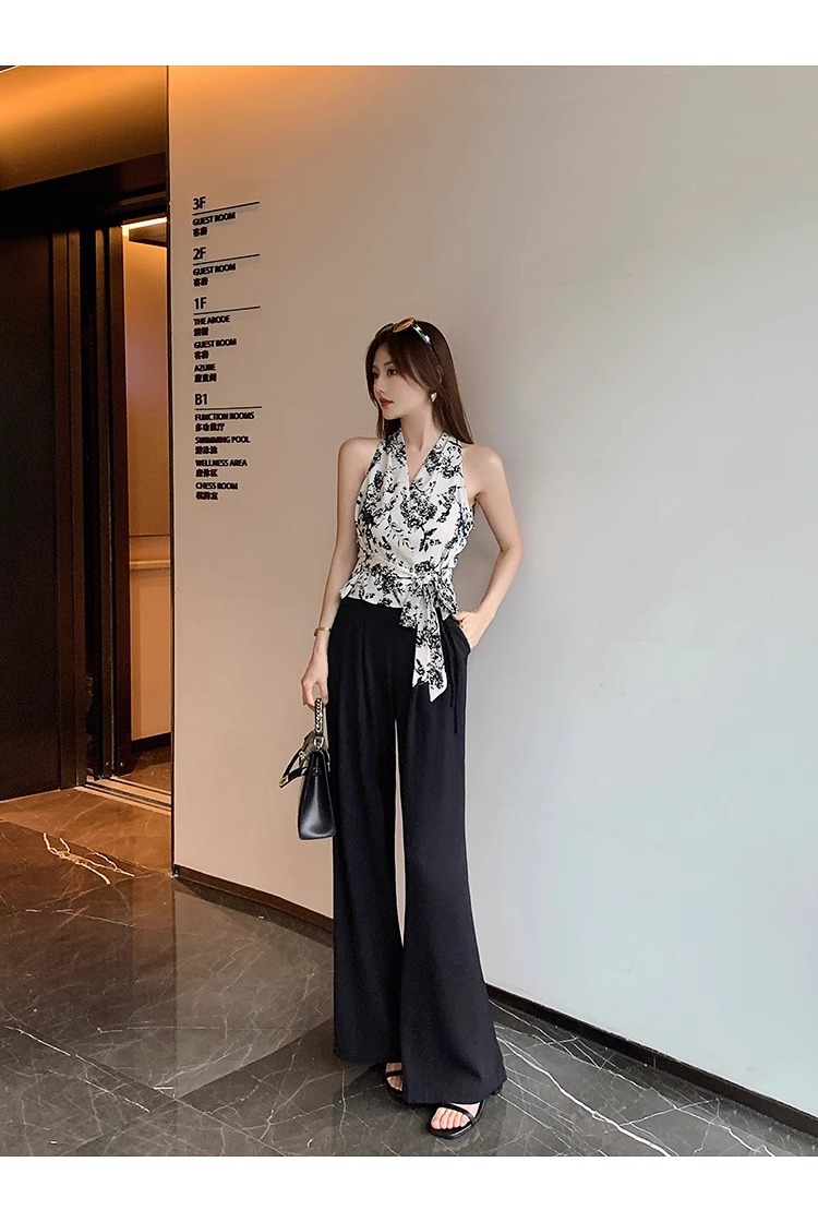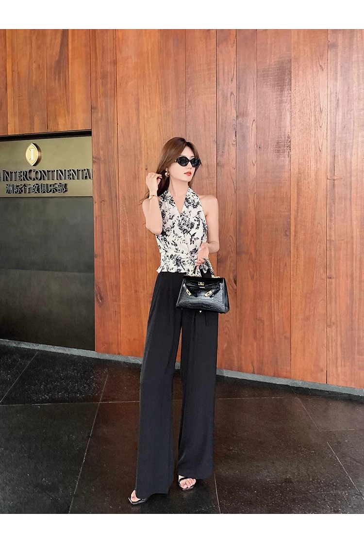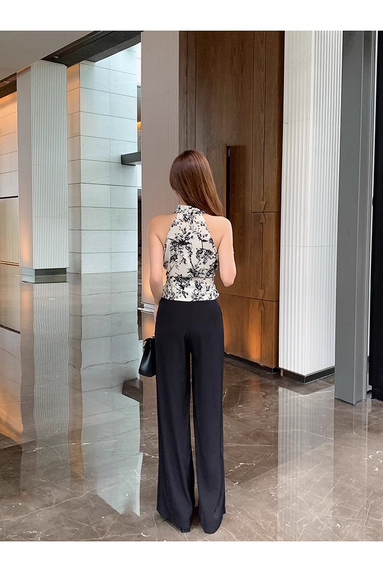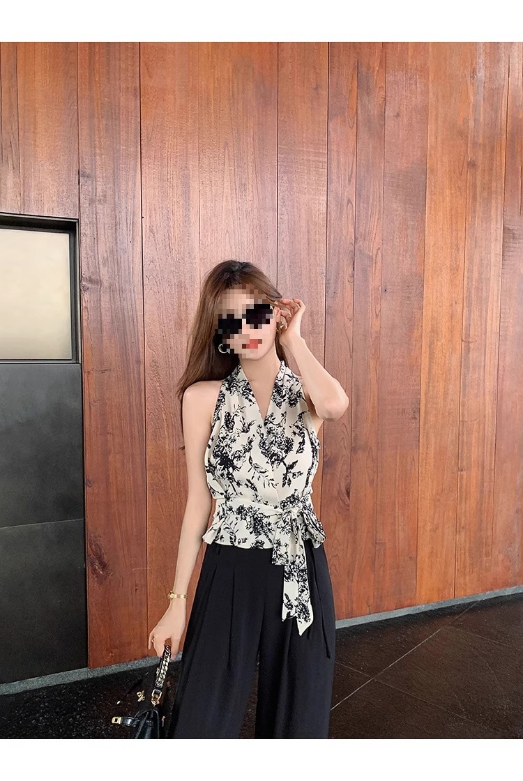 A Sleeveless Halter-neck Floral Vesta Chic And Stylish Top Brimming With French Flair