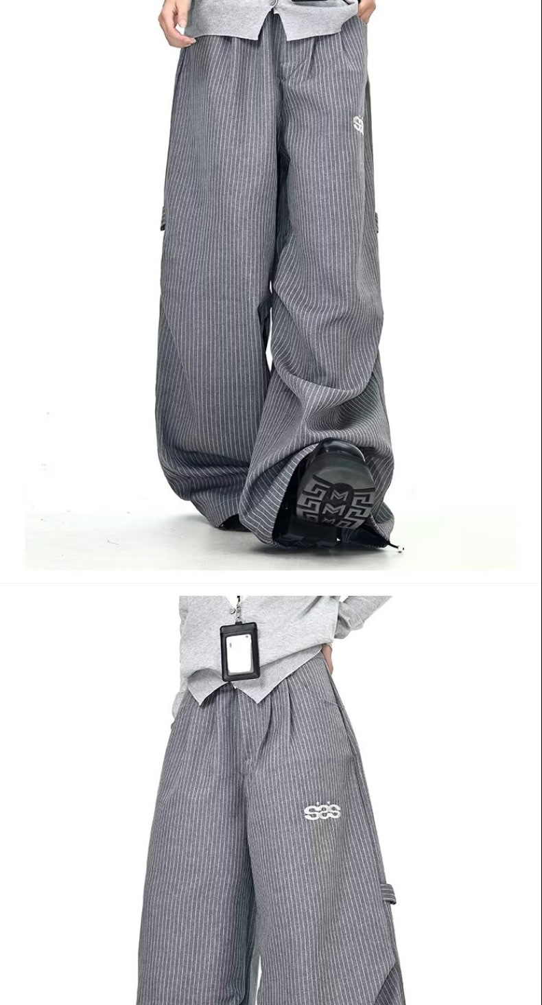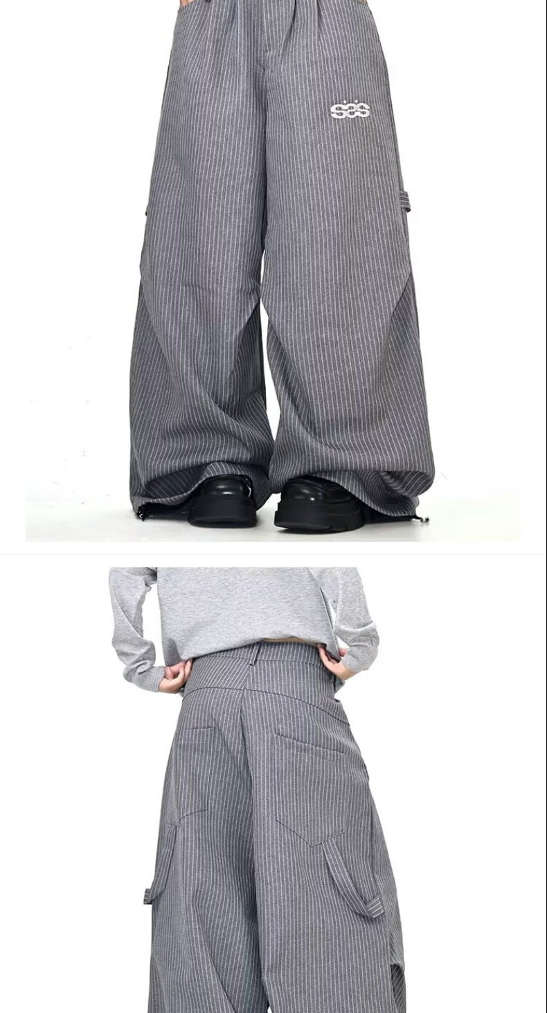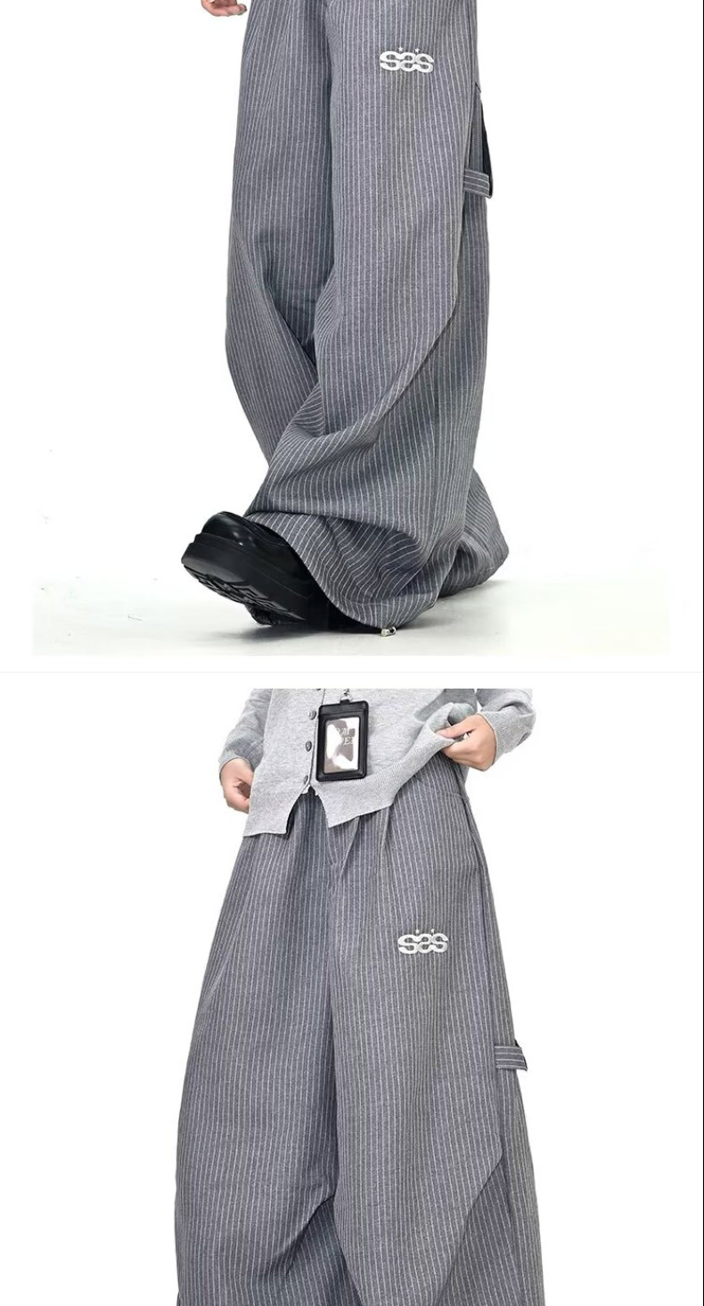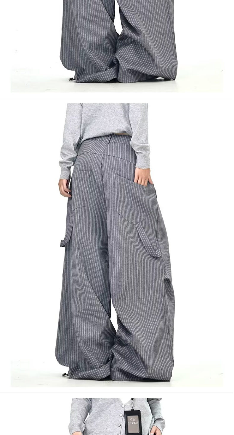 American-style Relaxed-fit Wide-leg Striped Workwear Casual Pants