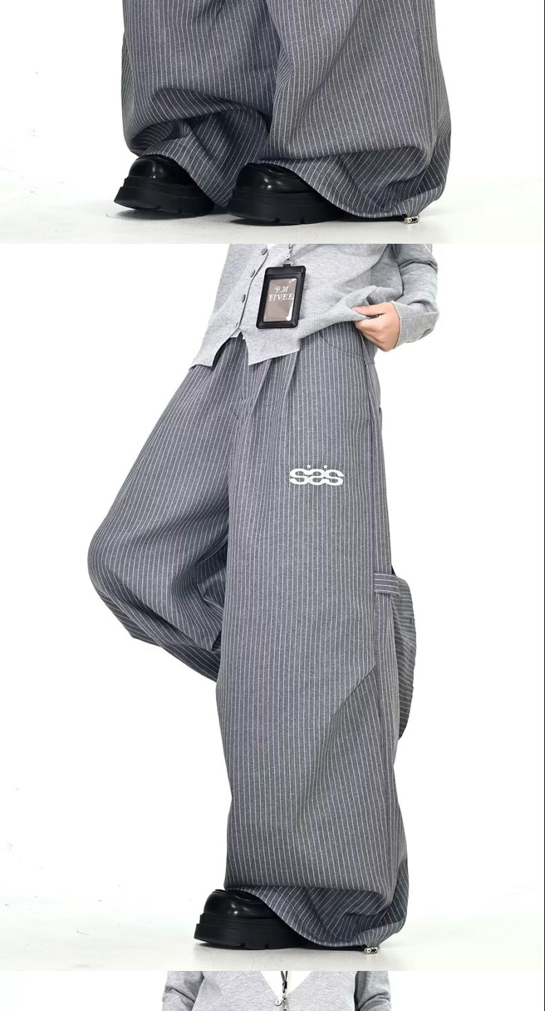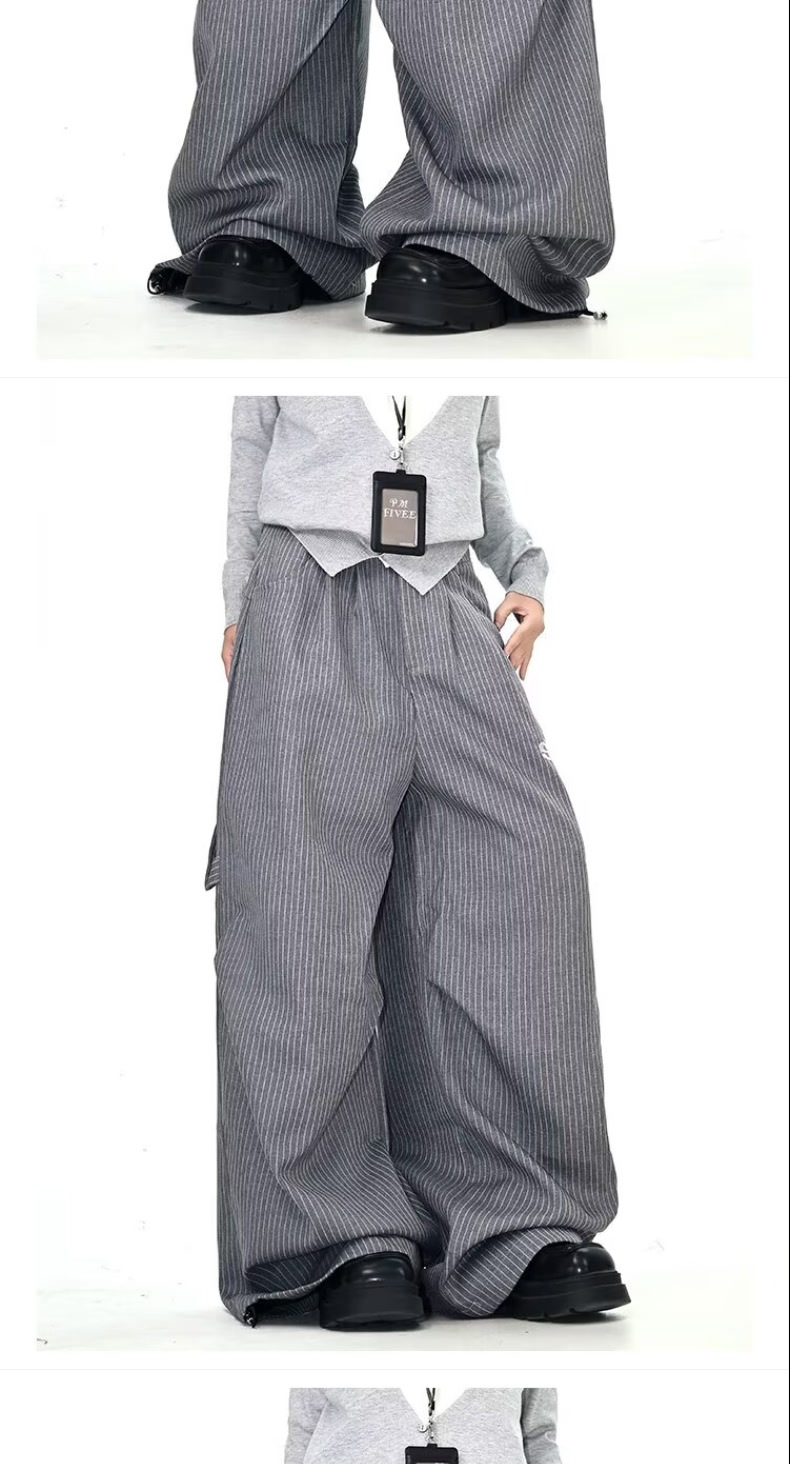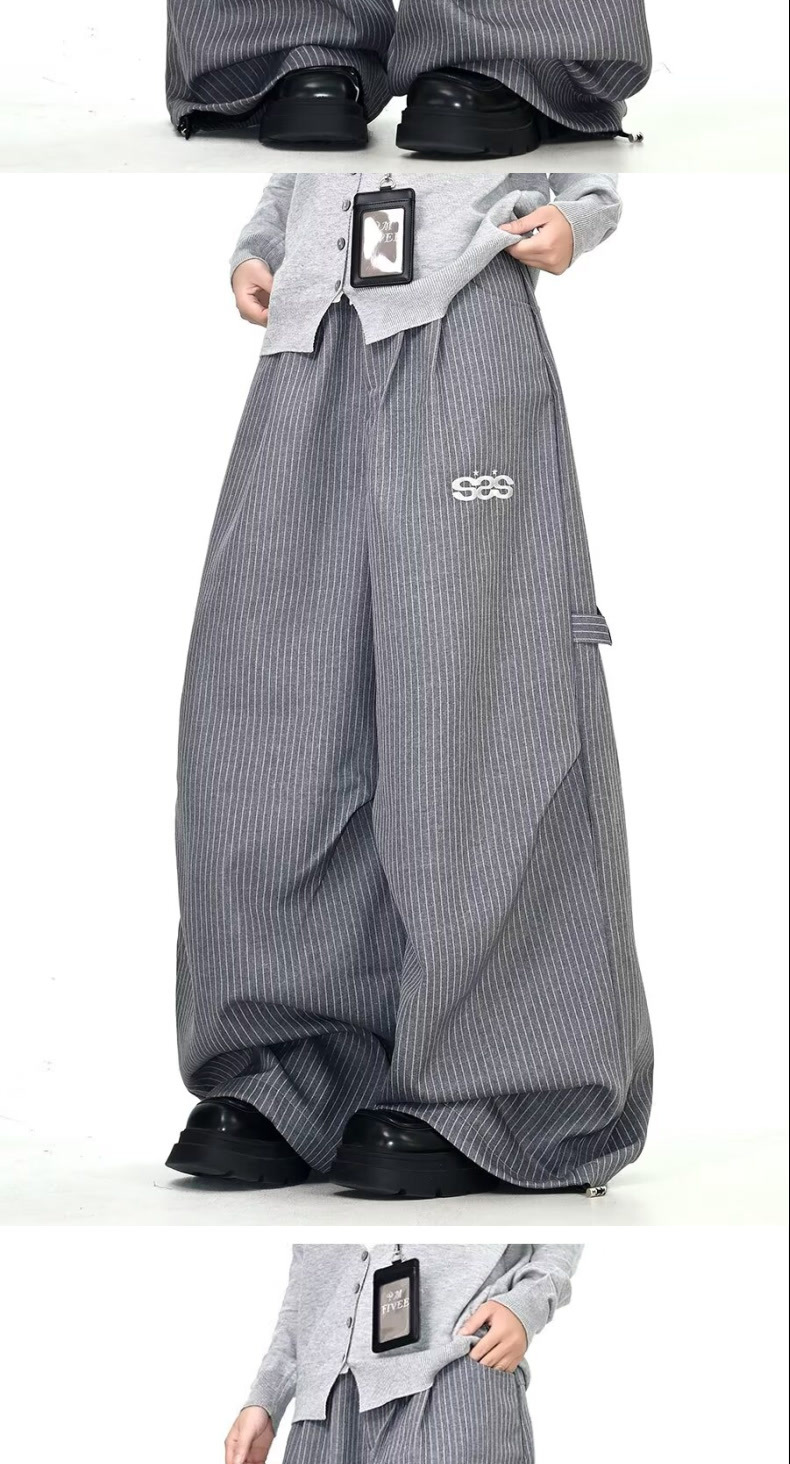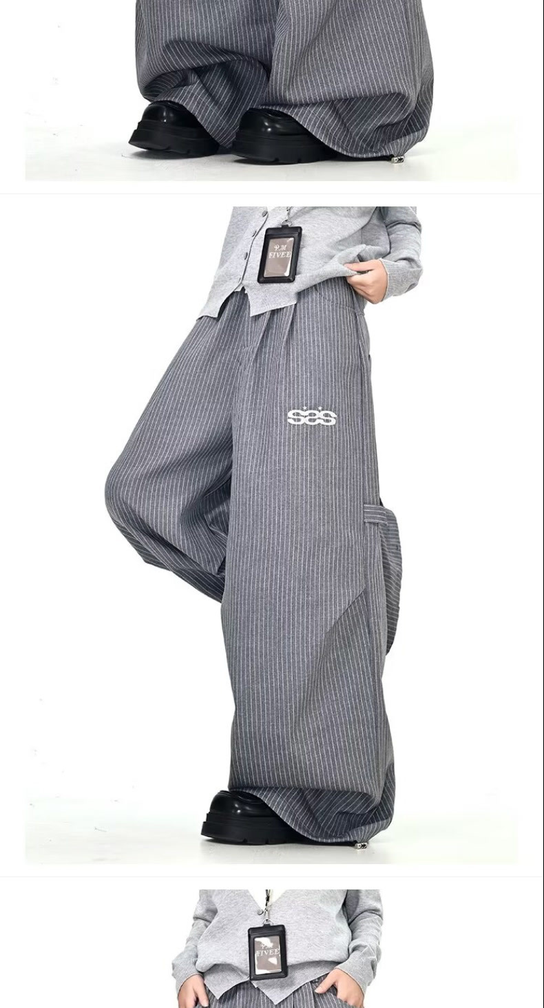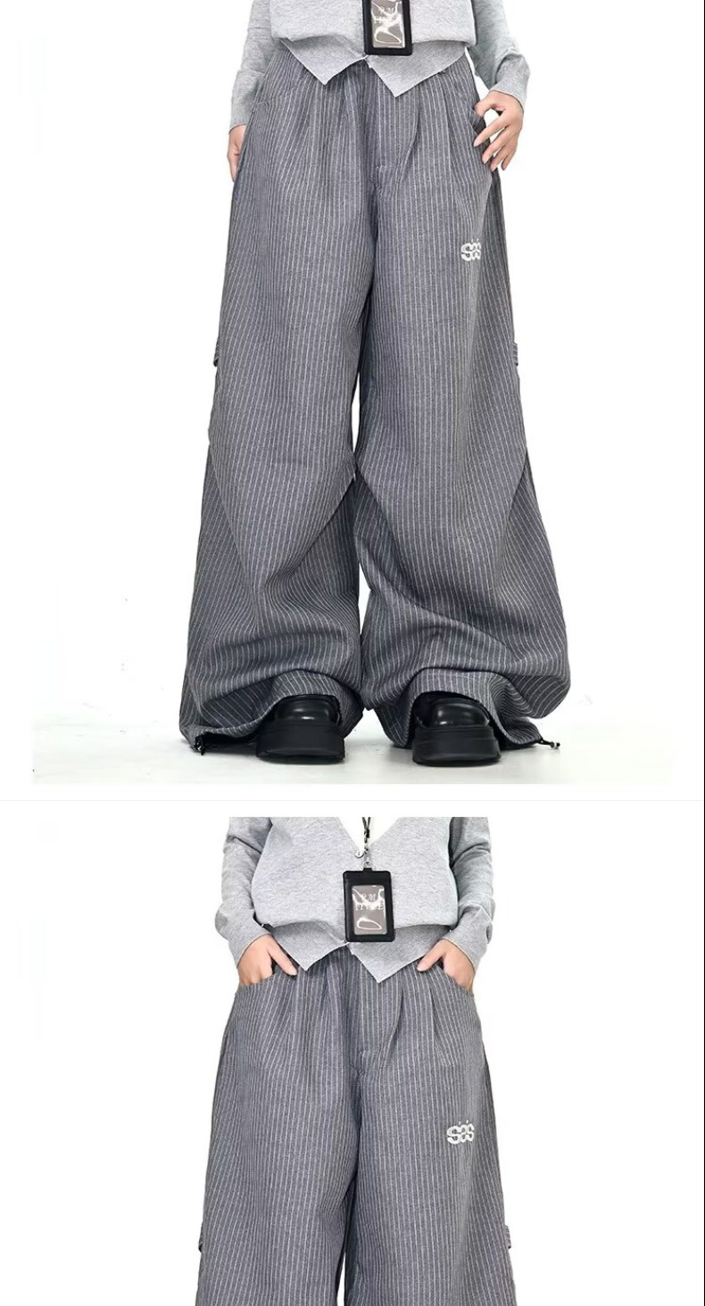 American-style Relaxed-fit Wide-leg Striped Workwear Casual Pants