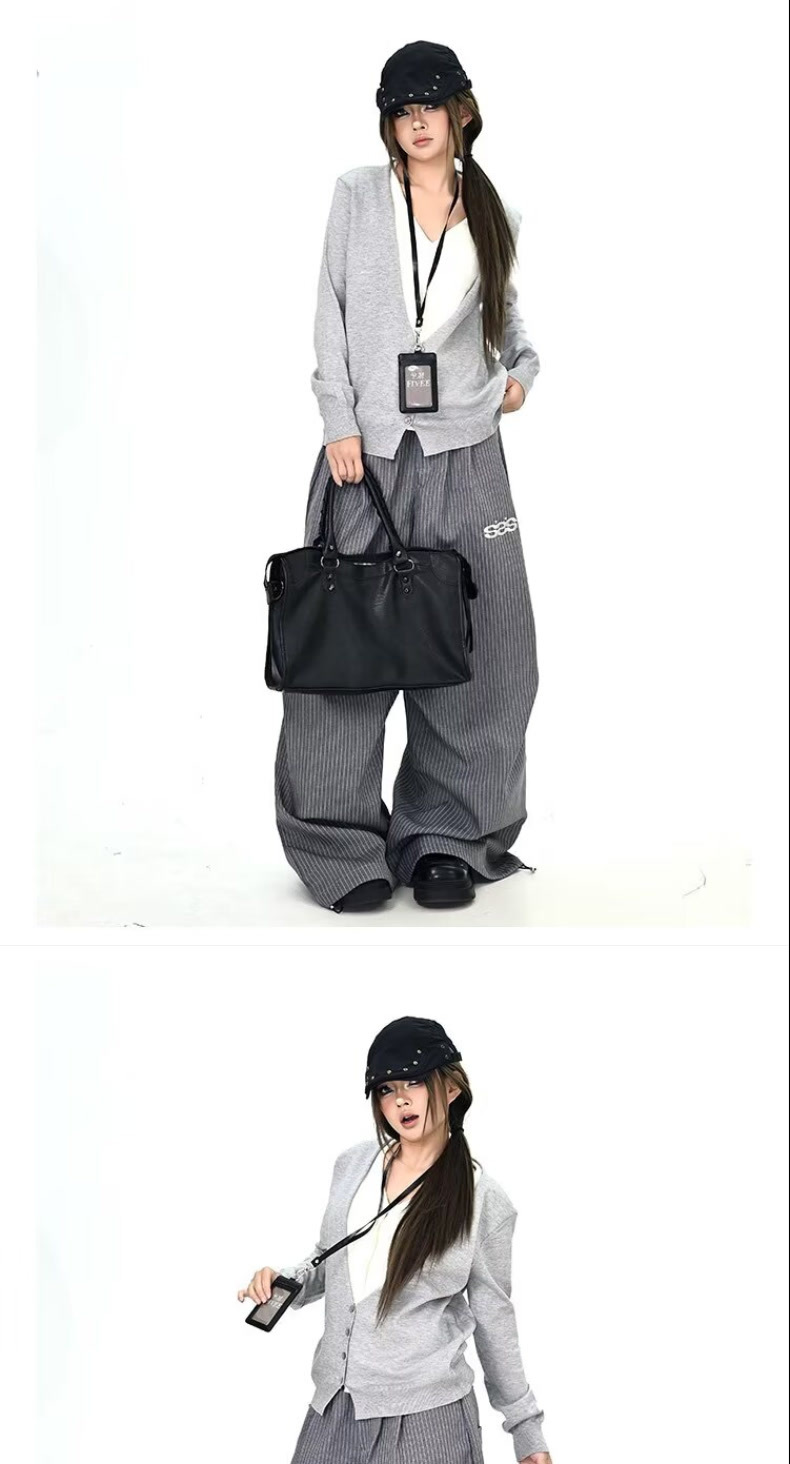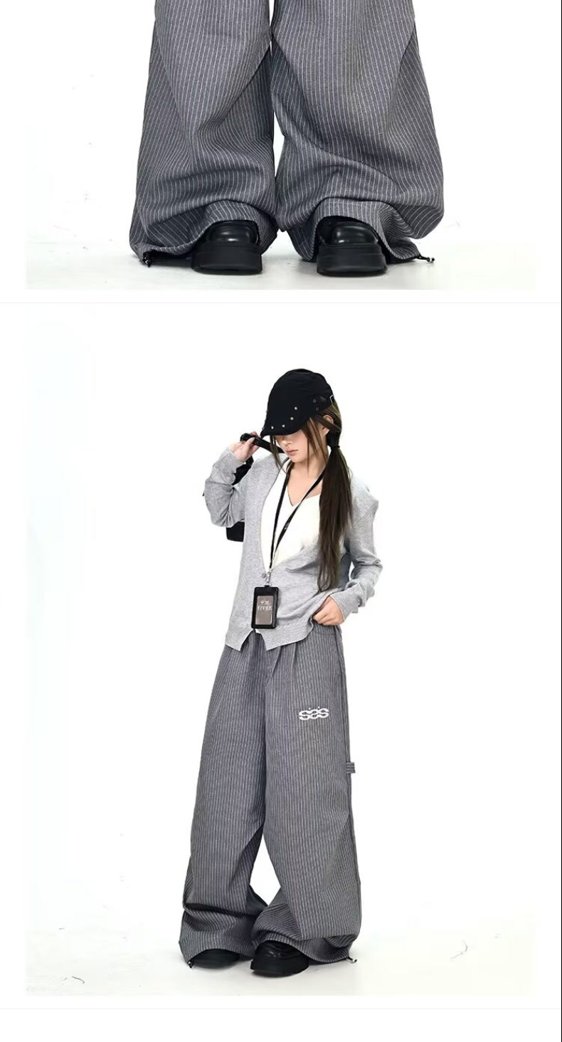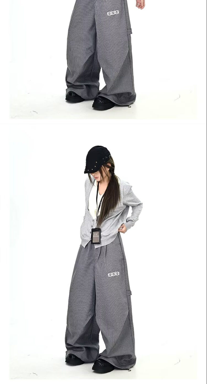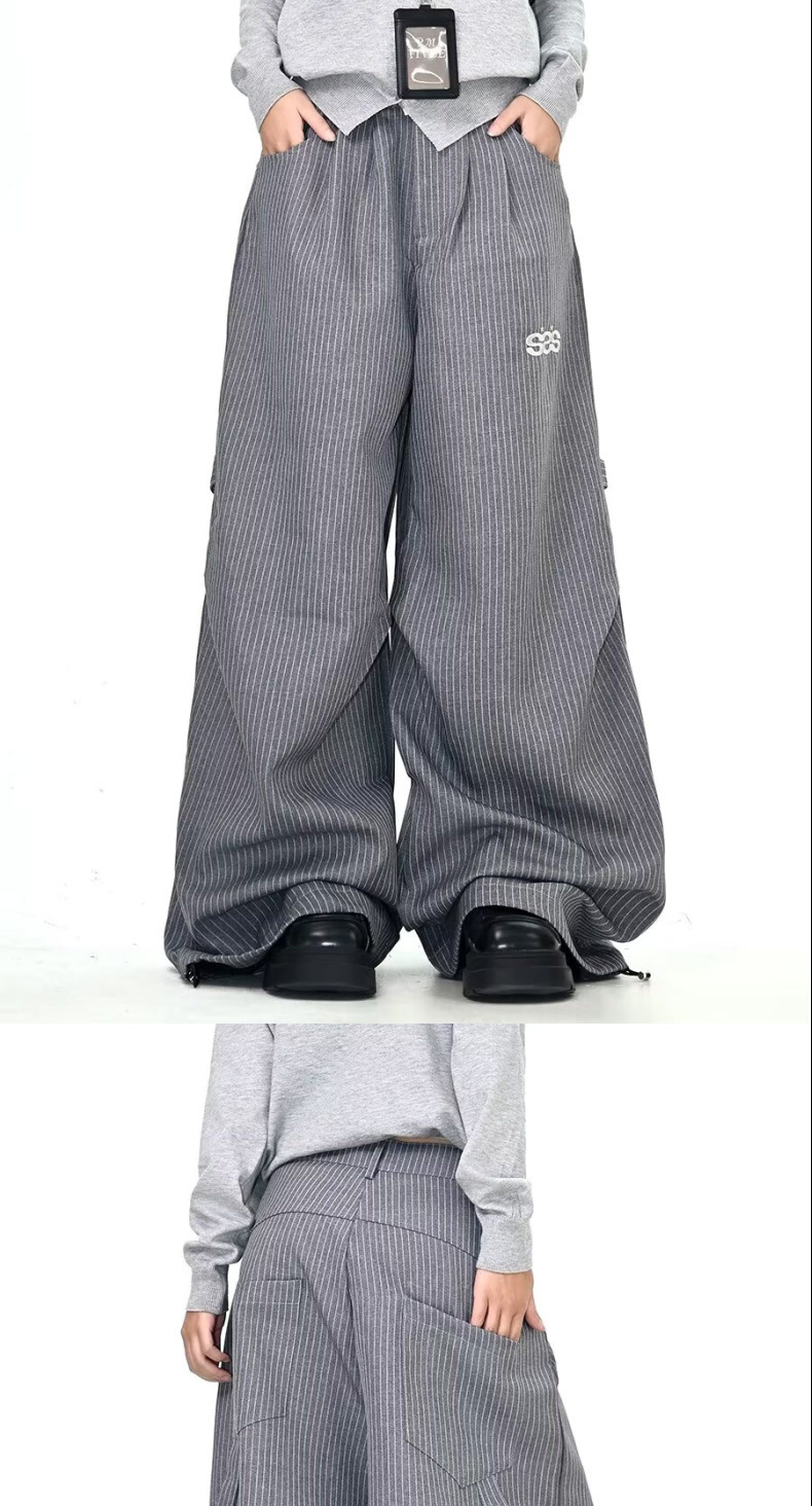 American-style Relaxed-fit Wide-leg Striped Workwear Casual Pants