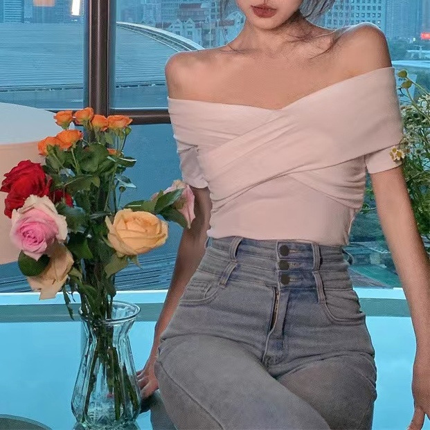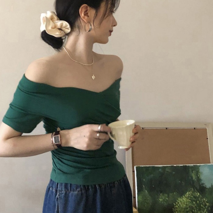 0 Review for Arrival Hong Kong-Style Retro Off-Shoulder Short-Sleeve T-Shirt