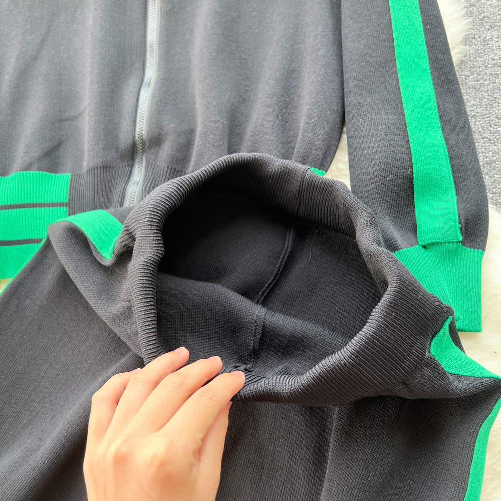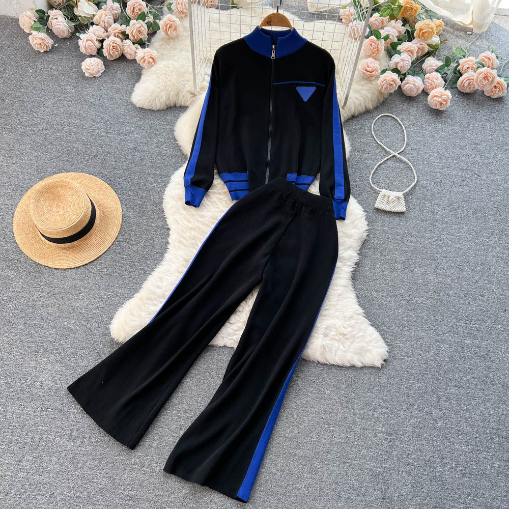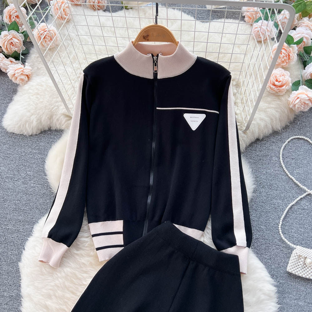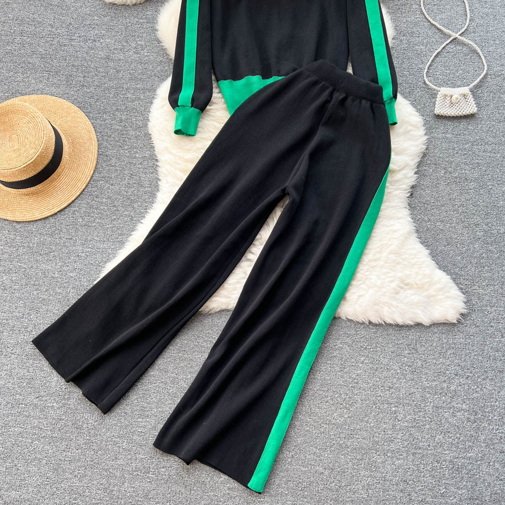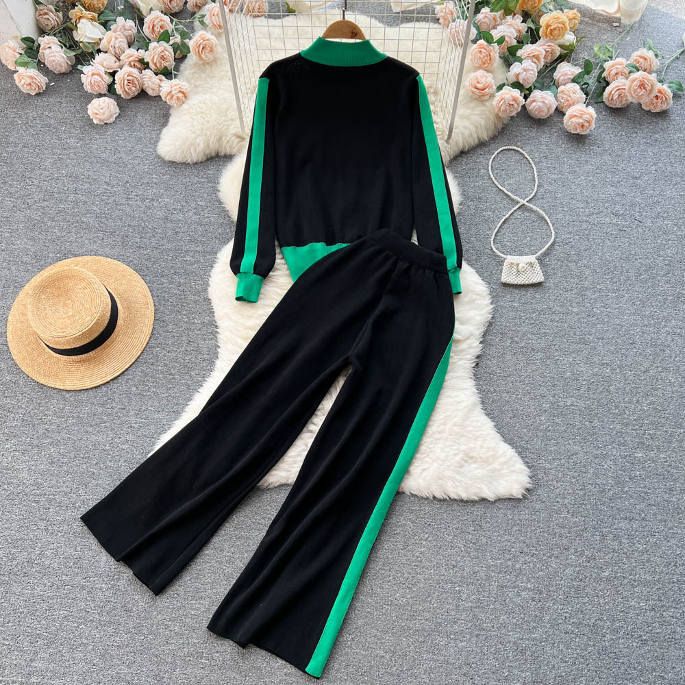 Athletic Contrast-color Long-sleeve Baseball Jacket And Casual Pants Set