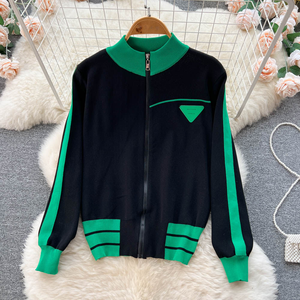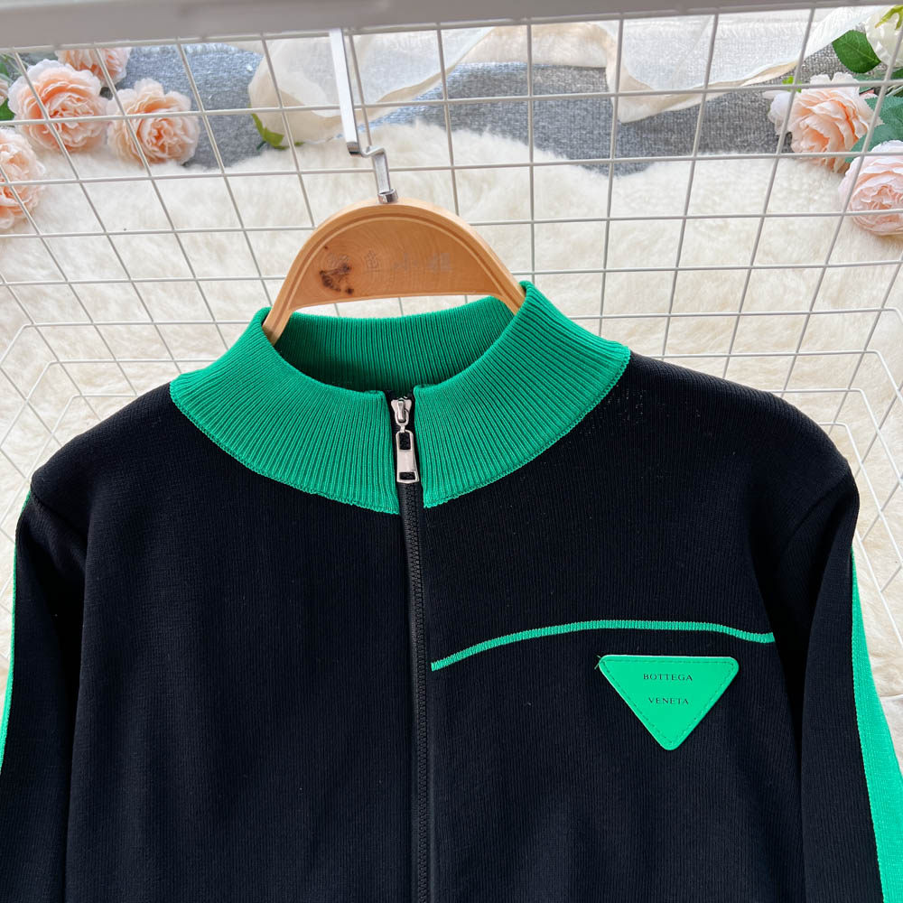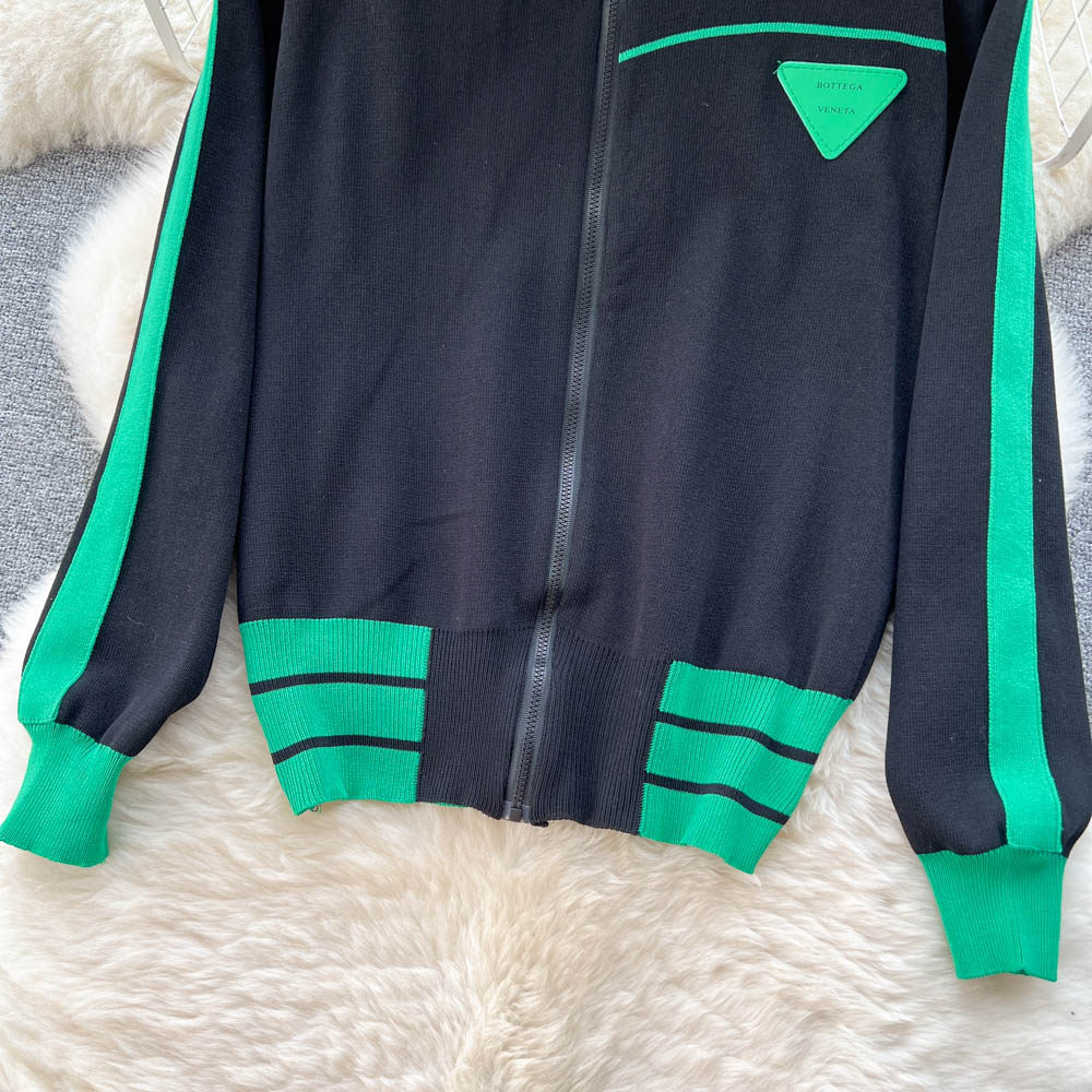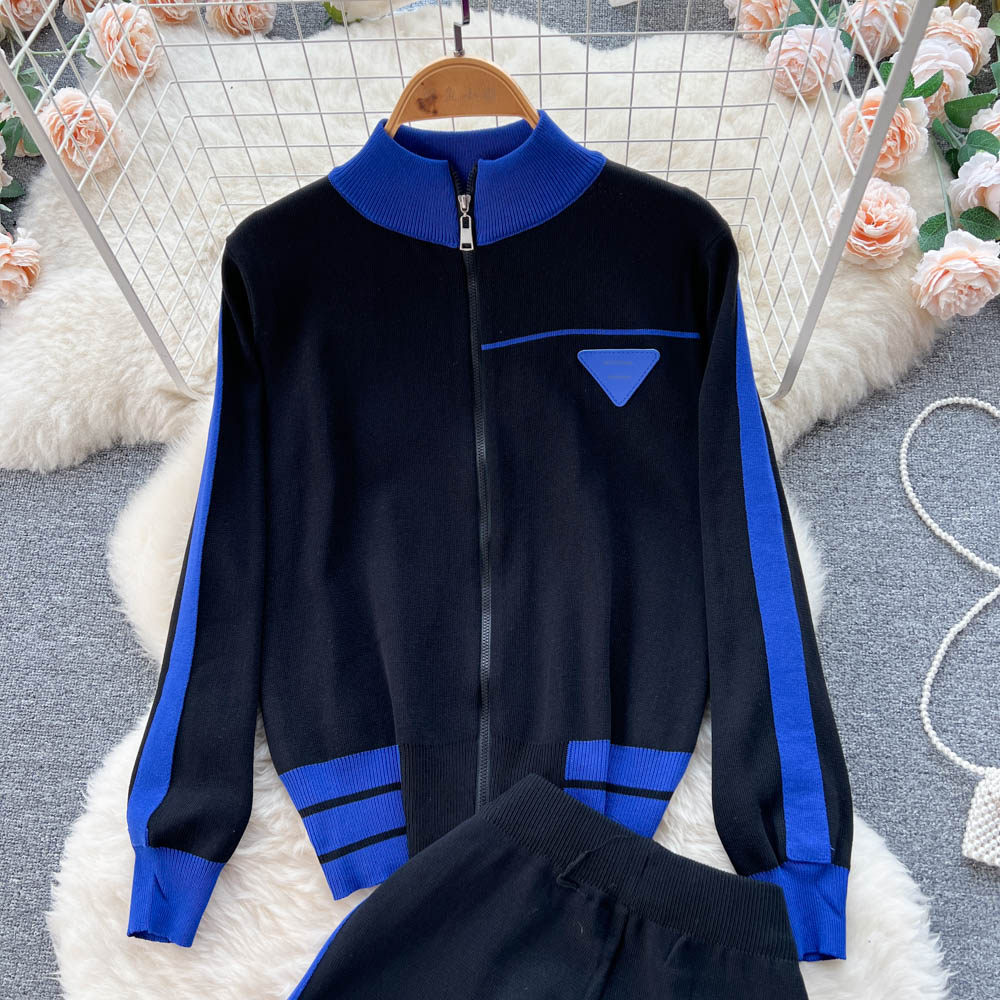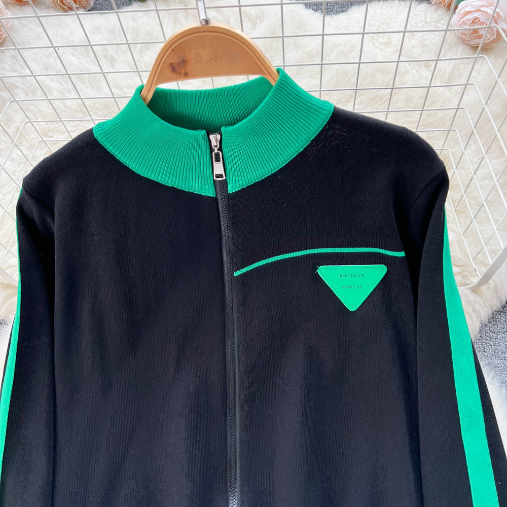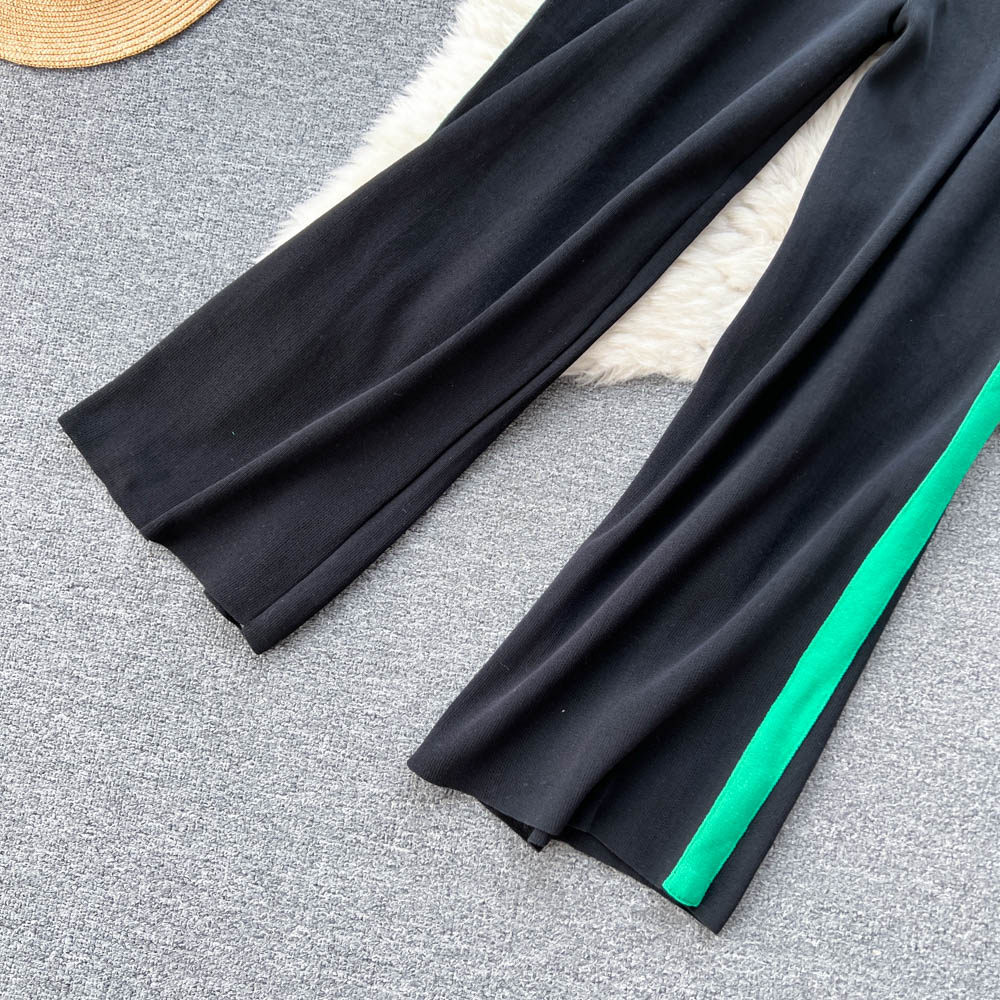 Athletic Contrast-color Long-sleeve Baseball Jacket And Casual Pants Set
