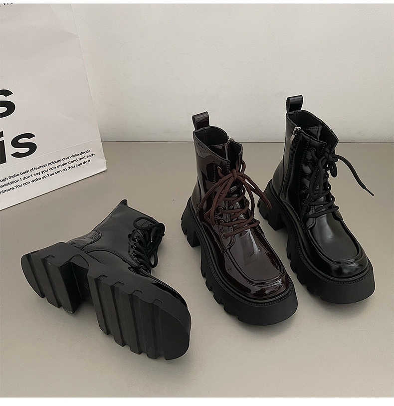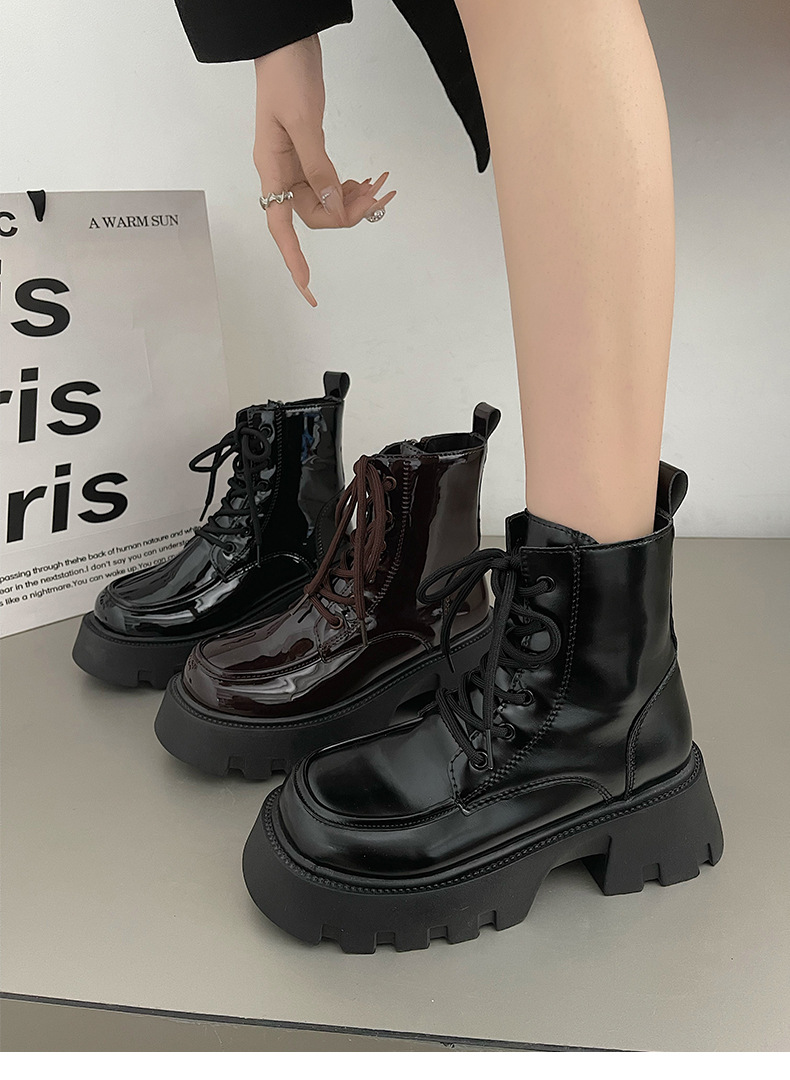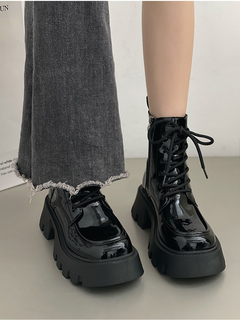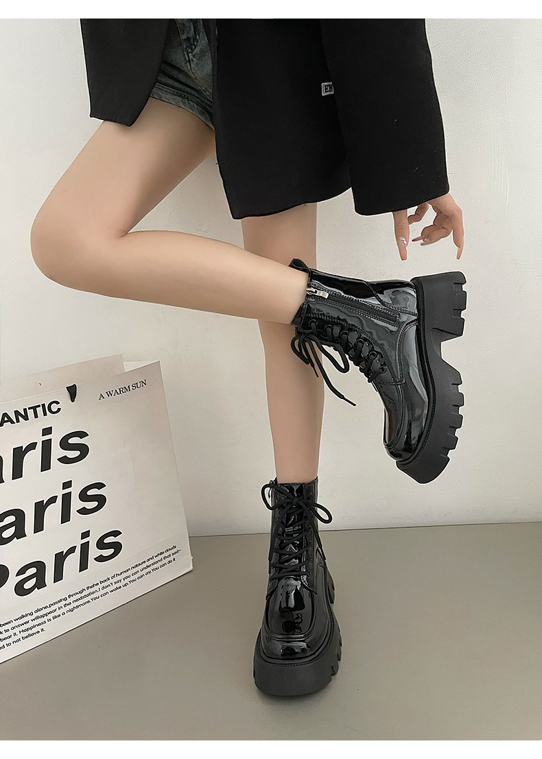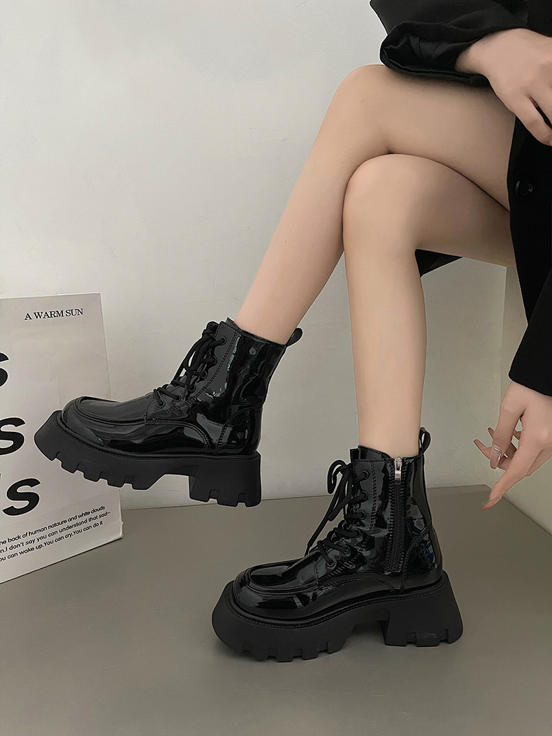 Black Vintage British-style Chunky-soled For Summer Thick-heeled Western Cowboy Ankle Boots