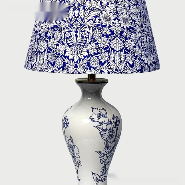 Blue And White Fabric Desk Lamp Liberti Fabric Creative Atmosphere