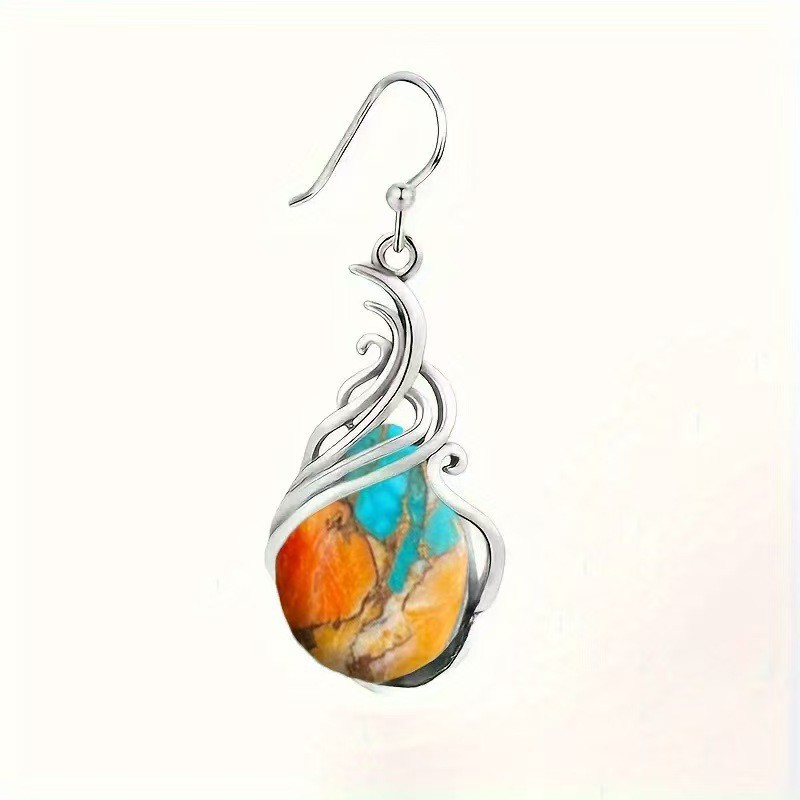 0 Review for Bohemian Womens Turquoise Patterned Hollow Waterdrop Earrings