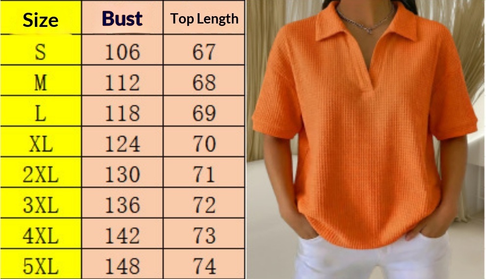 Buttoned Waffle-knit Short-sleeve T-shirt Solid-color Pullover Top