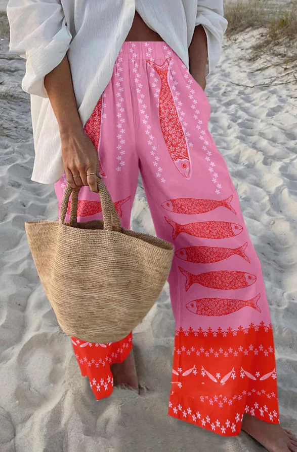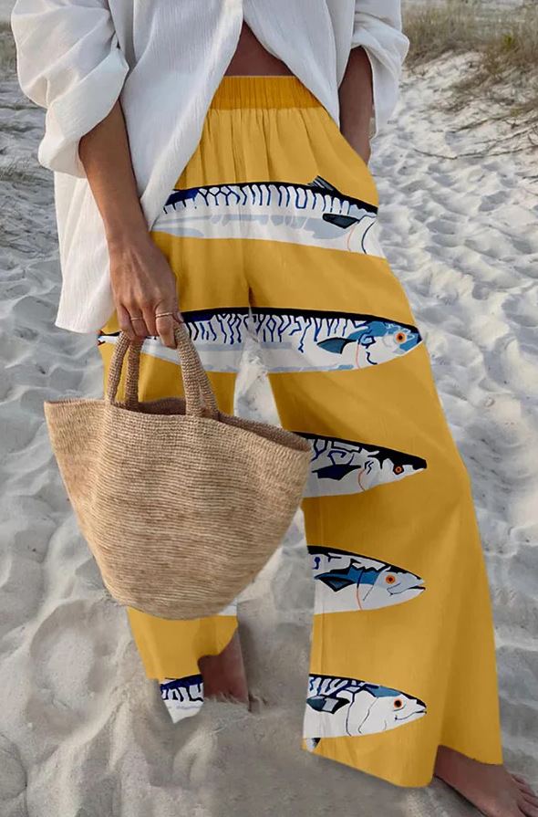 Casual Relaxed-fit Athletic Wide-leg Pants With A Fish-scale Pattern