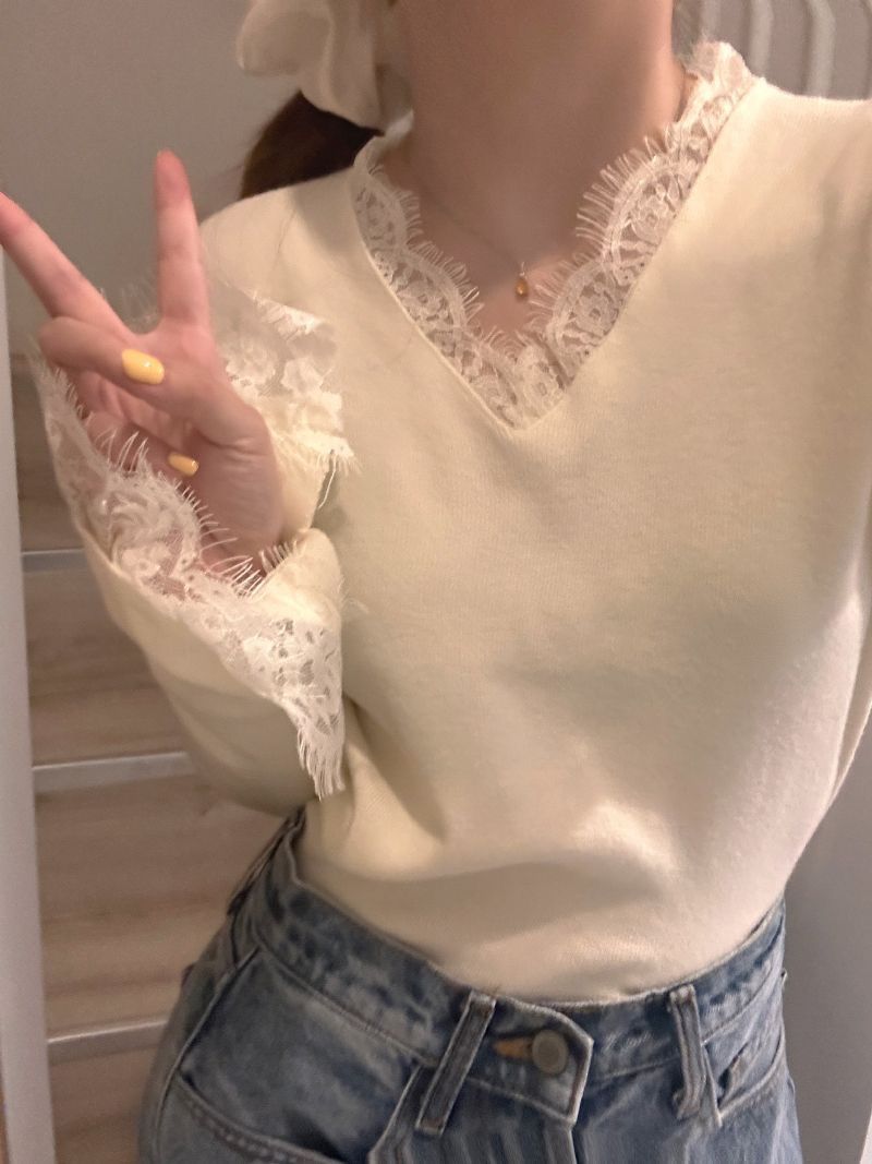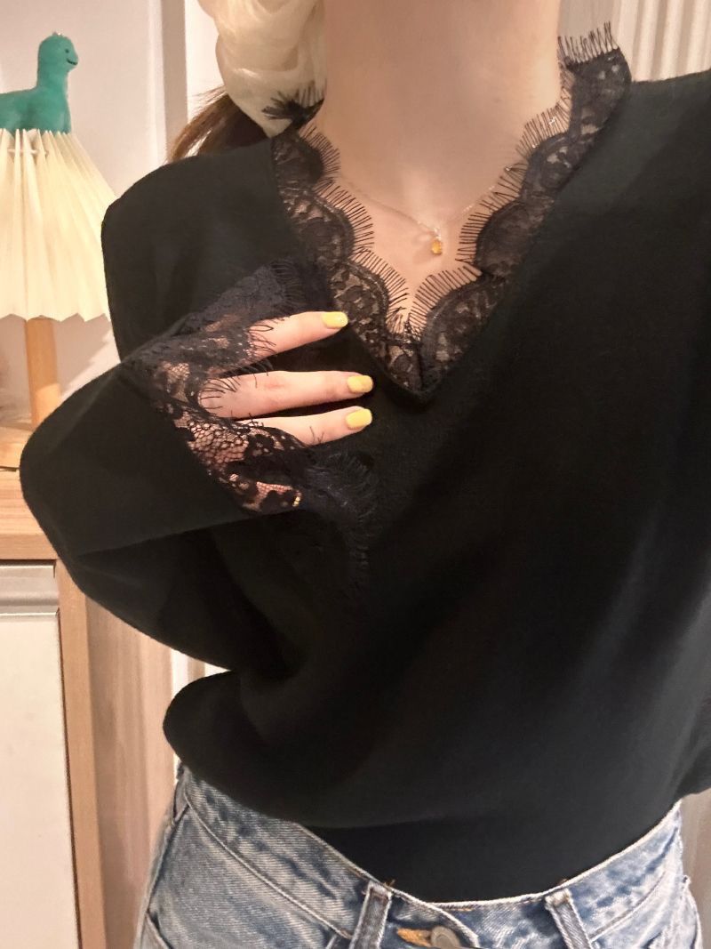 0 Review for Casual Soft-style Top With A Designer Touch Featuring Lace Paneling And Reversible Wear