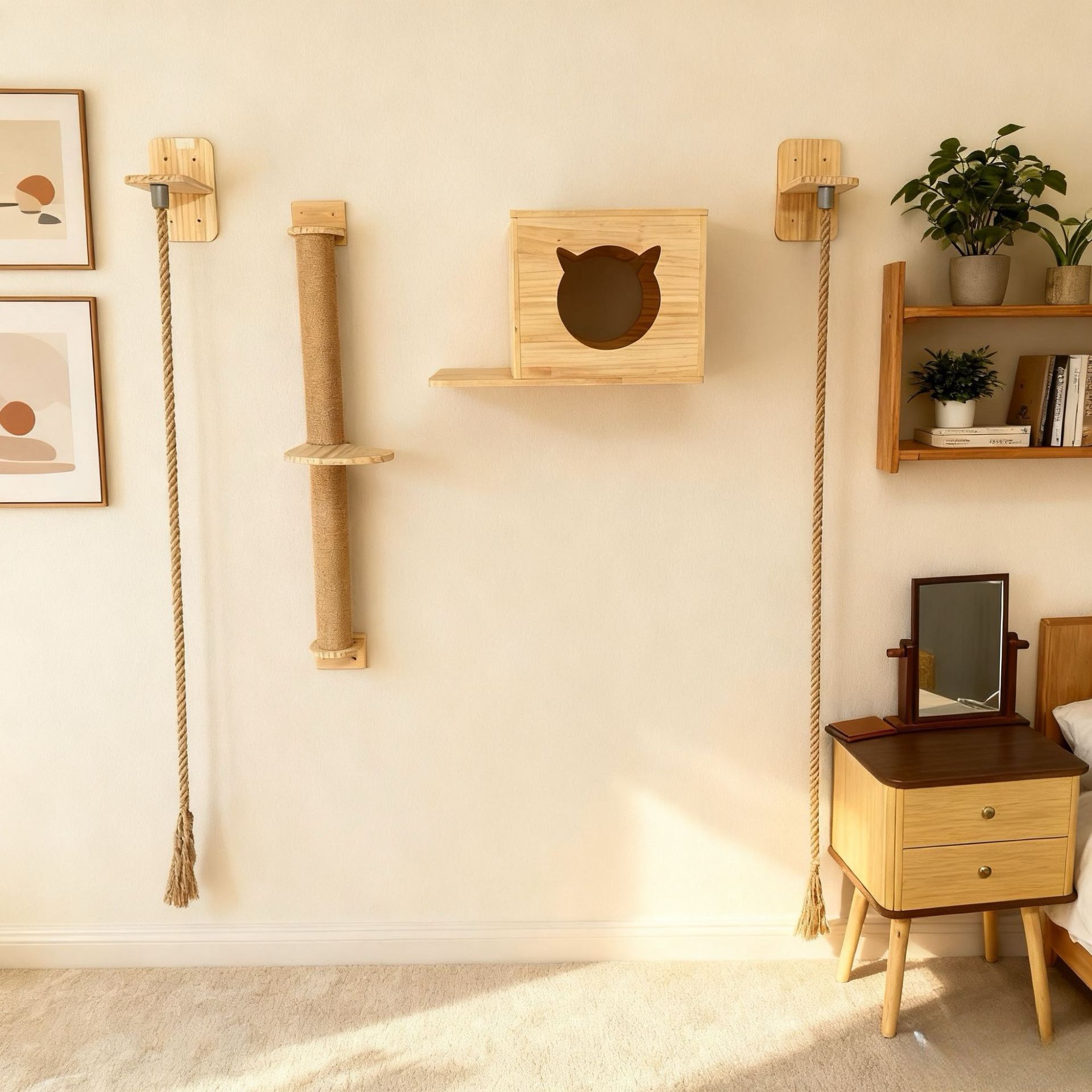Cat Tree With Scratching Post Jumping Platform And Cat Bed Complete Set