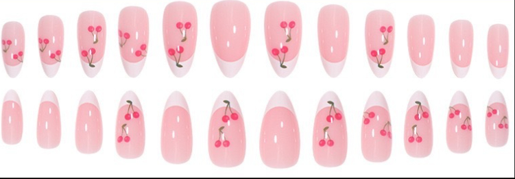 Cherry French Almond-Shape Removable Nail Tips Set Long Lasting Delicate And Girly Style