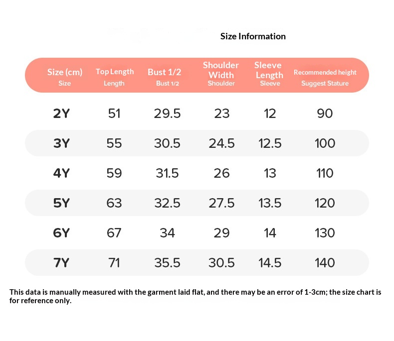 Suitable height: 2 years old (90 cm), 3 years old (100 cm), 4 years old (110 cm), 5 years old (120 cm), 6 years old (130 cm), 7 years old (140 cm)