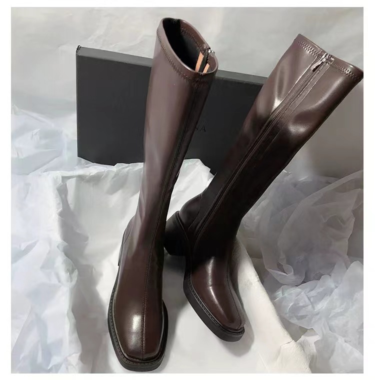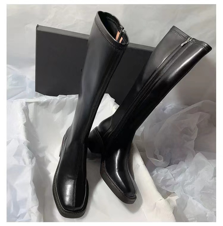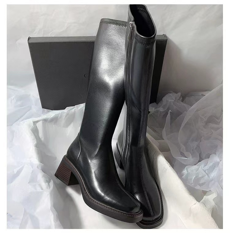 0 Review for Chunky-Heeled Fashionable Square-Toe Over-the-Knee Boots