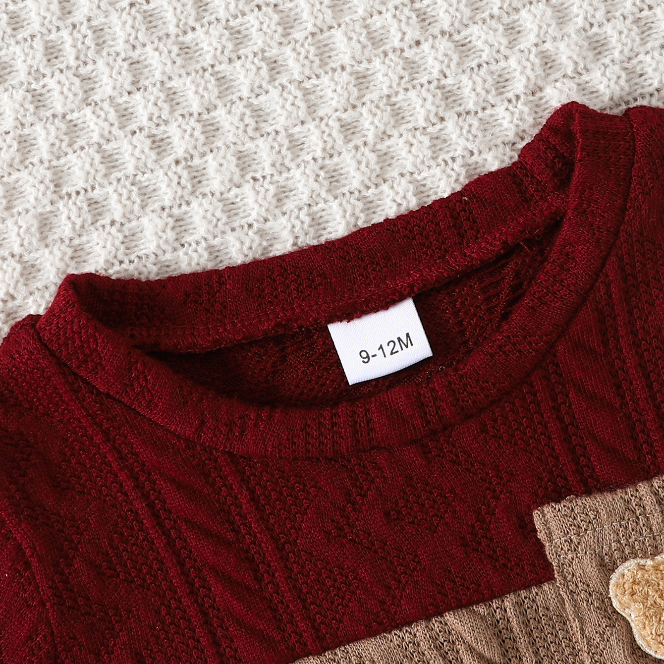 0 Review for Color-block Crewneck Long-sleeve Hoodie With Bear Patch