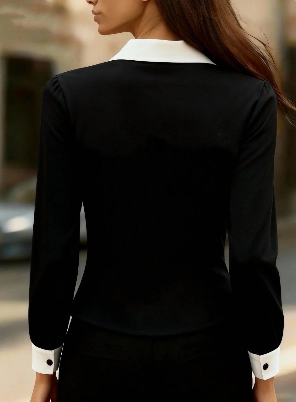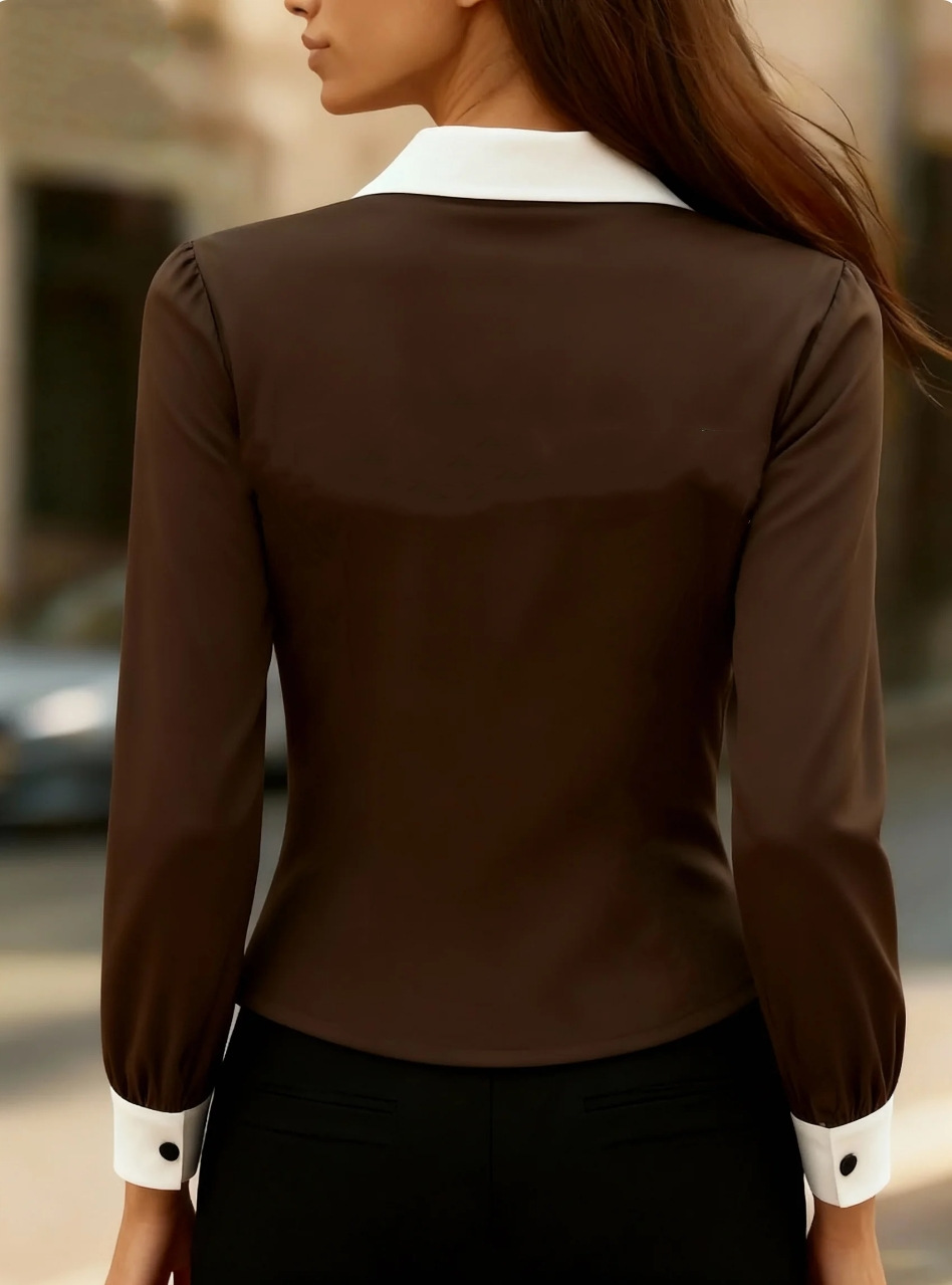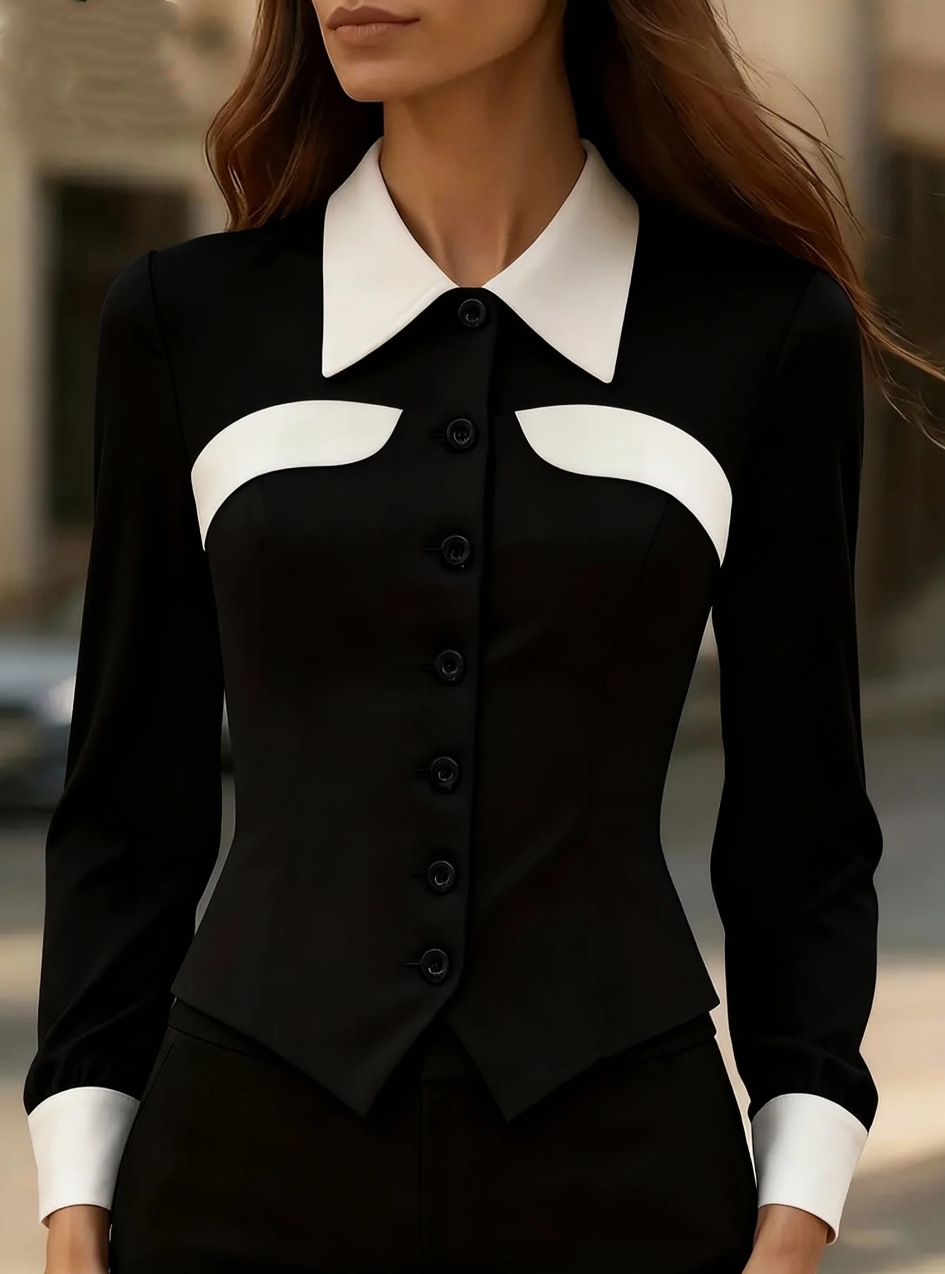 0 Review for Color-blocked Slim-fit Versatile Long-sleeve Shirt For Women