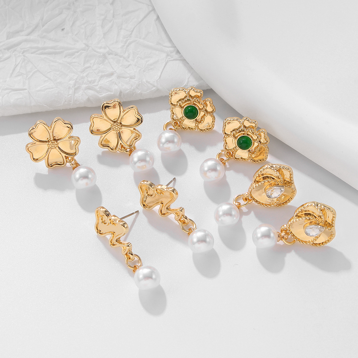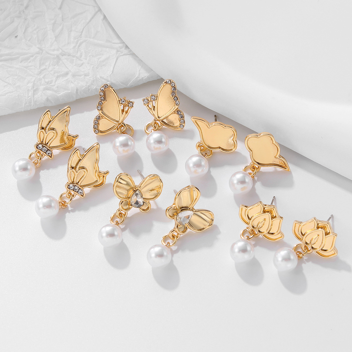 Colors: Fiery Flame Cloud Pattern Pearl Pendant Earrings, Five-Petal Flower Pearl Pendant Earrings, Rhinestone Bud Pearl Pendant Earrings, Lotus Pearl Pendant Earrings, Emerald Flower Pearl Pendant Earrings, Soaring Clouds Pearl Pendant Earrings, Rhinestone Butterfly Pearl Pendant Earrings