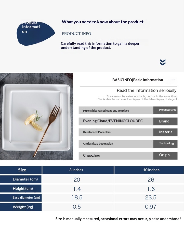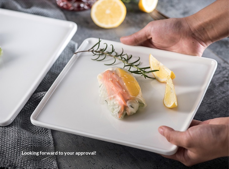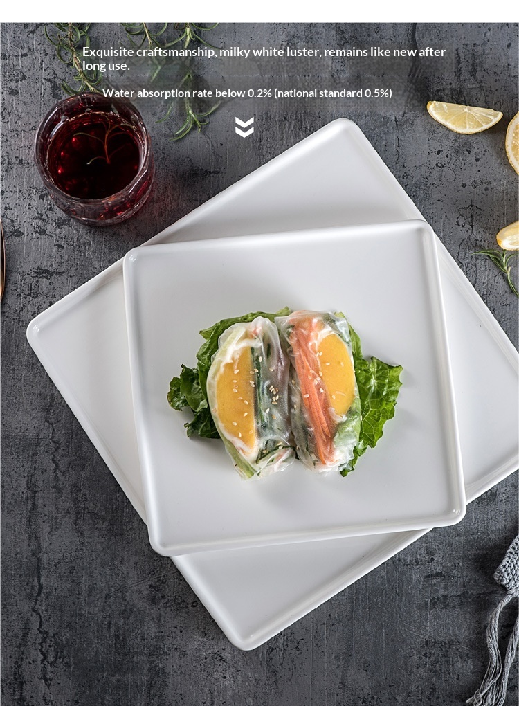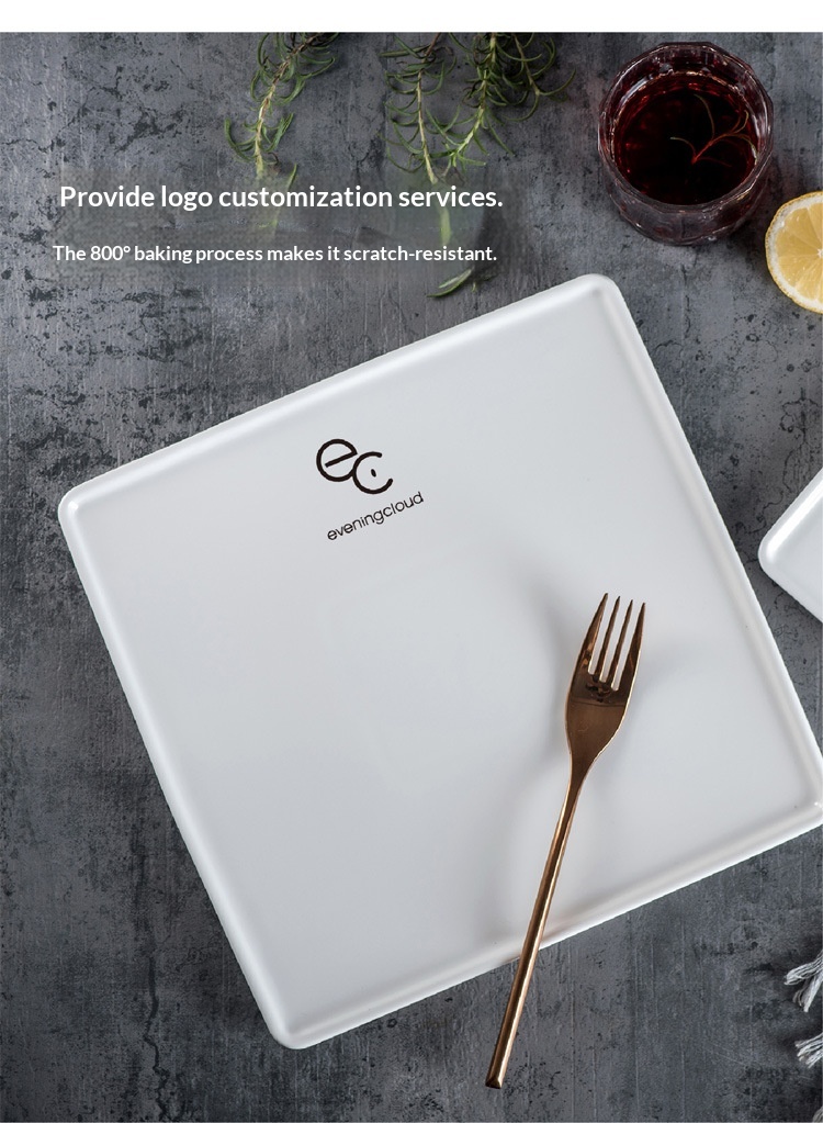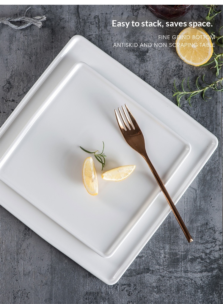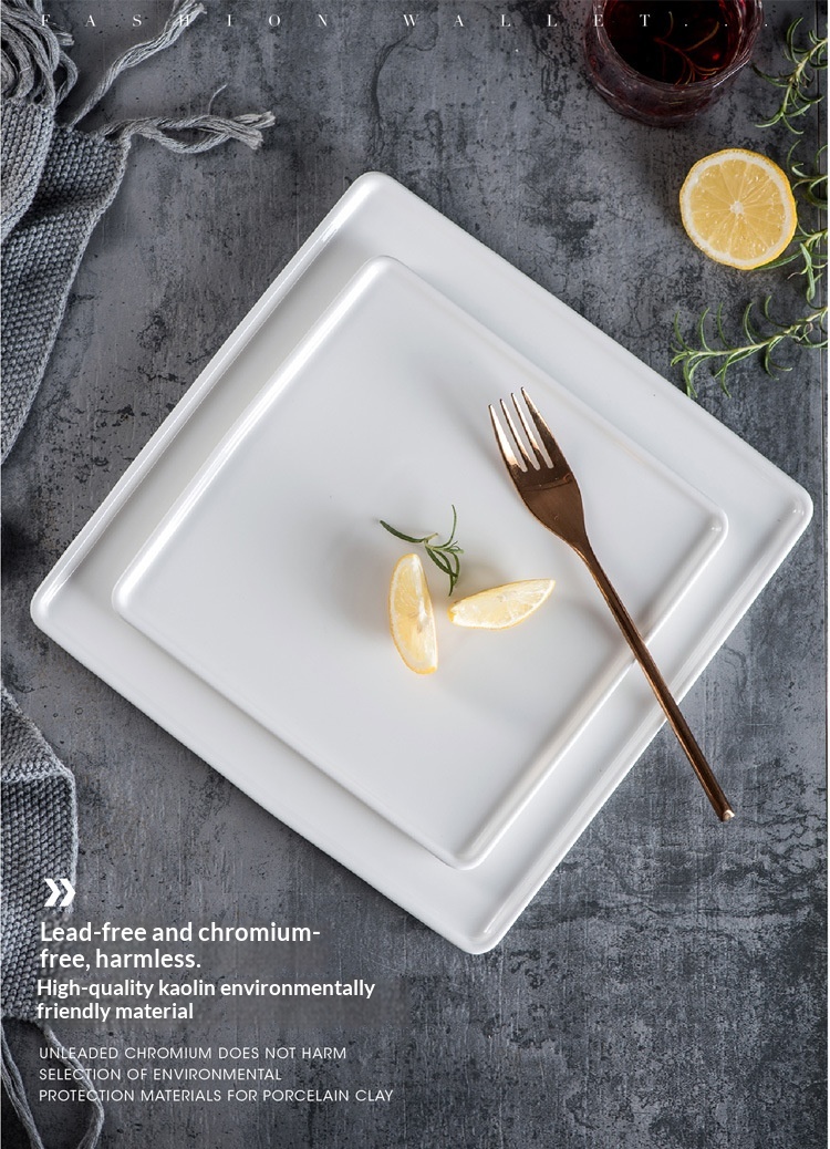 Creative Pure White Square Ceramic Plate For Western Cuisine And Desserts