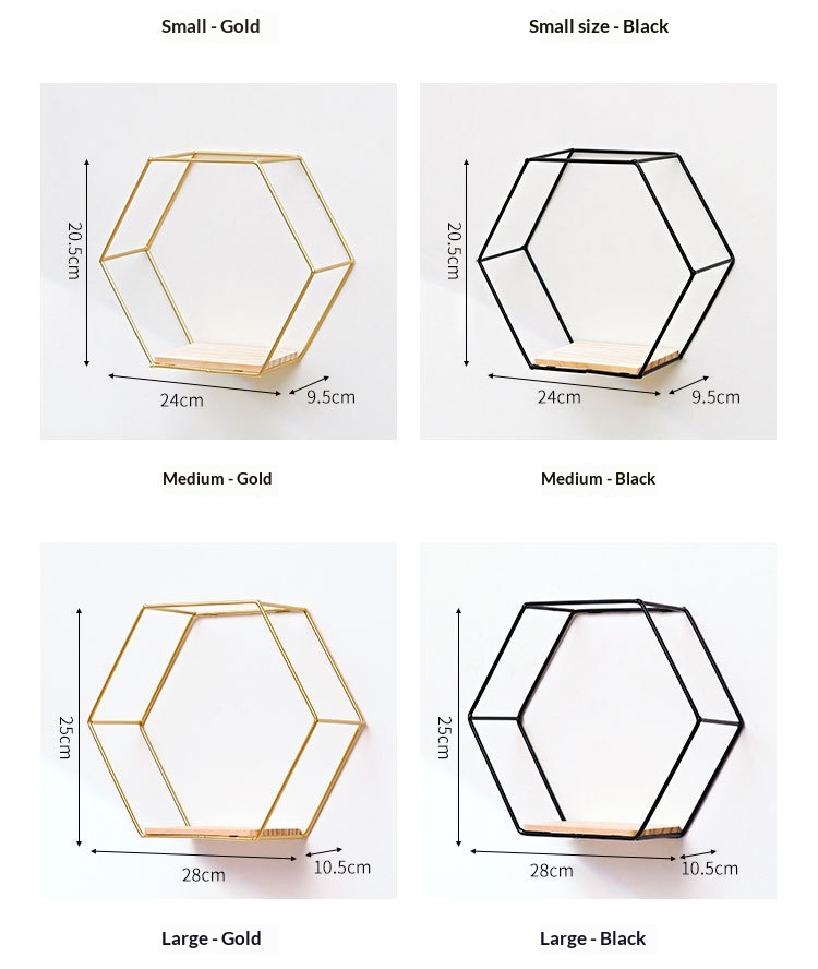 Colors: Single Hexagon 3-Piece Set—Gold (decorations not included), Single Hexagon 3-Piece Set—Black (decorations not included), Single Hexagon 3-Piece Set—White (decorations not included)