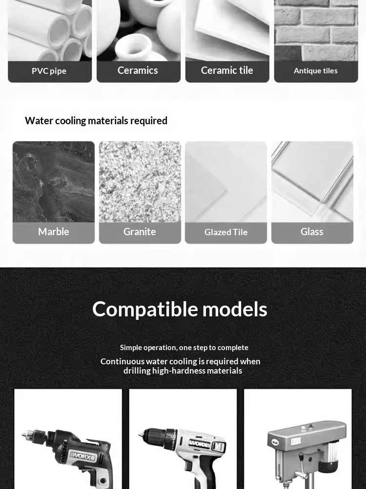 Scope of application: Versatile and suitable for tiles, glass, plastic, concrete, and ceramics.