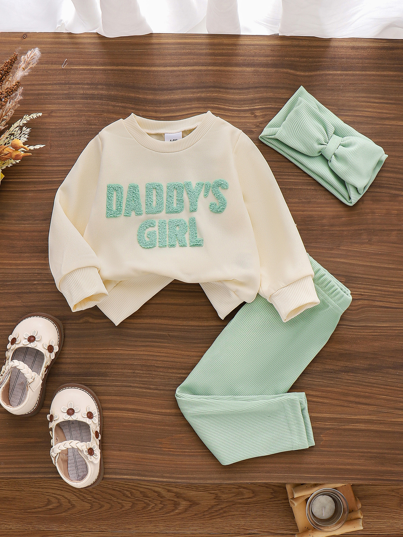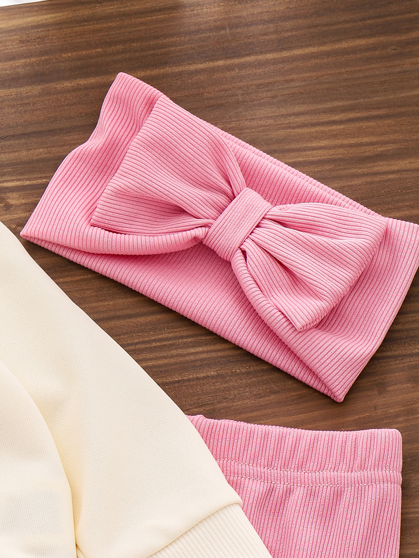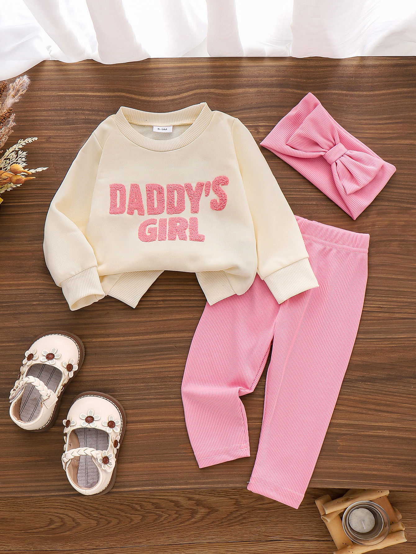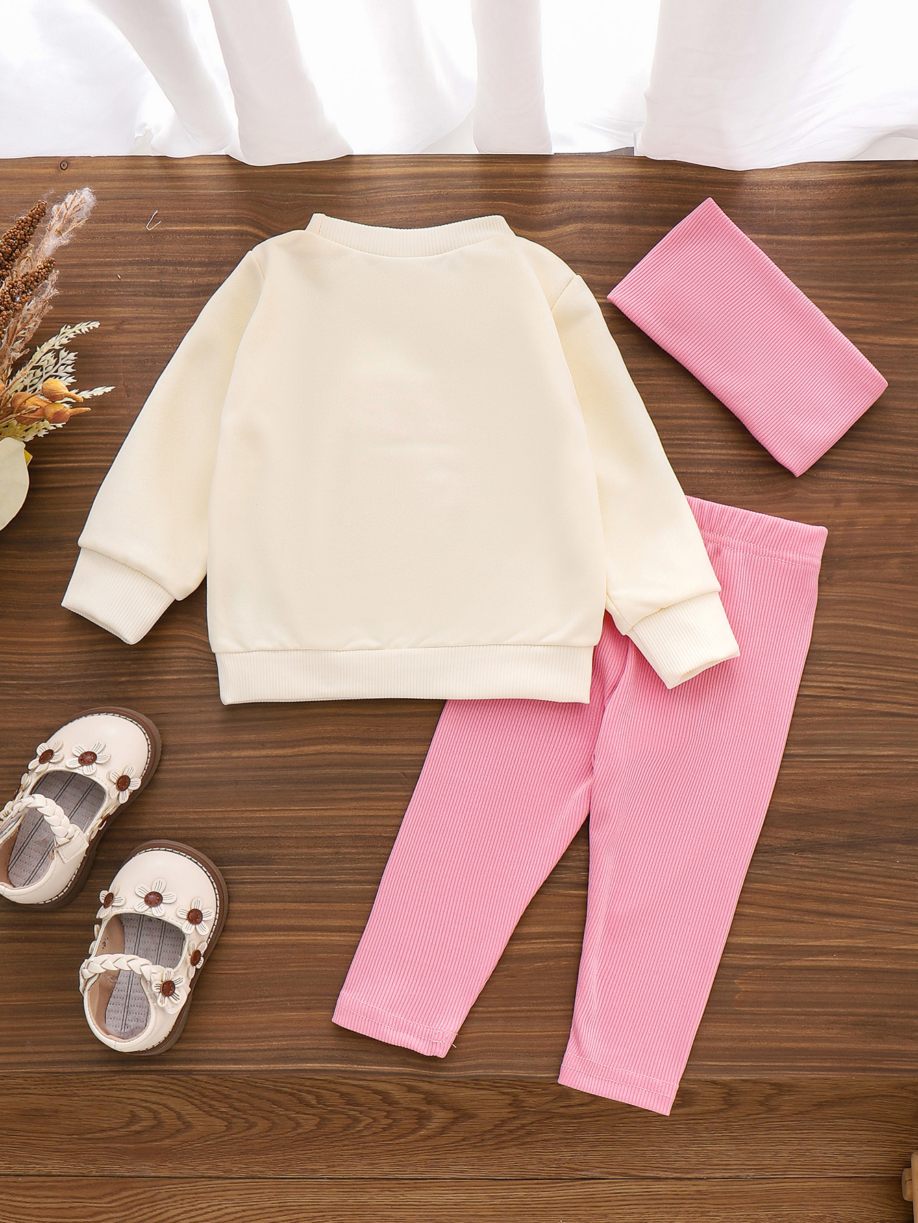 Cute Letter Print Sweatshirt And Pants Set With Bow Hairband For Little Girls