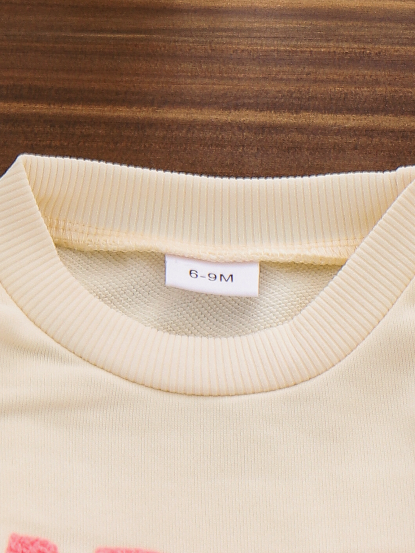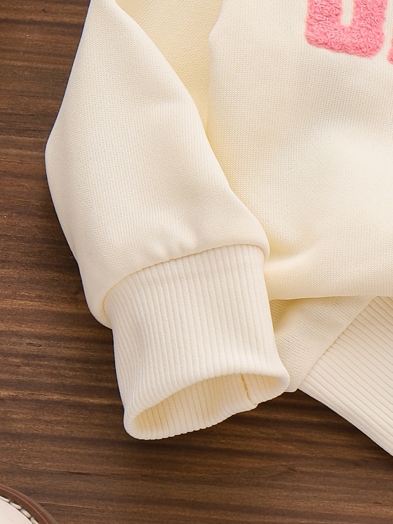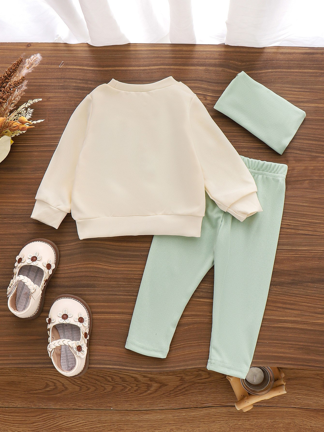 Cute Letter Print Sweatshirt And Pants Set With Bow Hairband For Little Girls