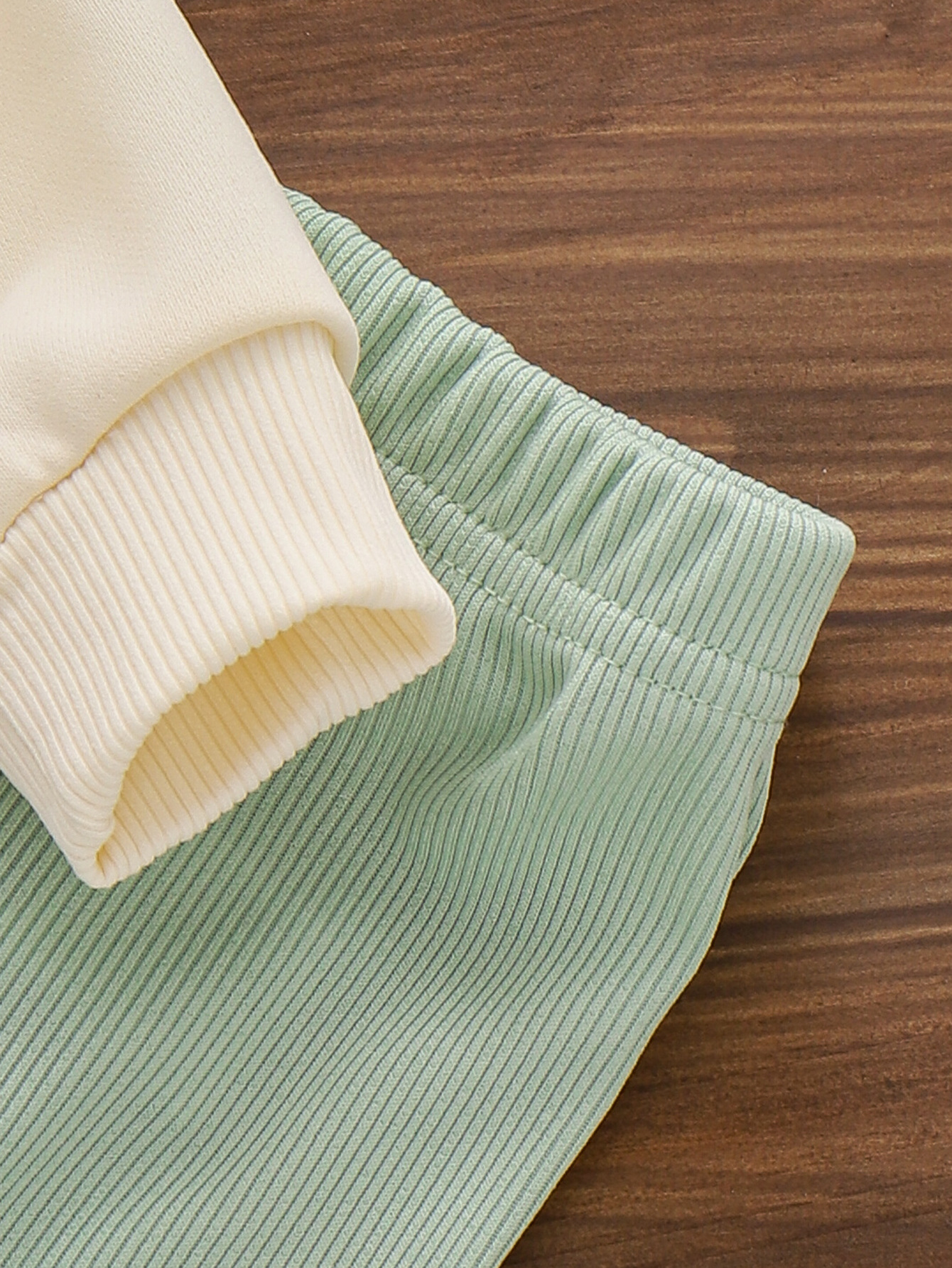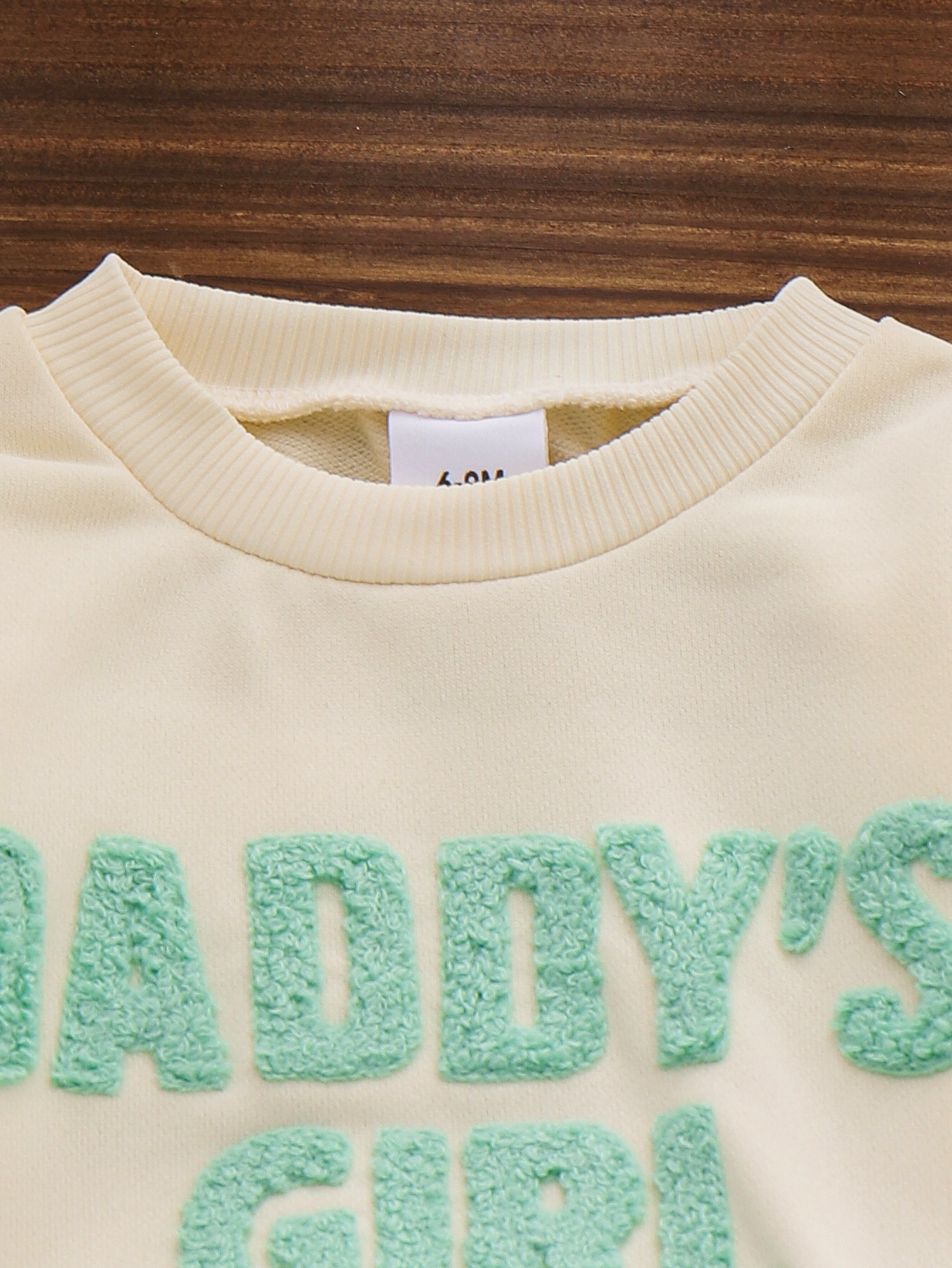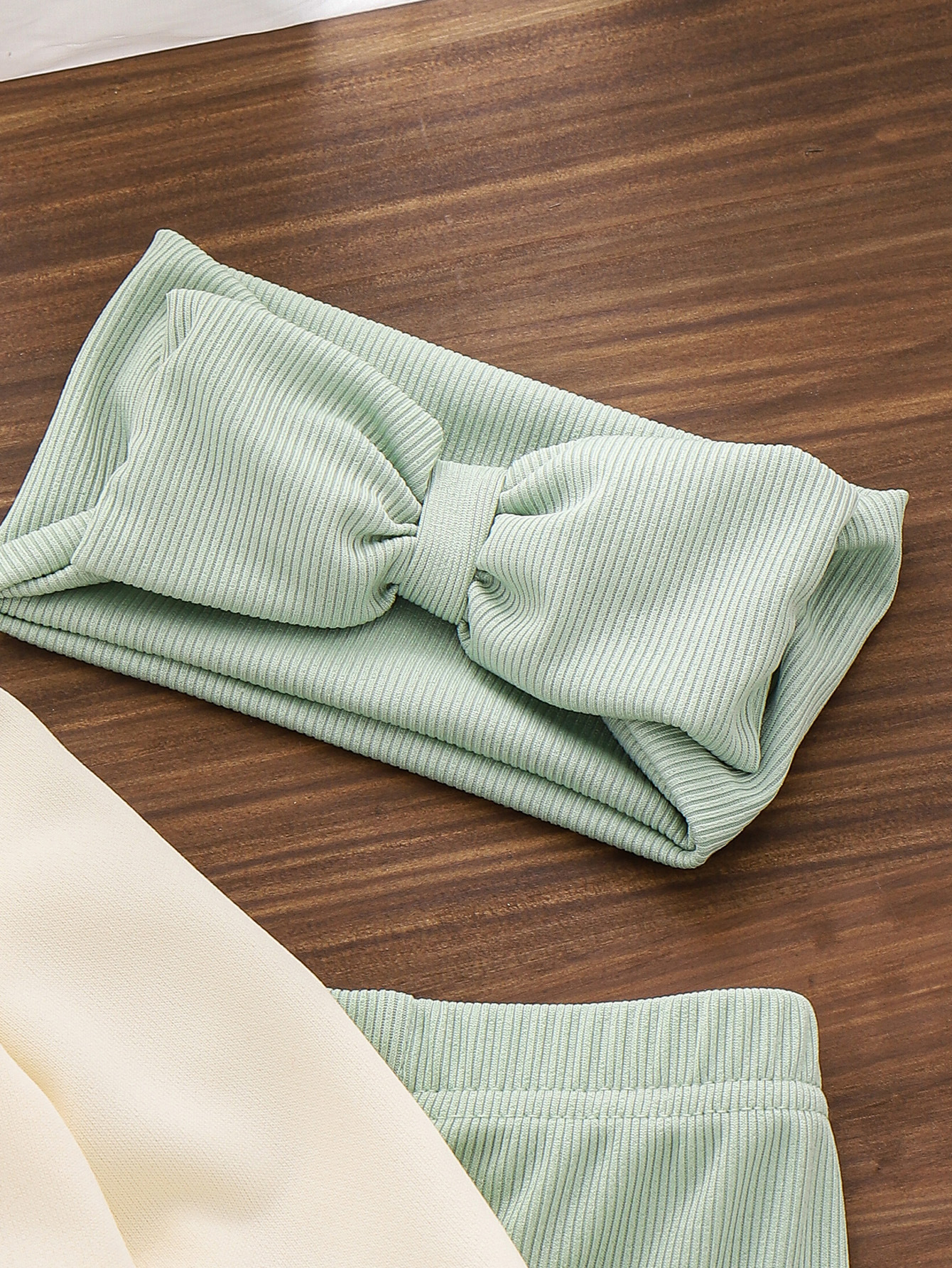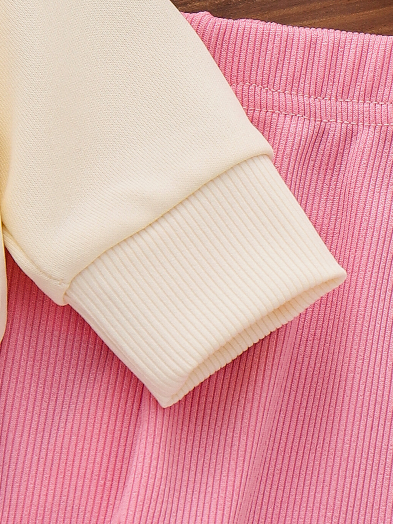 Cute Letter Print Sweatshirt And Pants Set With Bow Hairband For Little Girls