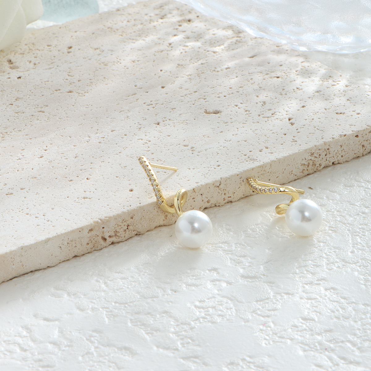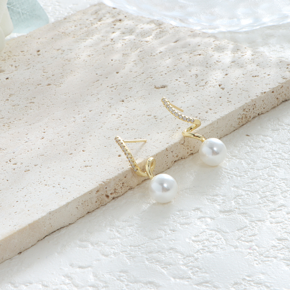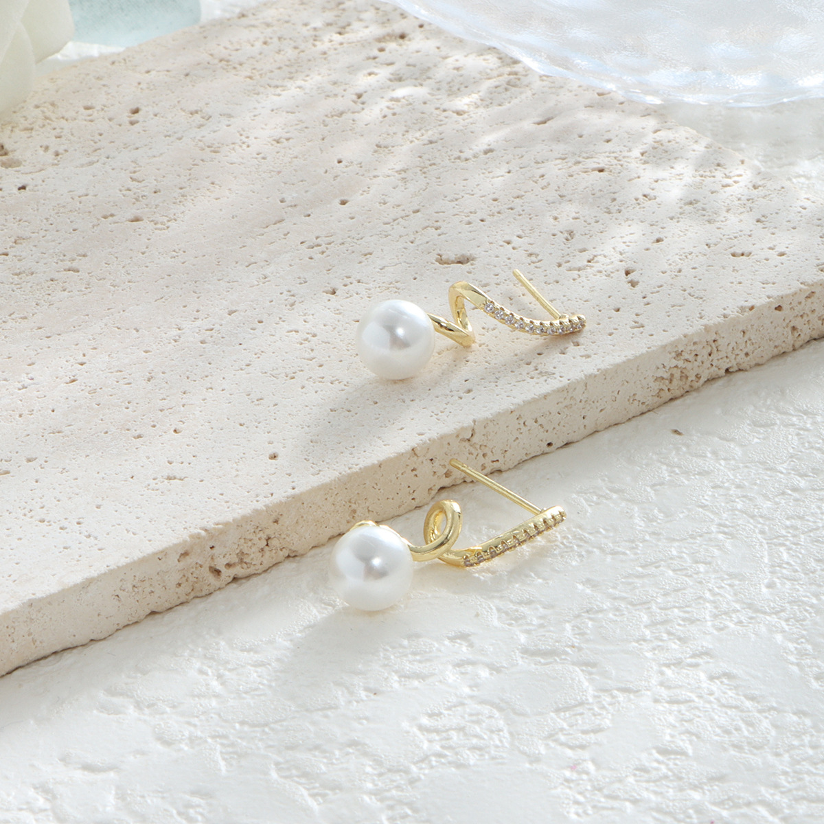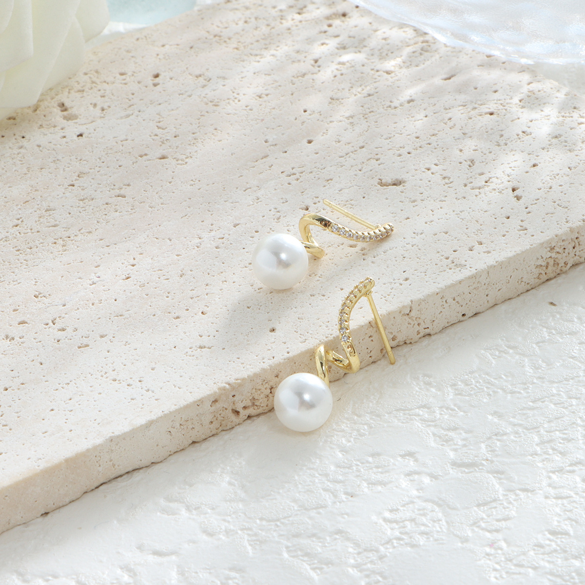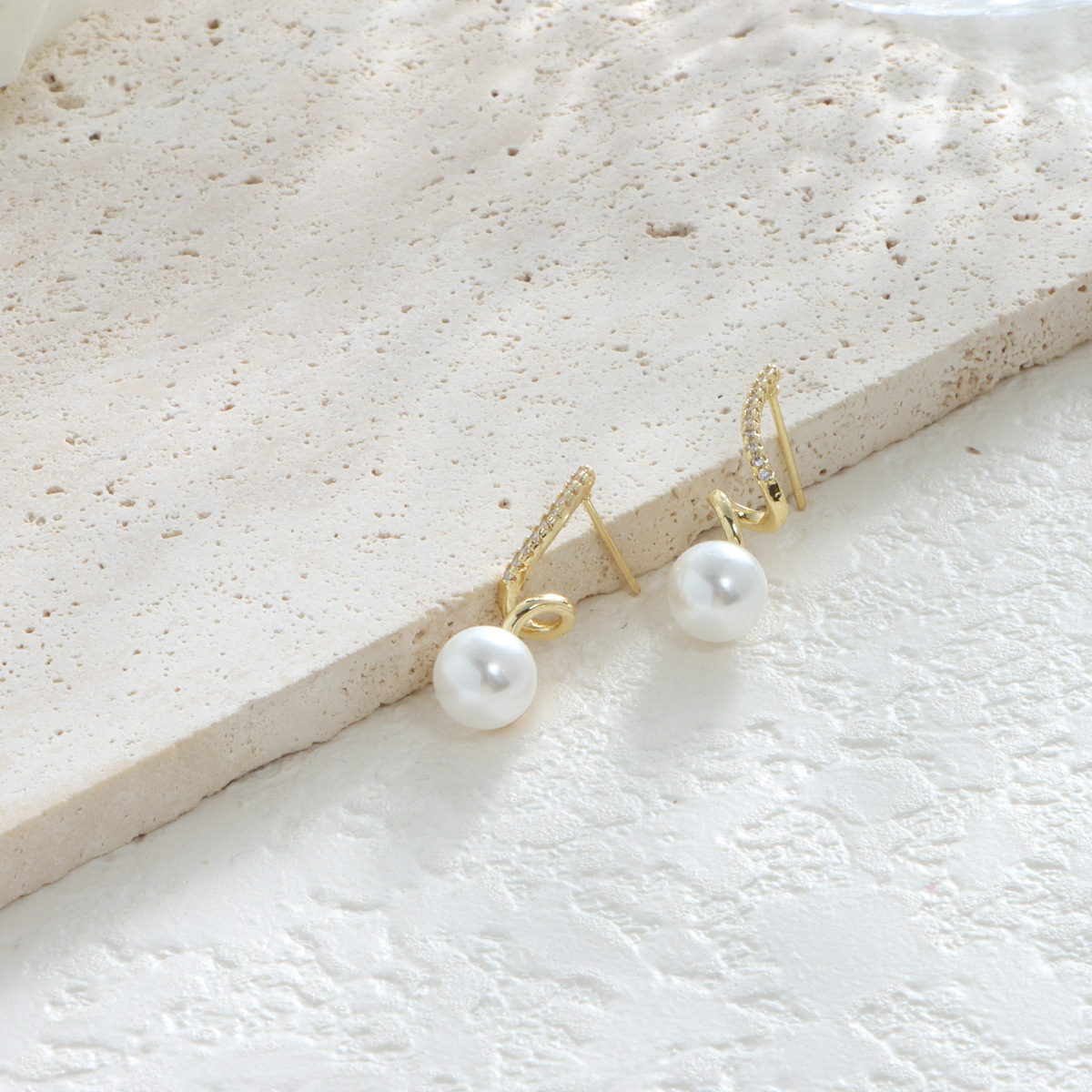 0 Review for Diamond-encrusted Pearl Spiral Line Stud Earrings