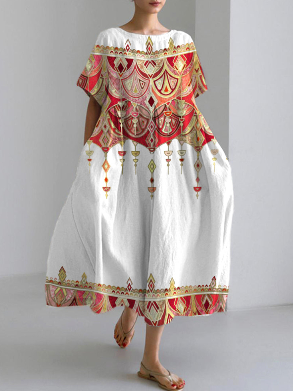 0 Review for Digital-print Short-sleeve Loose Plus-size Dress For Women