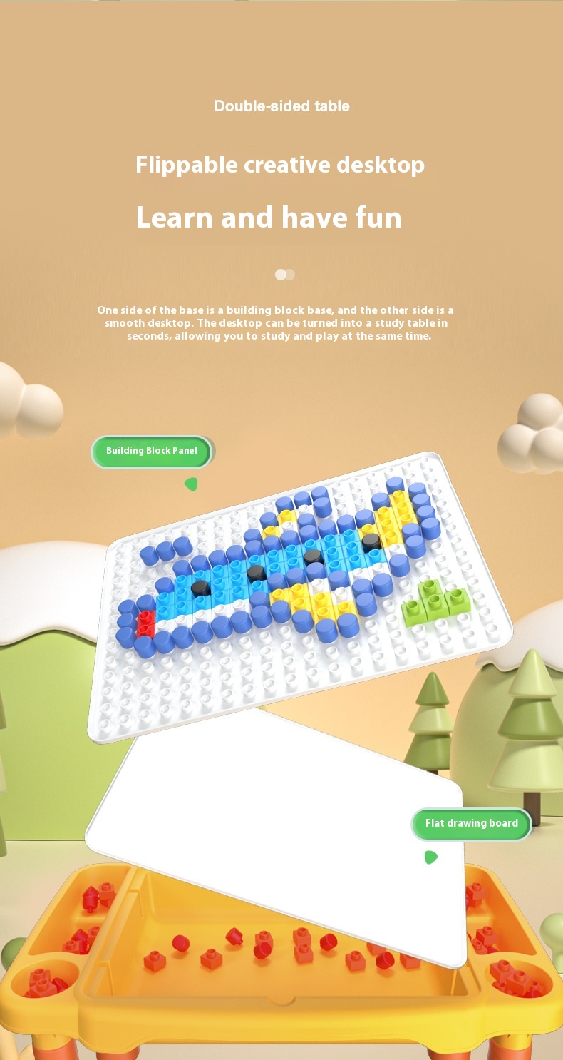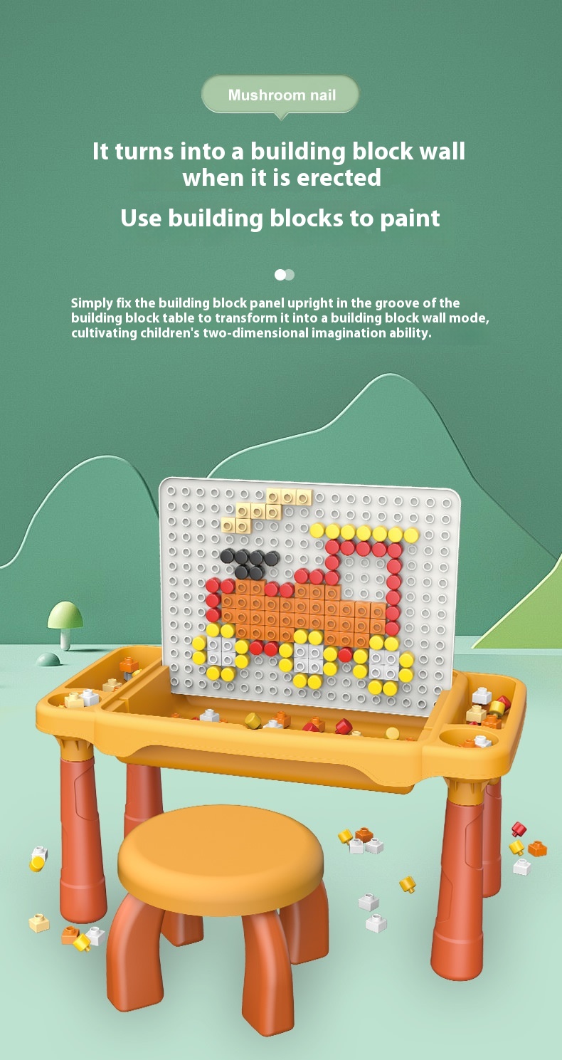 Style 1: large particle building block table and chair 80 slide 120 mushroom nail (random style)