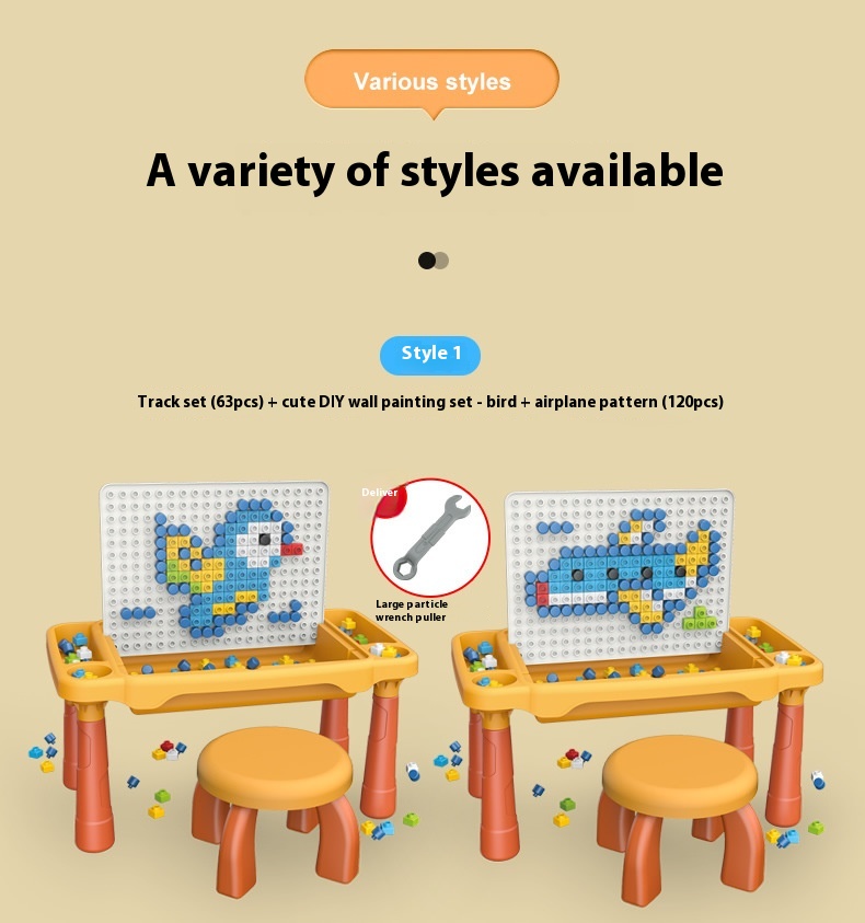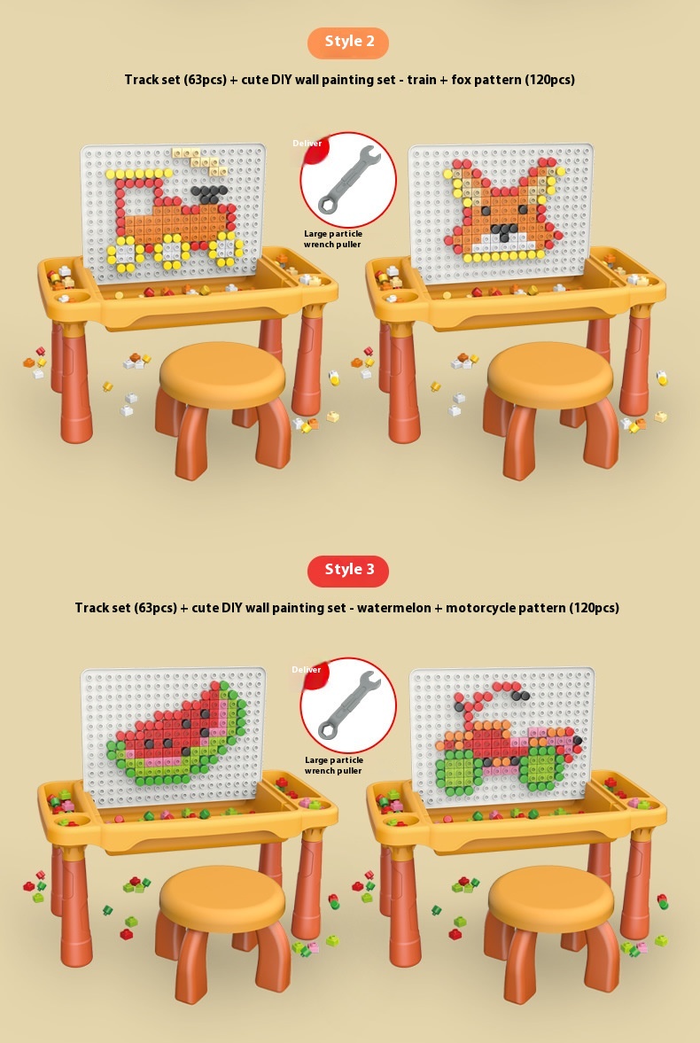 Style 5: large particle building block table and chair 63PCs large particle slider,