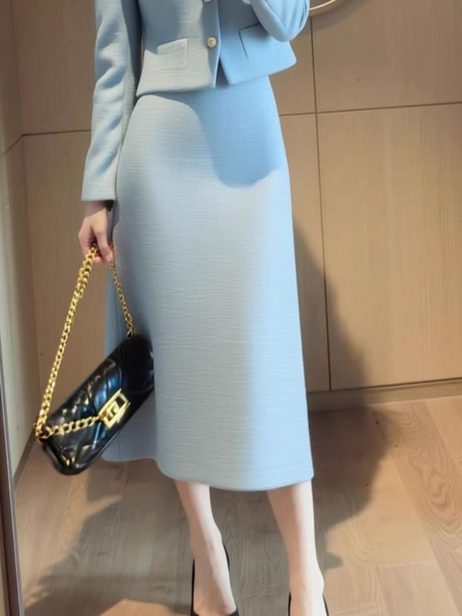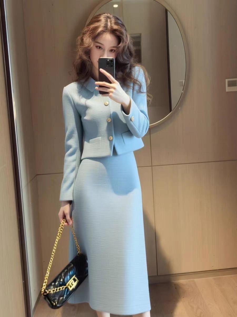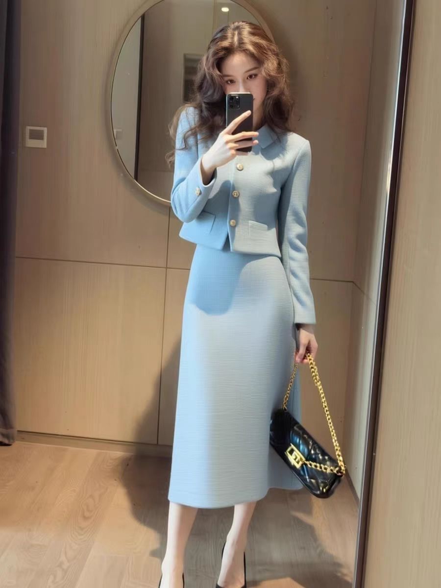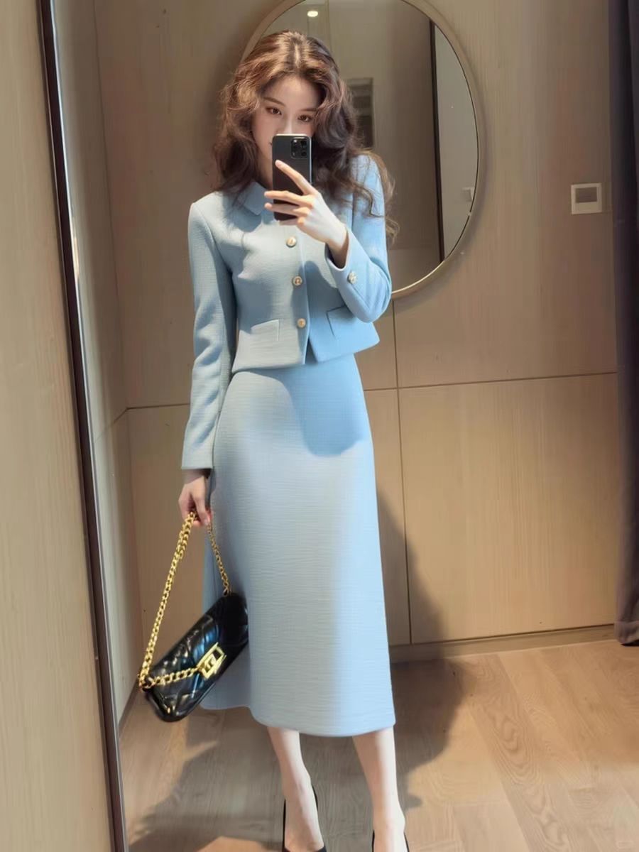 Color: Blue jacket + skirt
