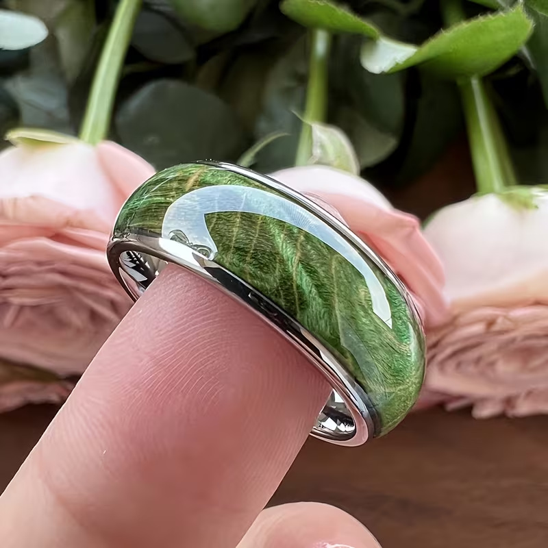 0 Review for Elegant Green Wood-Grain Mens Ring