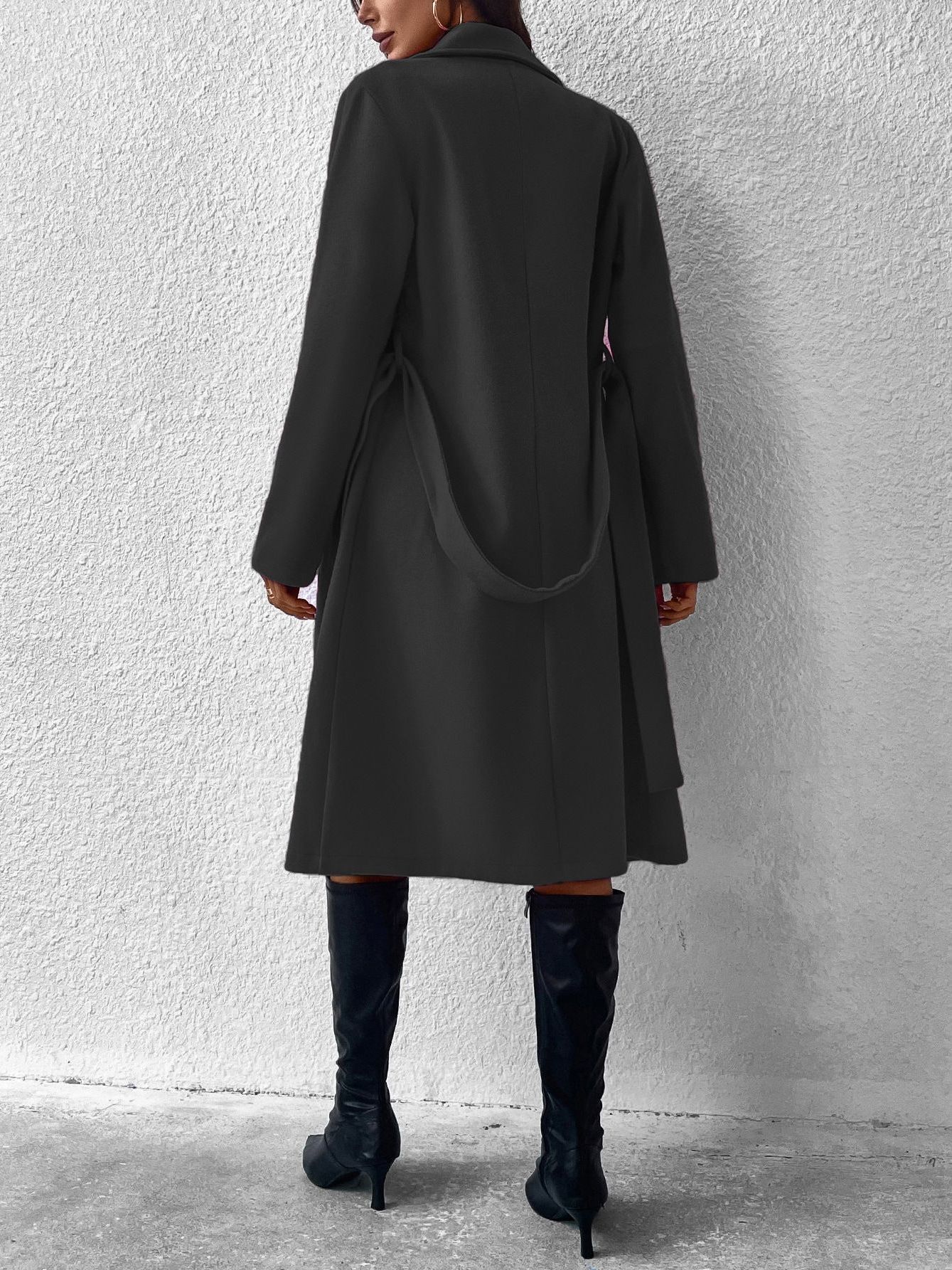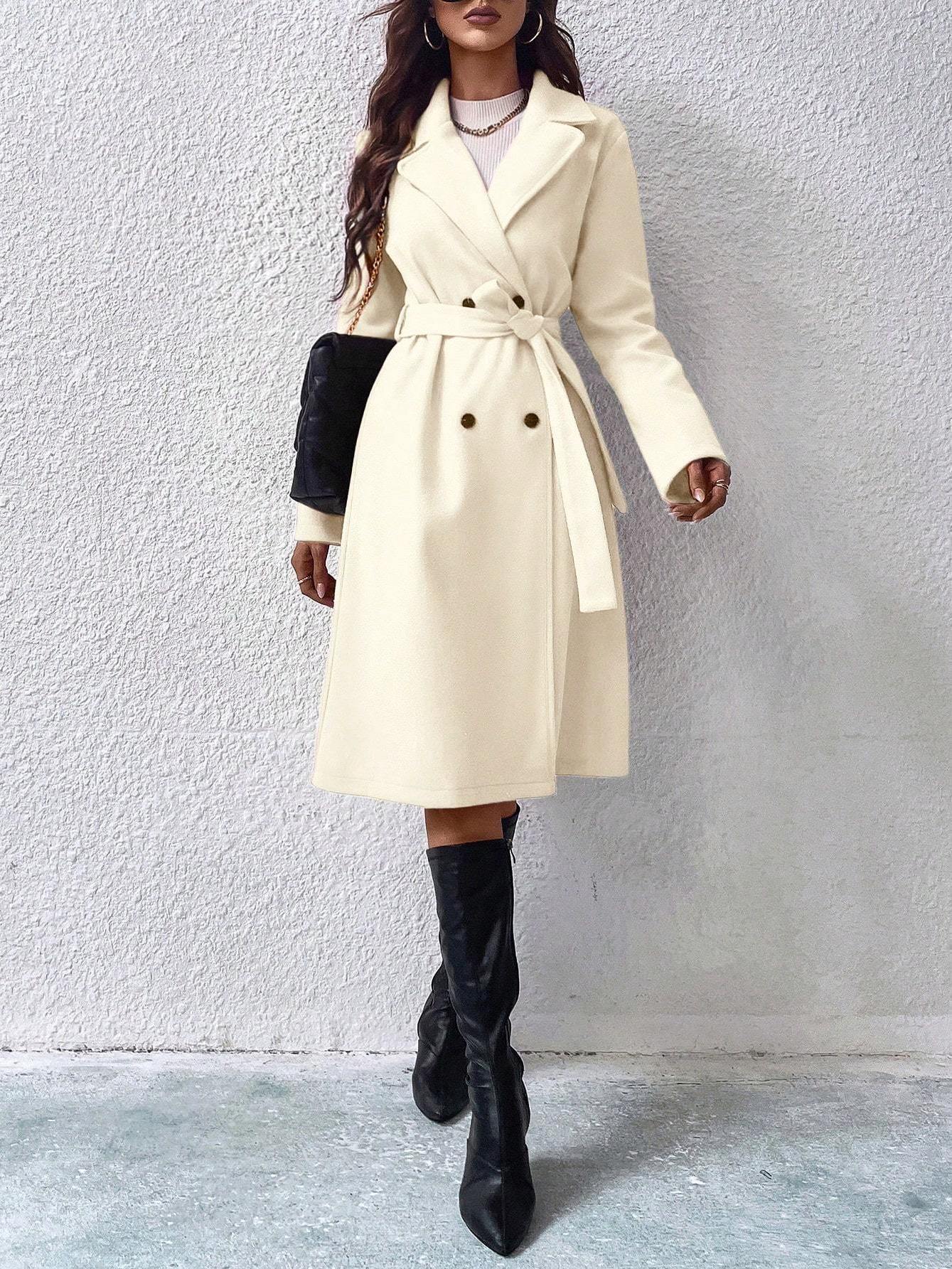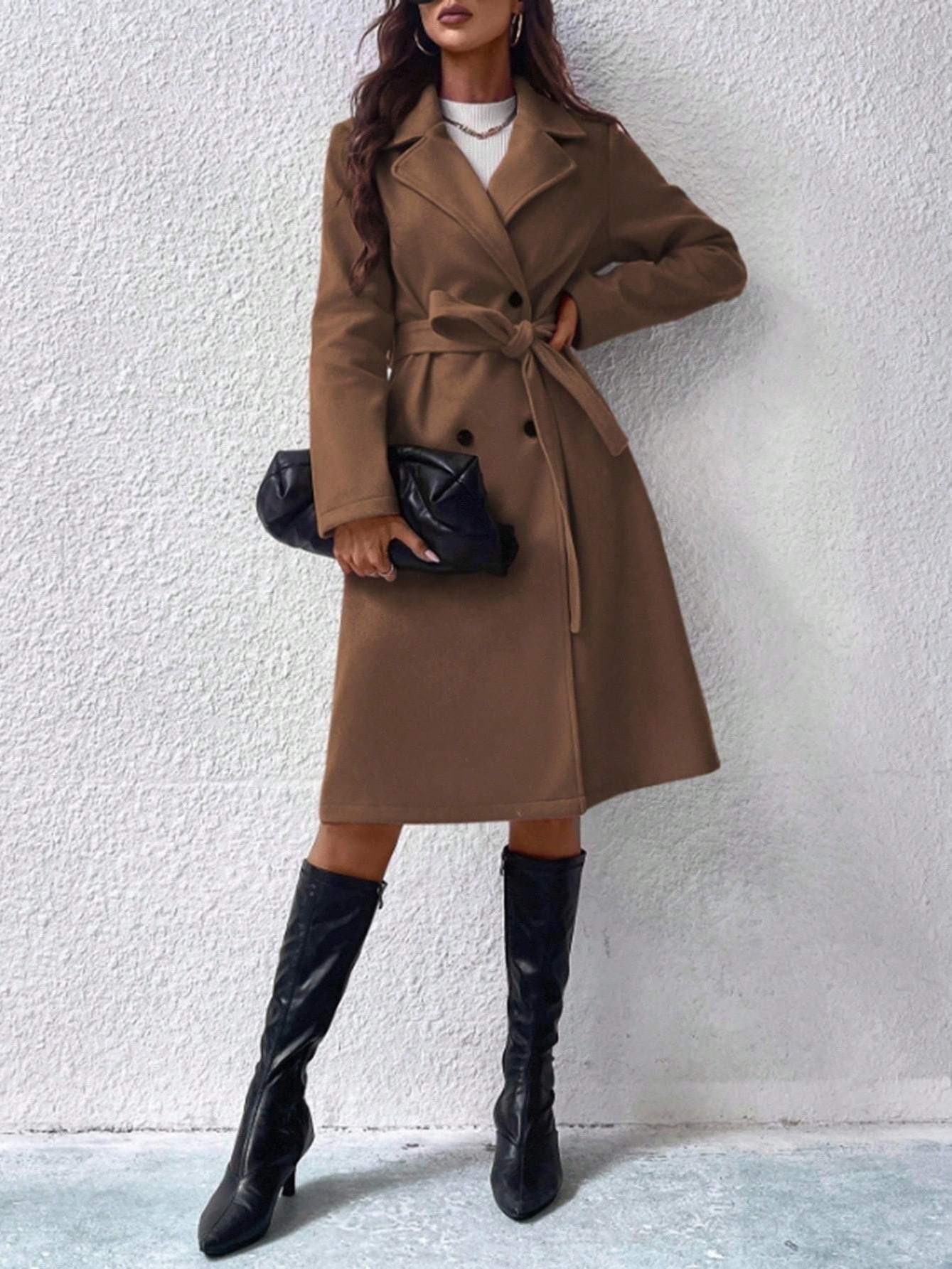 0 Review for Elegant Long-sleeve Lapel Double-breasted Coat With A Belt