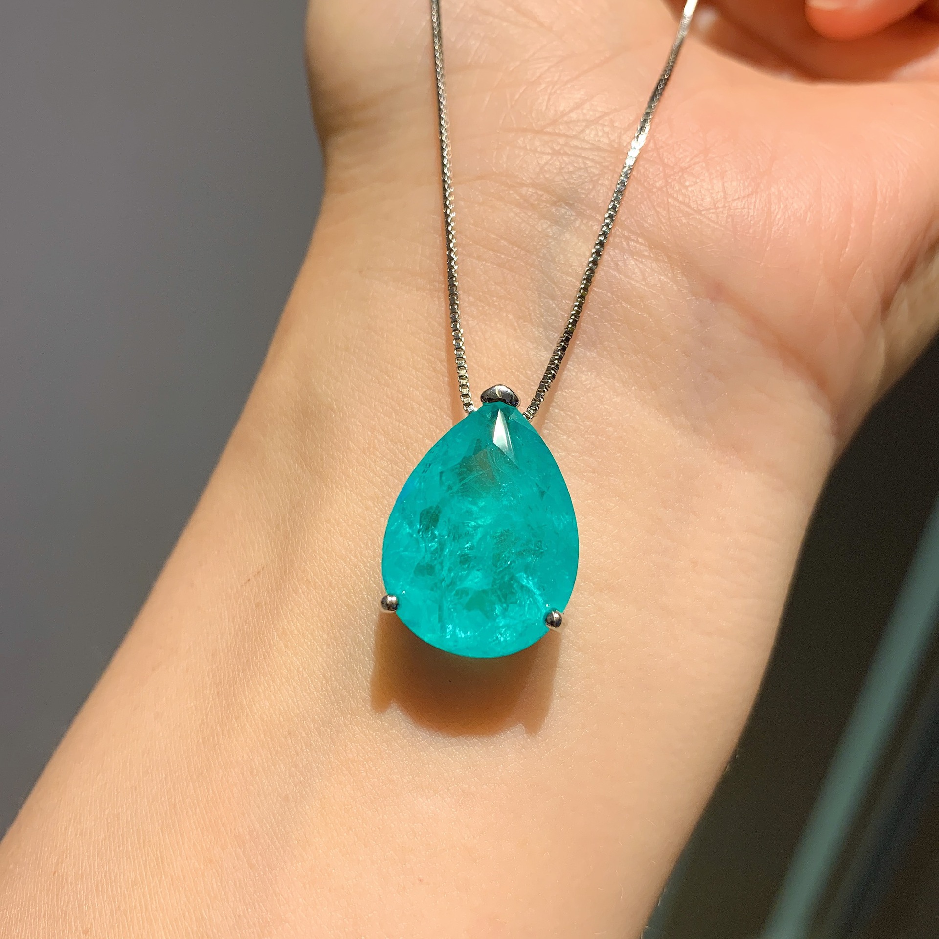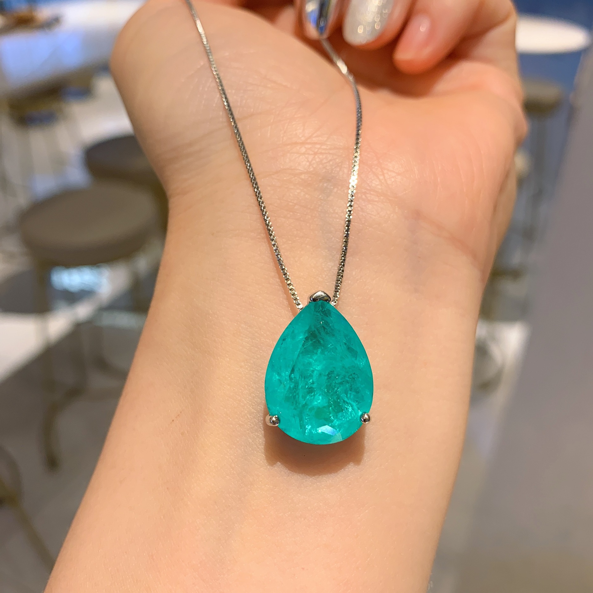 Color: Earrings – Jade pear-shaped 10x14 mm; Pendant – Jade pear-shaped 15x20 mm; Earrings – Paraíba tourmaline pear-shaped 10x14 mm; Pendant – Paraíba tourmaline pear-shaped 15x20 mm