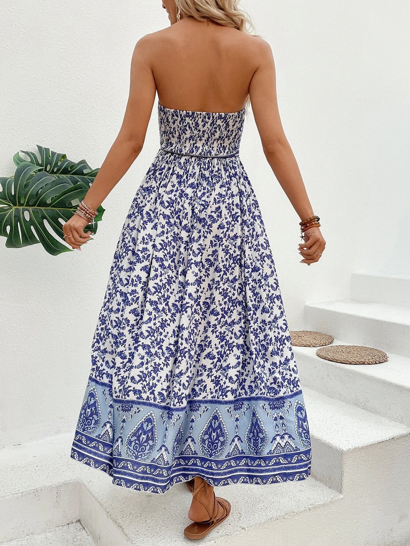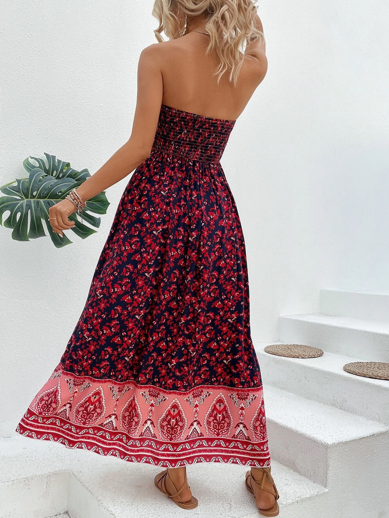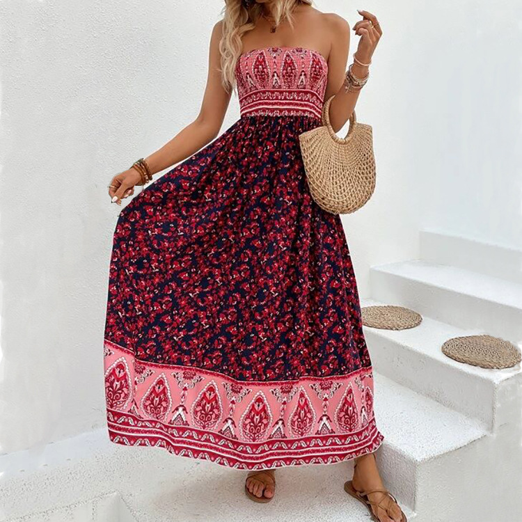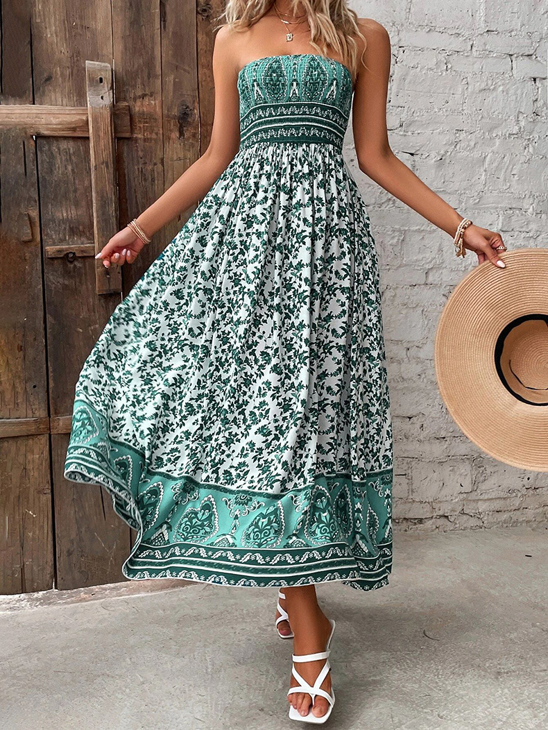 0 Review for European And American-style Printed Backless Tube Dress