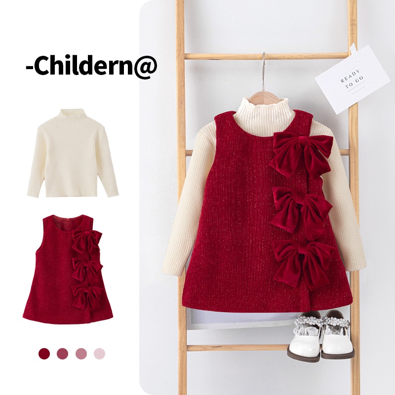 0 Review for Fashionable Bow-Knot Vest Dress For Baby Girls