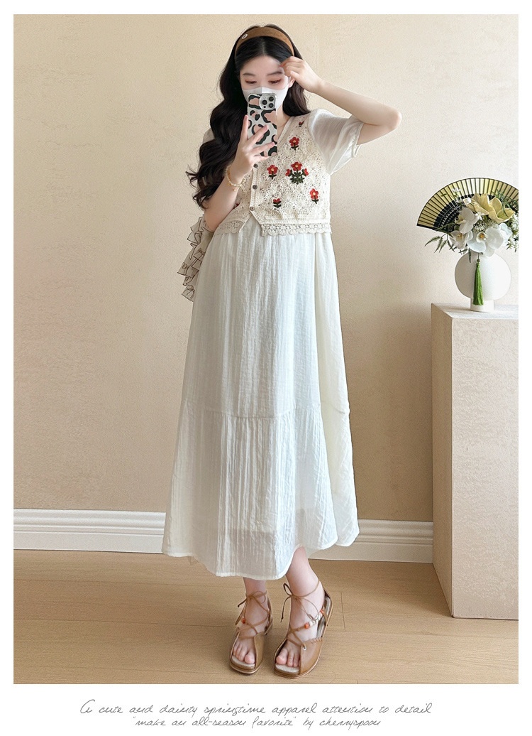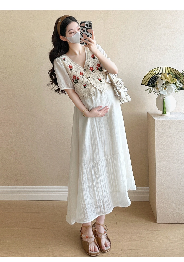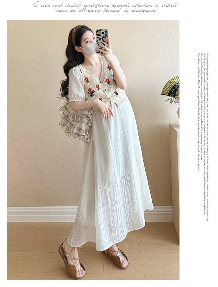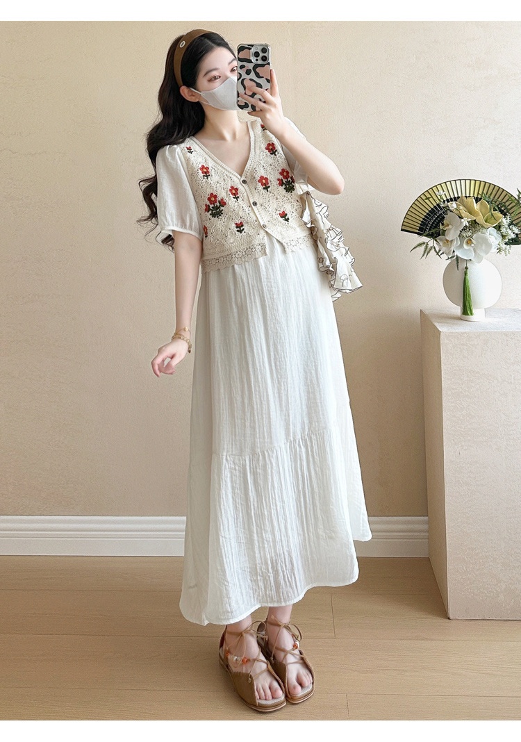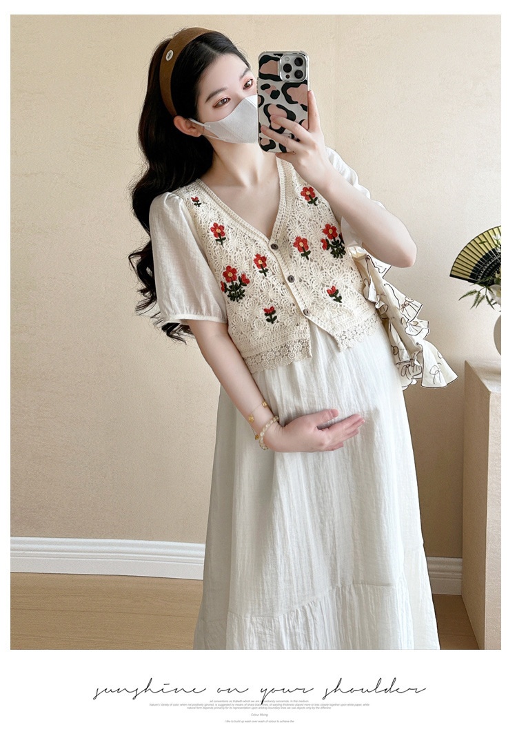Fashionable Crochet Vest-Look Fake Two-Piece Maternity Dress