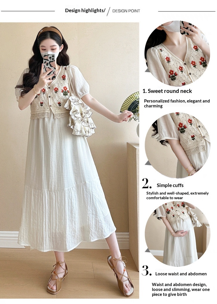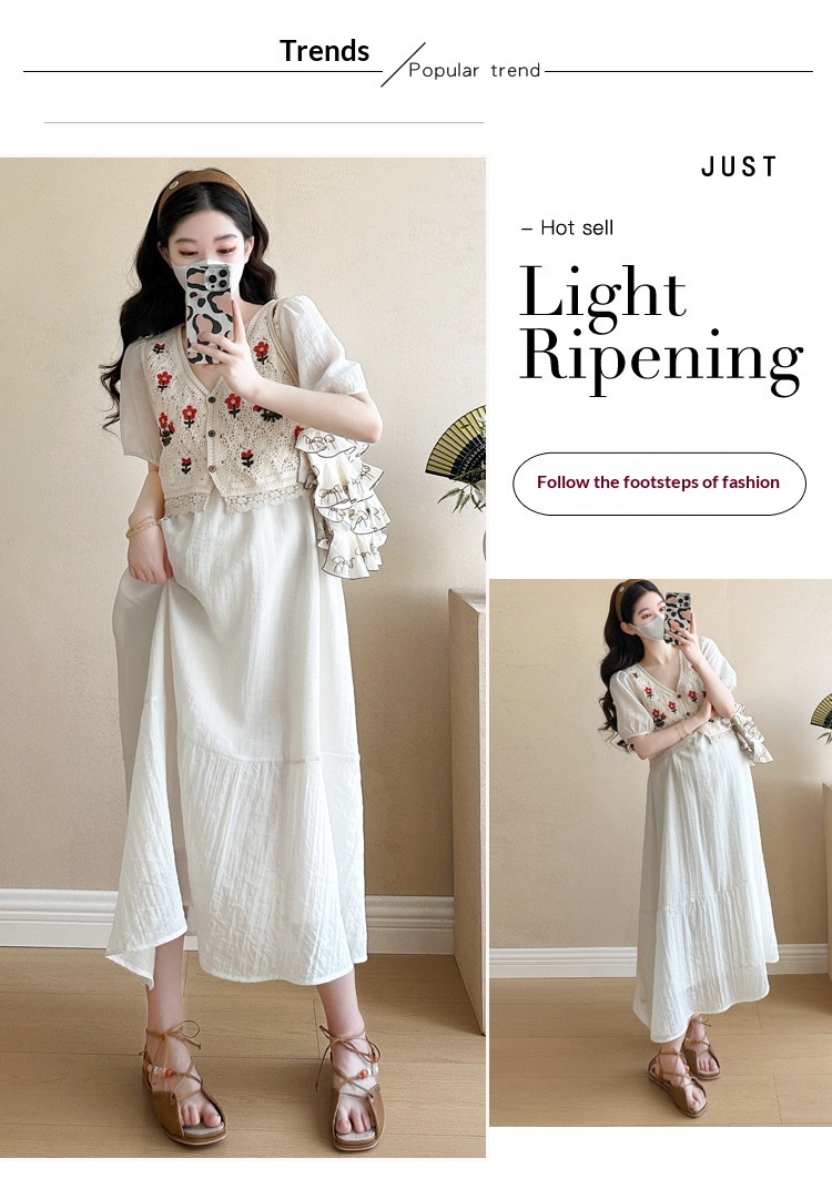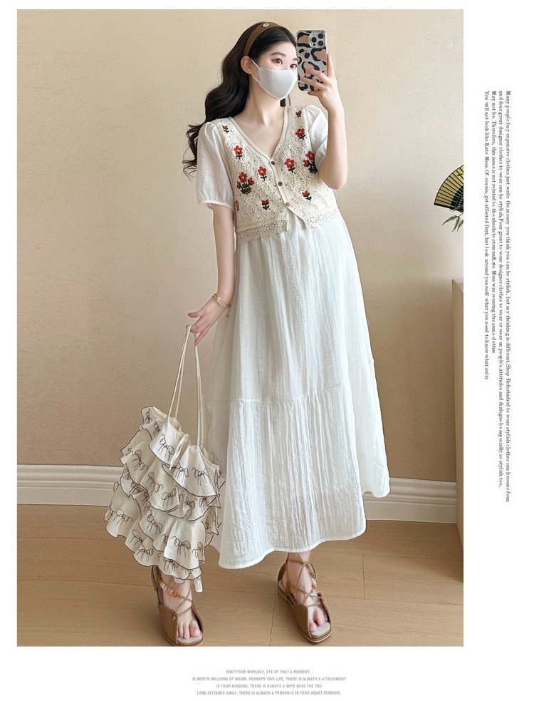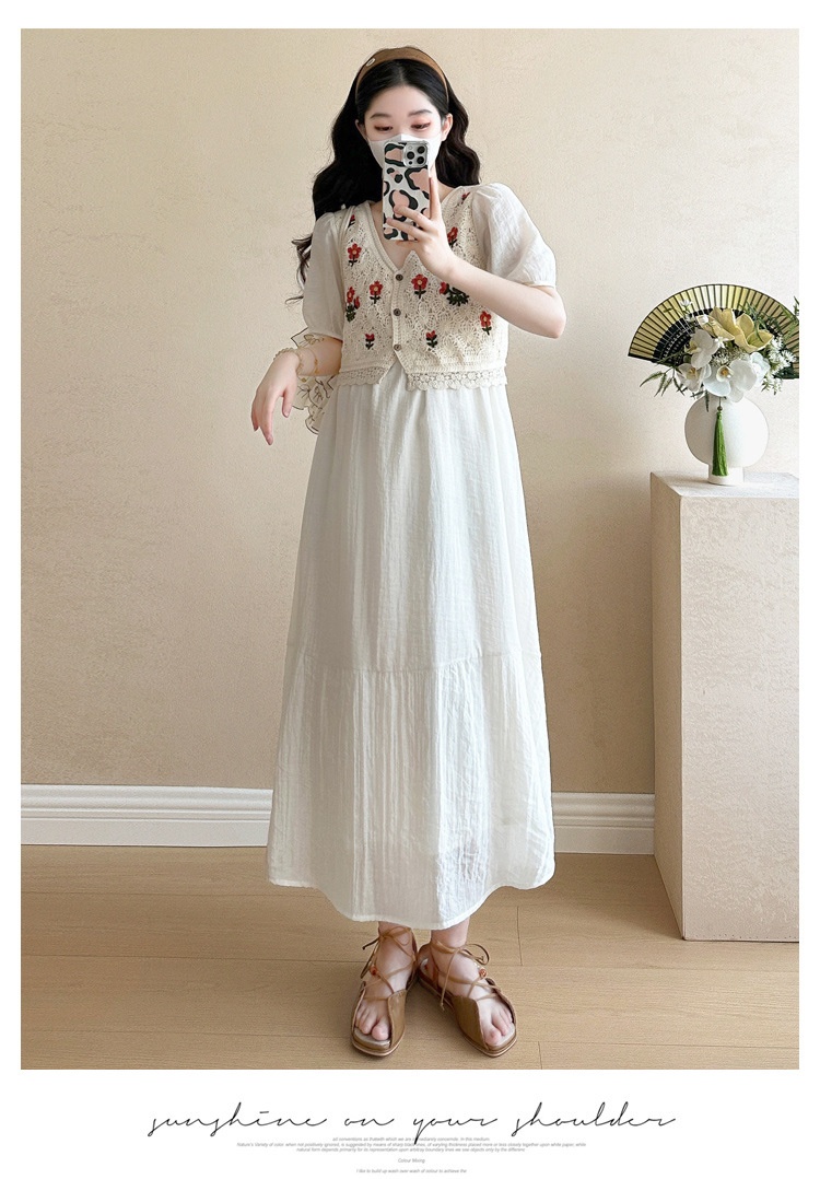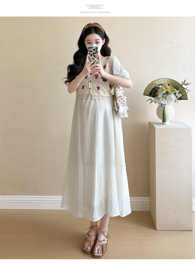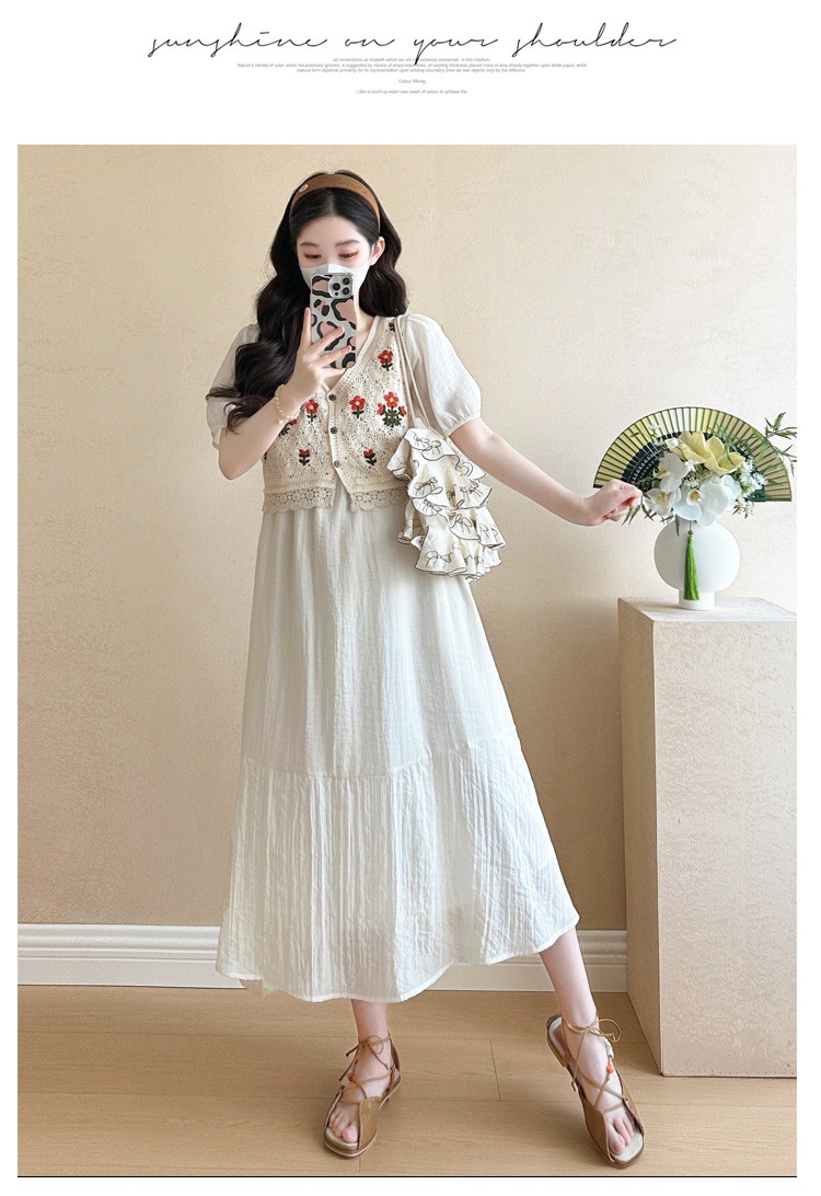 Fashionable Crochet Vest-Look Fake Two-Piece Maternity Dress