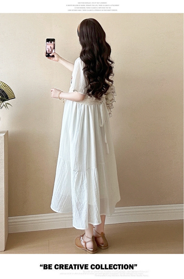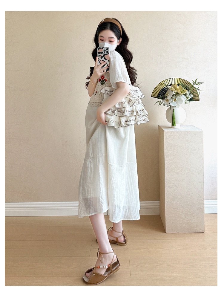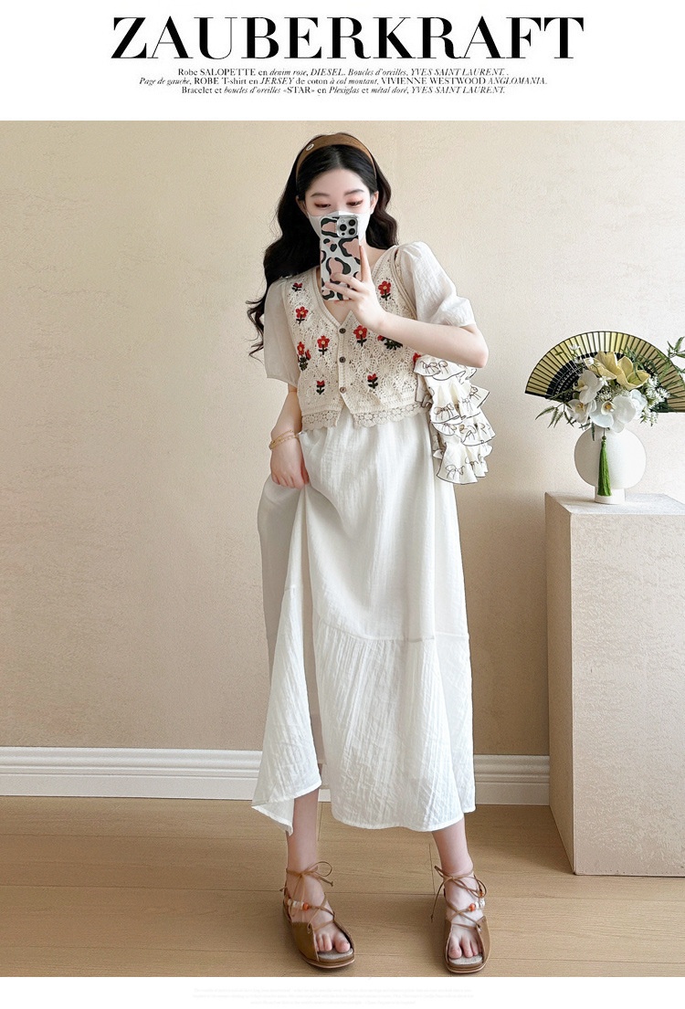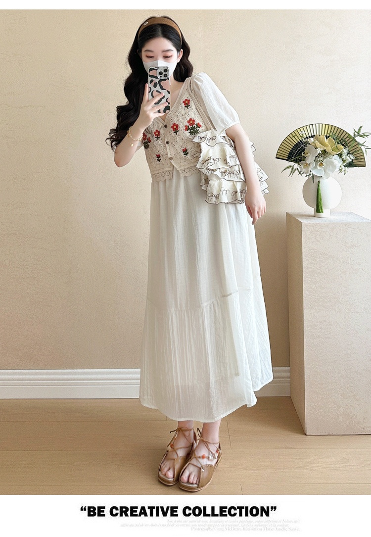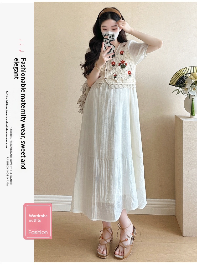 Fashionable Crochet Vest-Look Fake Two-Piece Maternity Dress