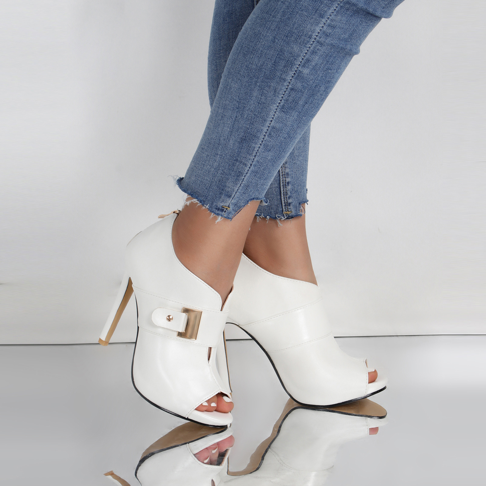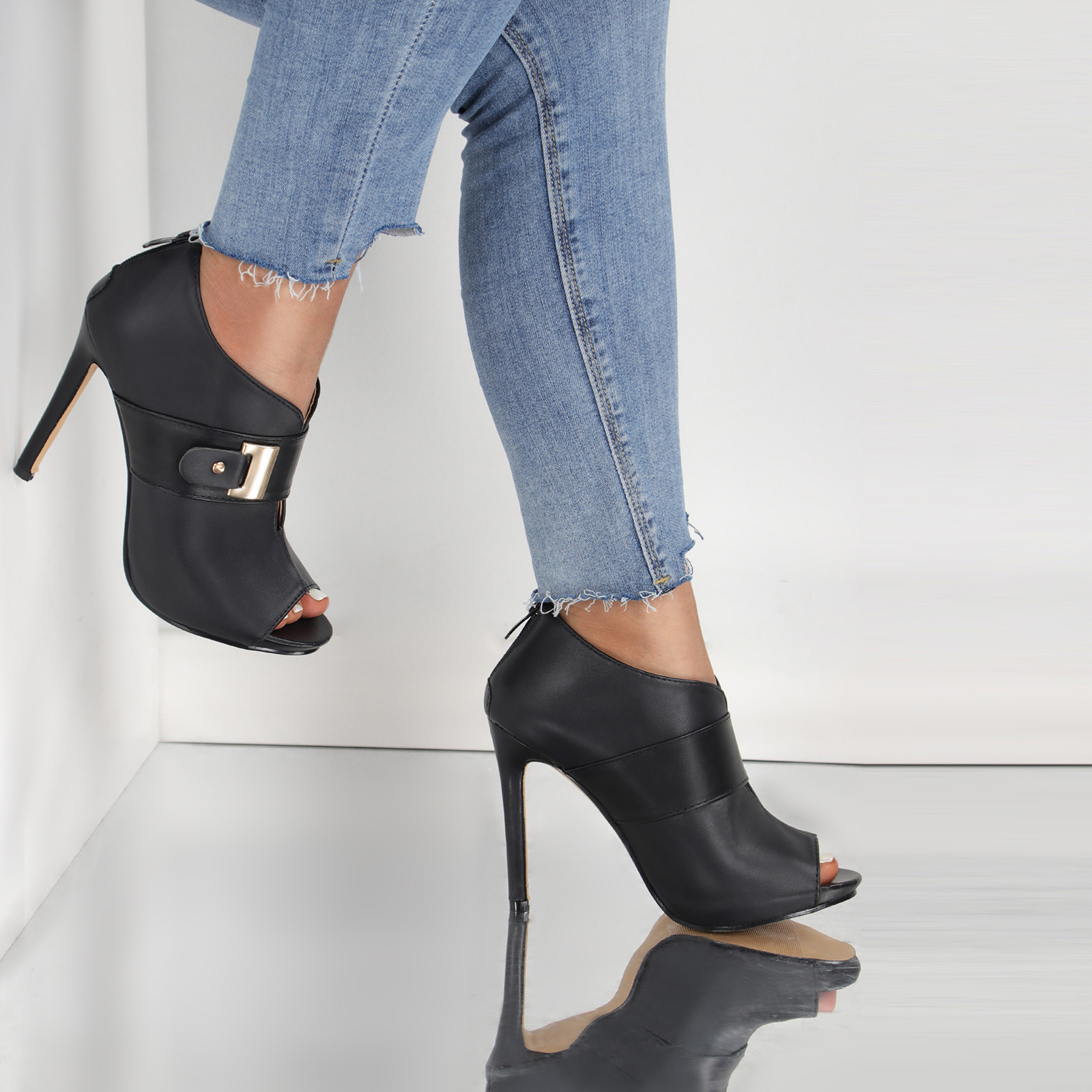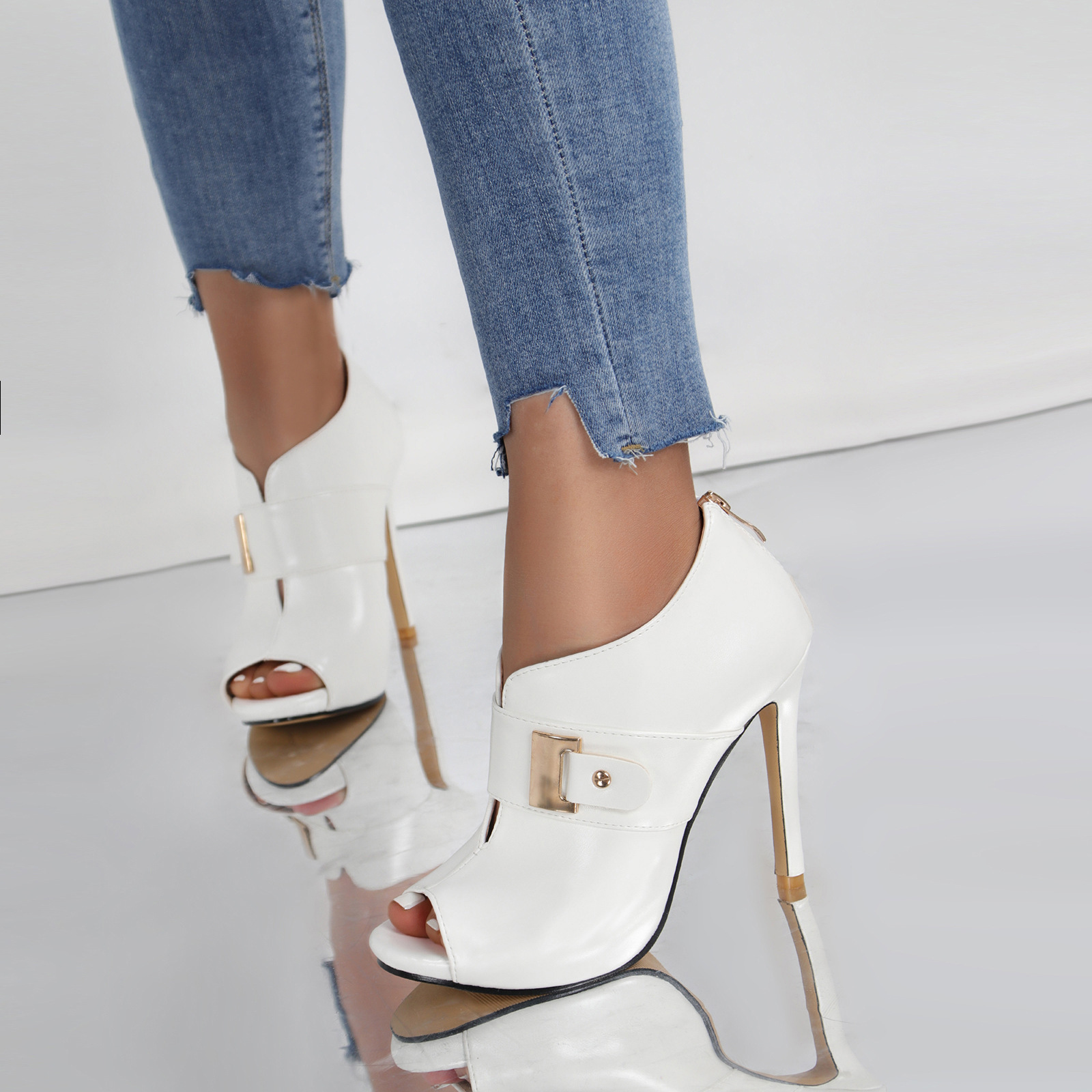 0 Review for Fish-mouth Peep-toe Metal-buckle Back-zip Stiletto Fashion Sandals
