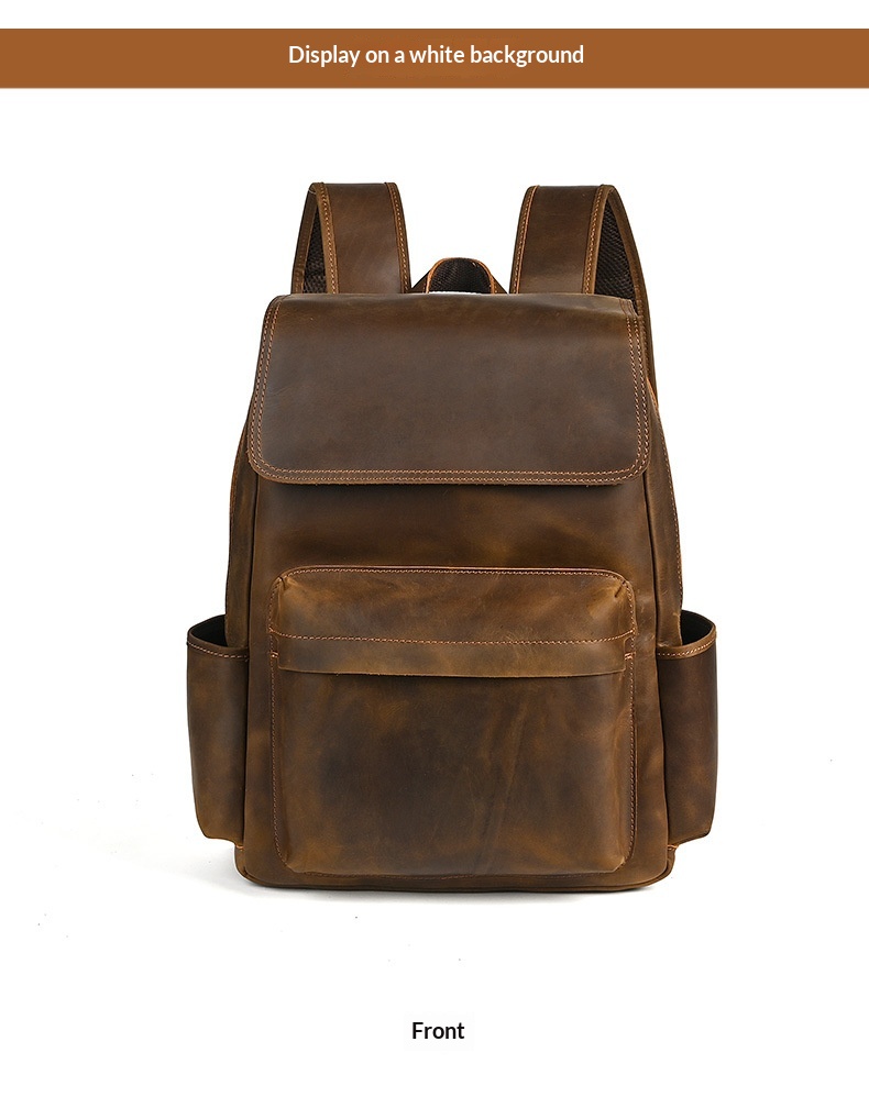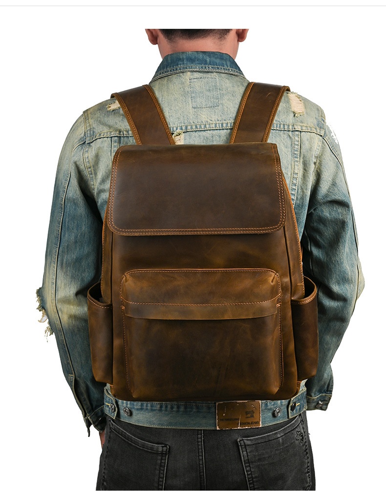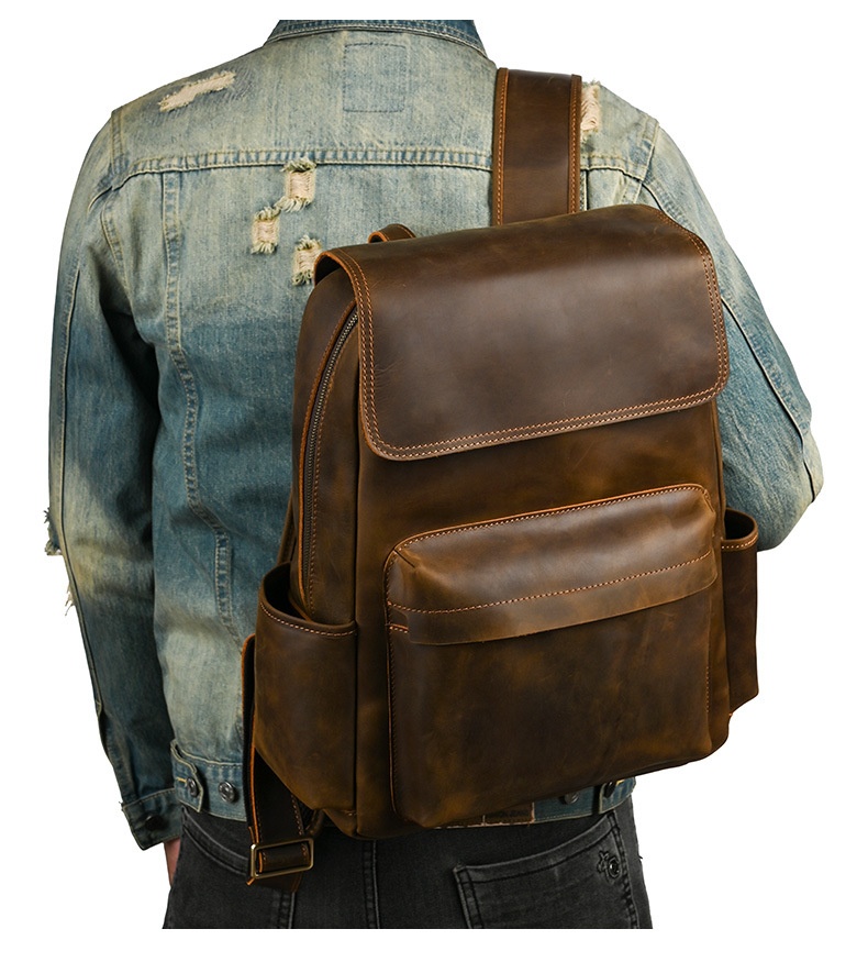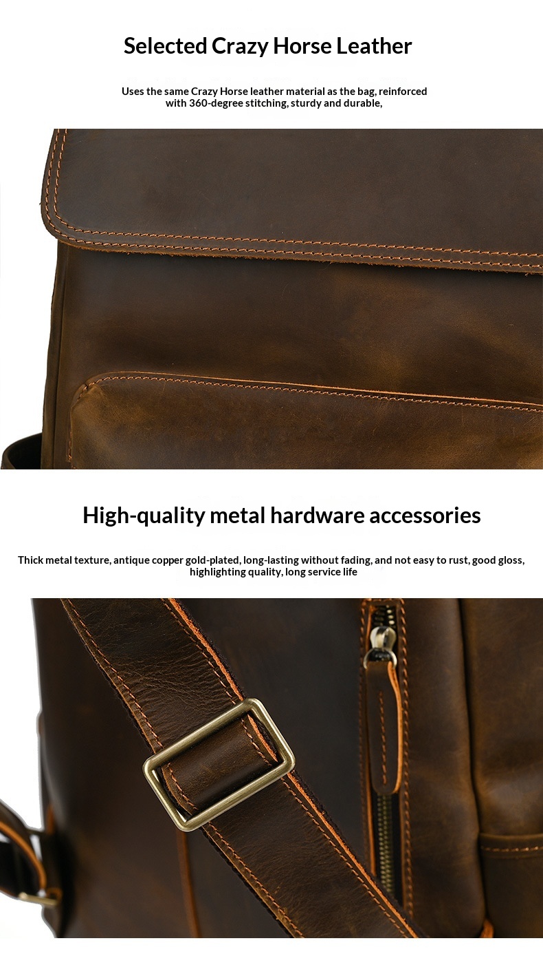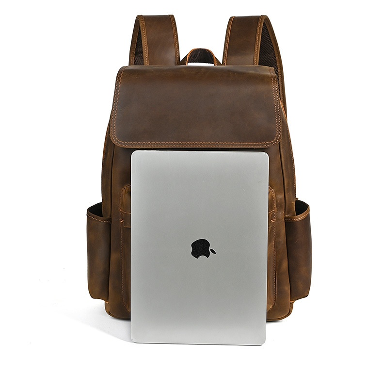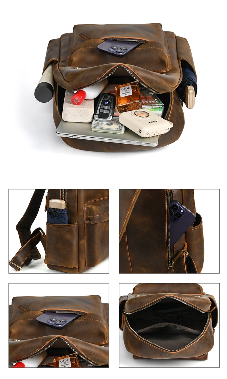Flip-Top Design Multi-Pocket High-Capacity Commuter Leather Backpack