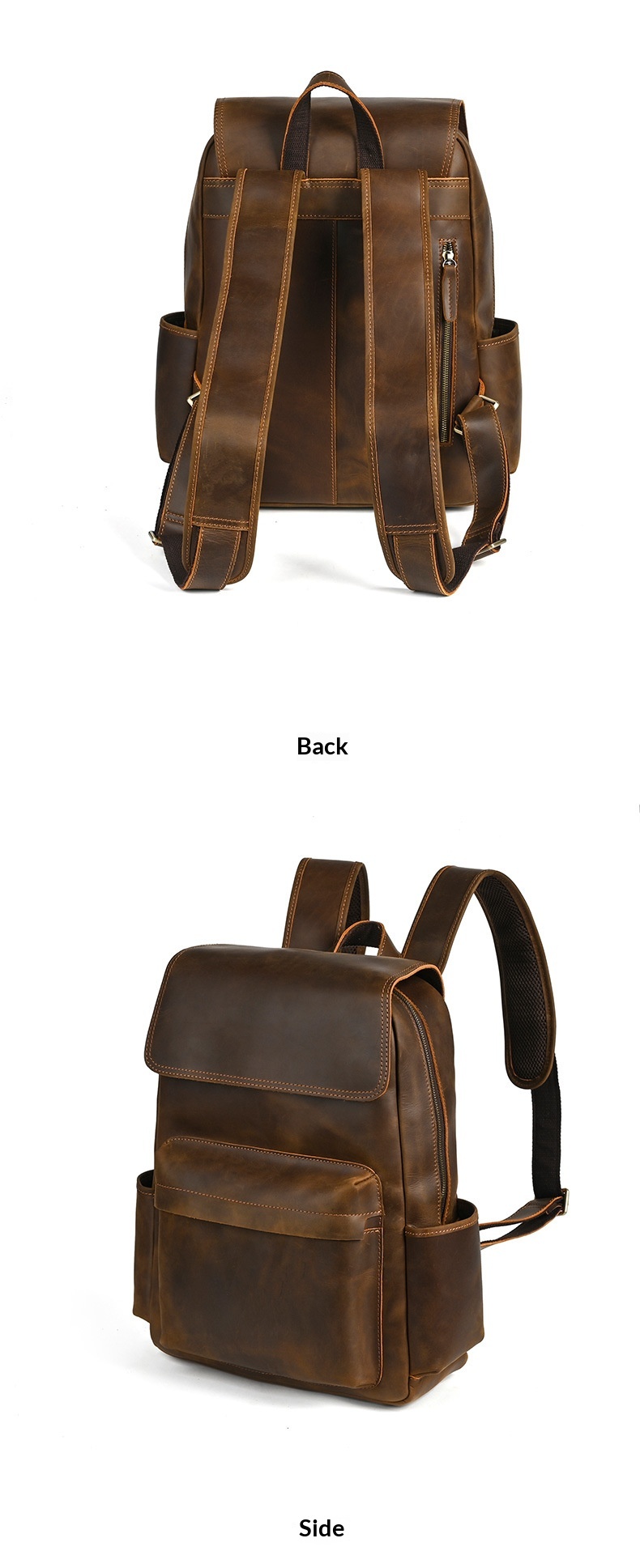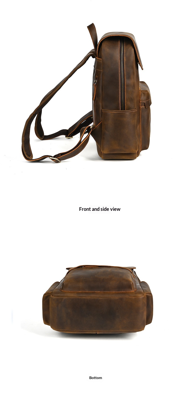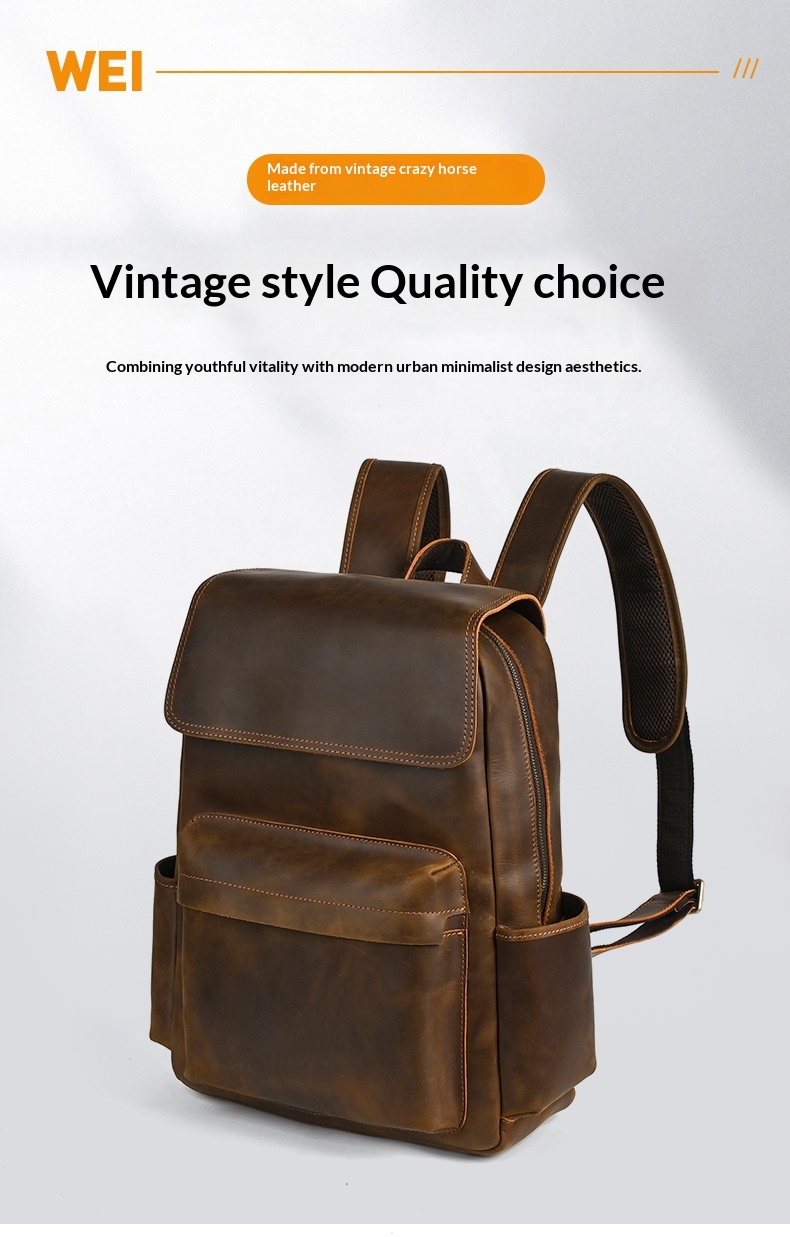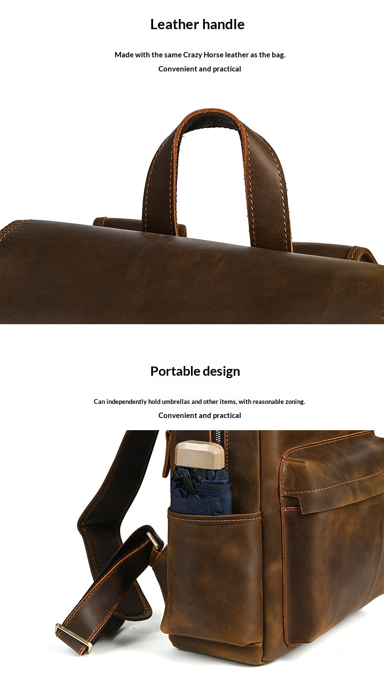 Flip-Top Design Multi-Pocket High-Capacity Commuter Leather Backpack