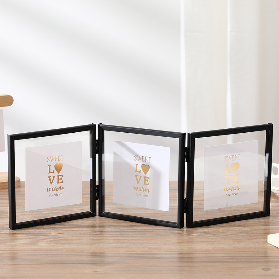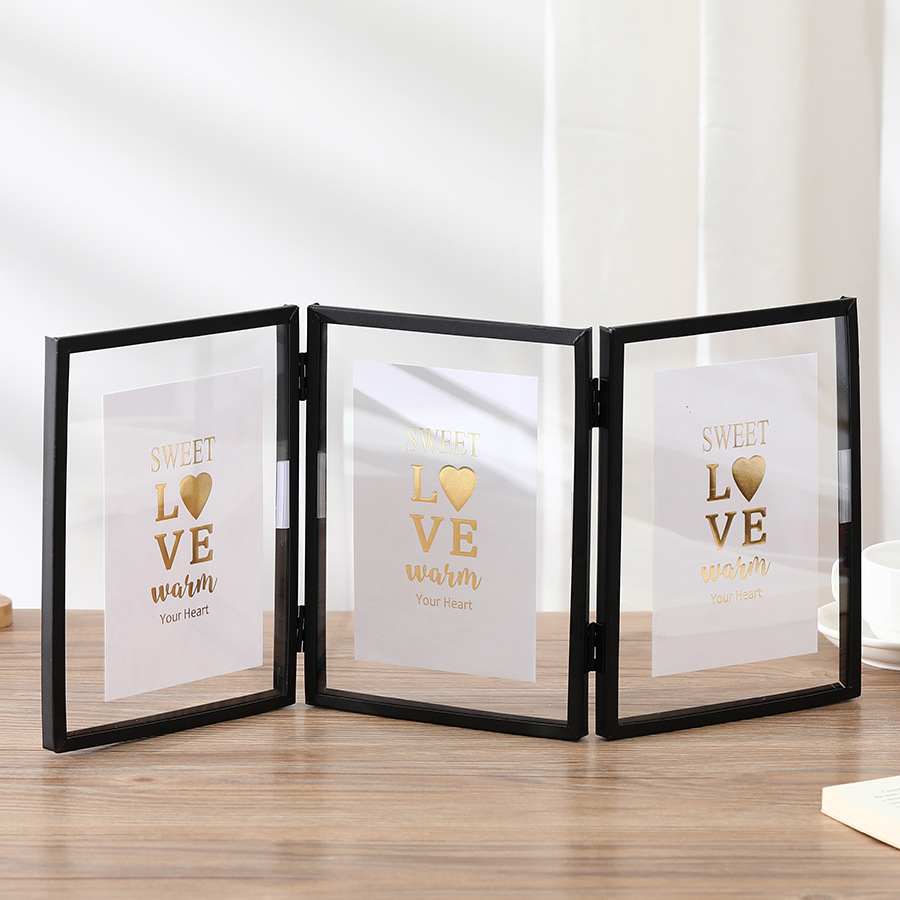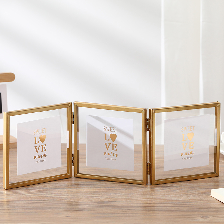 0 Review for Foldable Metal Triple Photo Frame Creative Gold And Black Photo