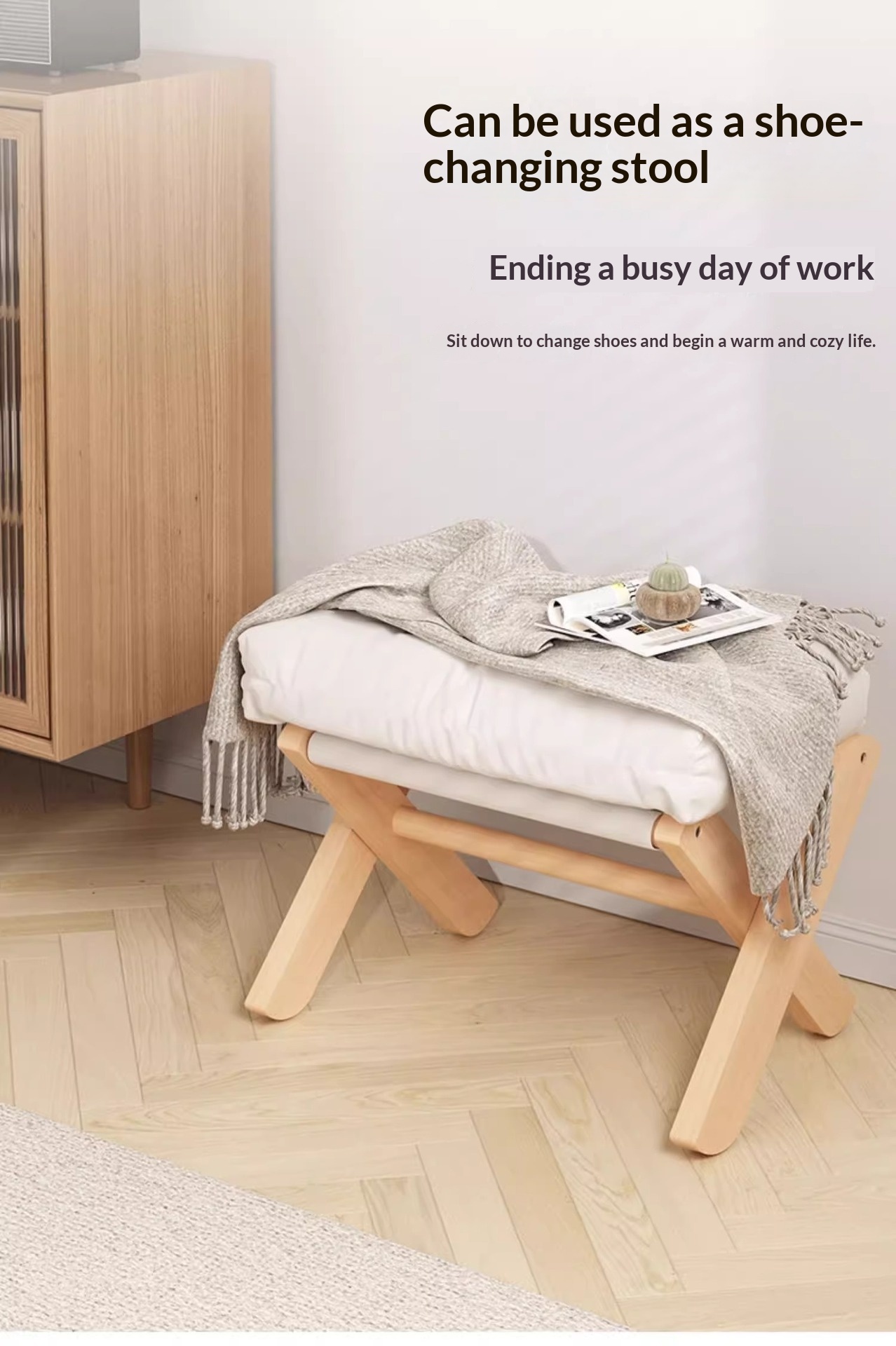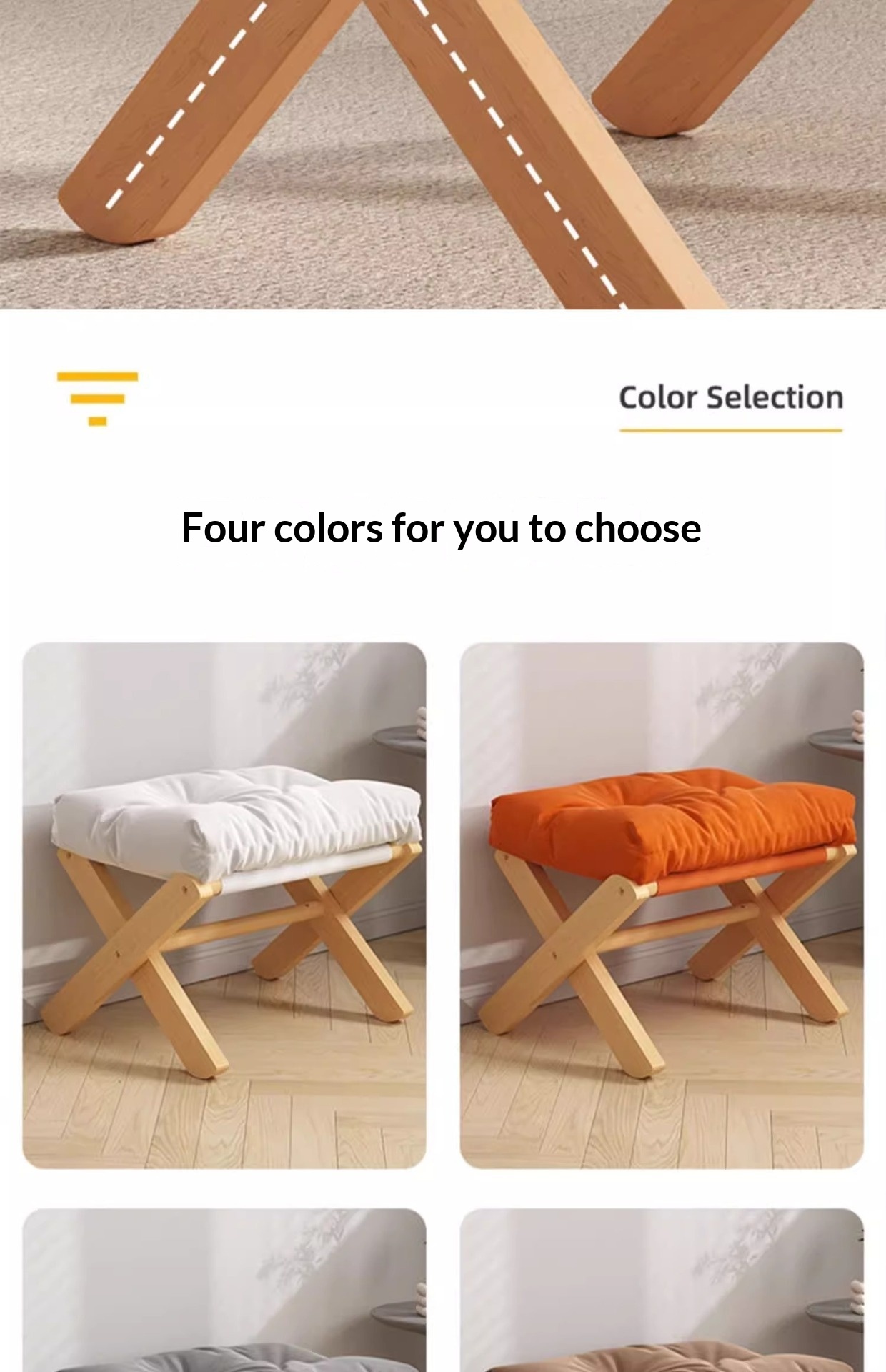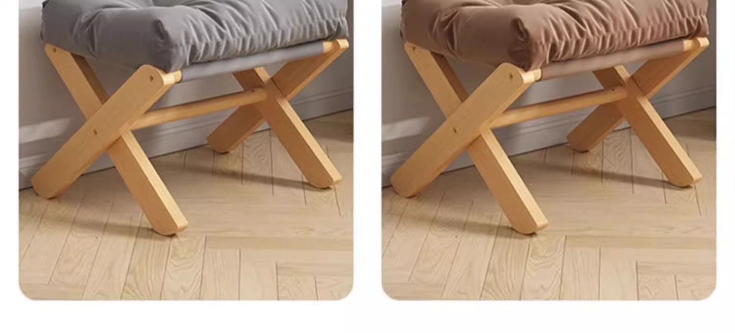 Color: Solid wood stool legs—light gray linen fabric, solid wood stool legs—coffee brown linen fabric, solid wood stool legs—snowflake white linen fabric, solid wood stool legs—vibrant orange linen fabric